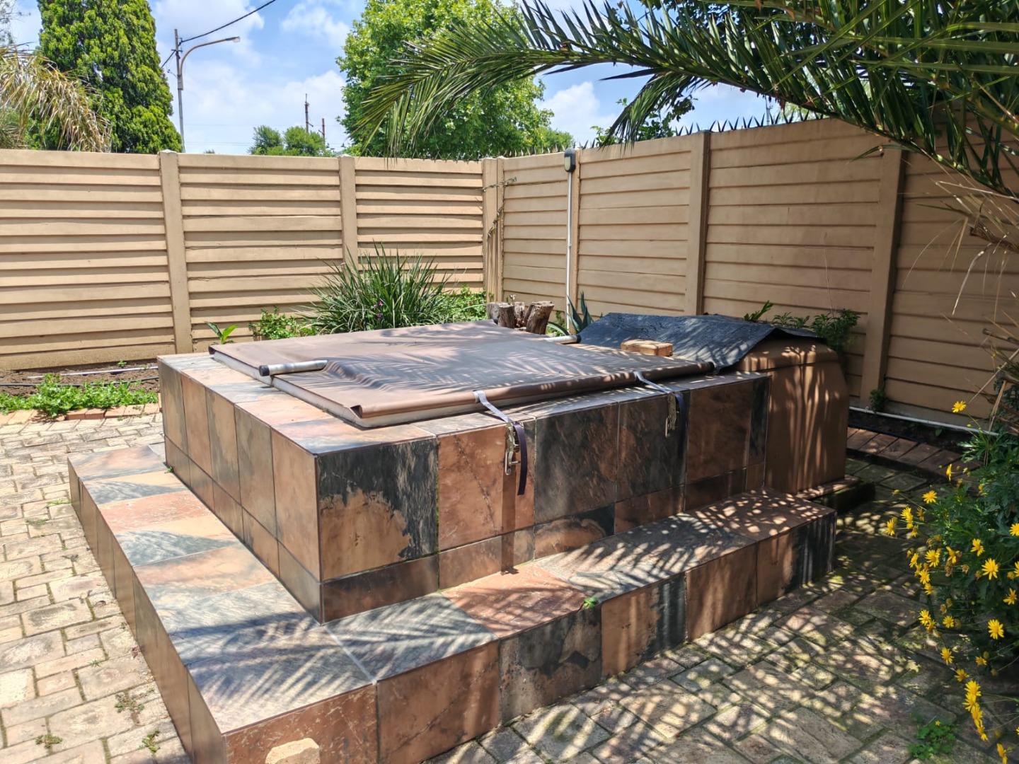 Welcome to your new relaxed haven in Brenthurst, Brakpan! This lovely home offers a comfortable and inviting atmosphere, perfect for families looking for a bit of peace and quiet. You'll immediately notice the charming curb appeal, featuring attractive wood-look garage doors with decorative inserts and a rustic log-style column that adds a unique touch. Step inside to discover a well-laid-out home with three cosy bedrooms and two bathrooms, including a convenient ensuite for added privacy. There's a functional kitchen, a dedicated dining room for family meals, a comfortable lounge, and an extra family/TV room, giving everyone space to unwind and enjoy. The layout ensures a smooth flow for everyday living. The outdoor area is where this property truly shines! Imagine spending sunny days by your private swimming pool, or relaxing in the covered hot tub/jacuzzi – pure bliss! The paved patio areas are ideal for entertaining friends and family, and with a lovely garden, it’s a pet-friendly space for your furry companions to roam. Plus, there's a dedicated braai room, perfect for those classic South African cookouts. For your peace of mind, the home is equipped with an alarm system and burglar bars, ensuring a secure environment. Staying connected is a breeze with fibre internet readily available. Brenthurst is a welcoming suburb in Brakpan, known for its established community and convenient access to local amenities, making it a great place to call home. Key Features: * 3 Bedrooms, 2 Bathrooms (1 Ensuite) * Private Swimming Pool * Covered Hot Tub/Jacuzzi * Braai Room * Pet-Friendly Garden * Alarm System & Burglar Bars * Fibre Internet Ready * Paved Outdoor Areas * Rustic Wood-Look Garage Doors * Family/TV Room