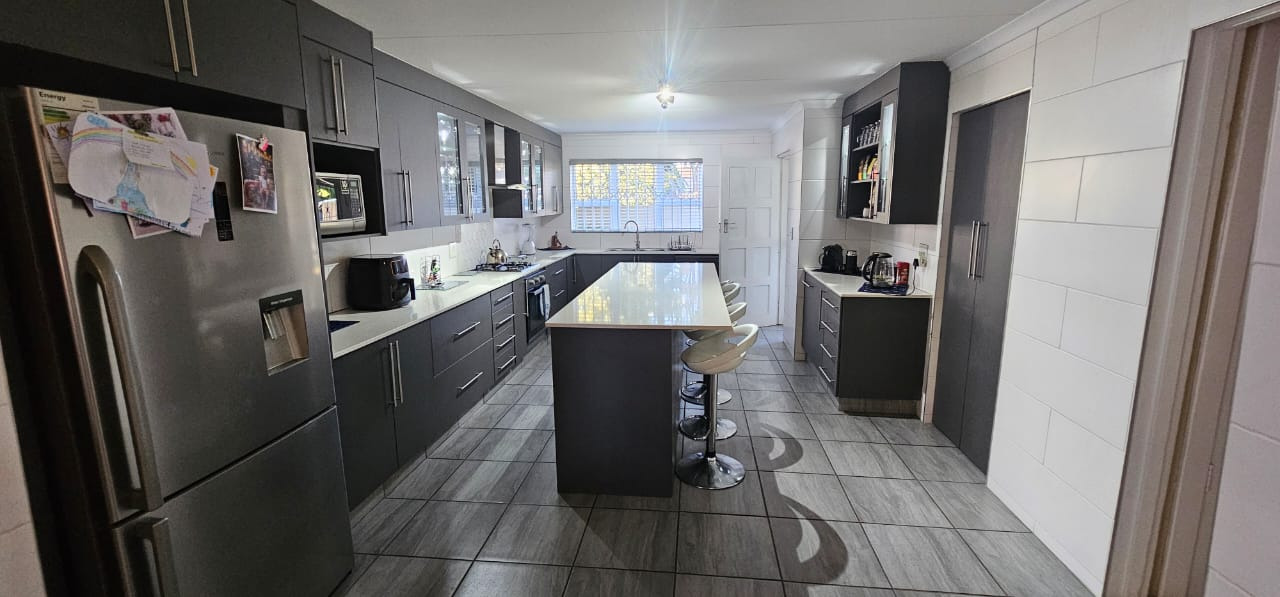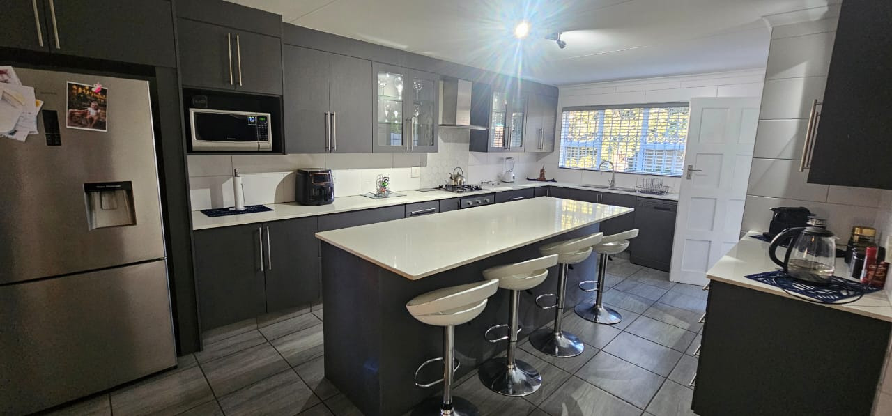 Modern kitchen with a gas stove more then enough built in cupboards.