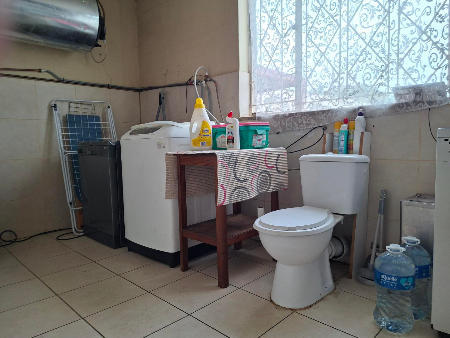 Outdoor amenities include a well-maintained garden and paved areas, perfect for leisure. Parking is generous with a single garage and four additional spaces. Practical features such as a laundry area, outside toilets, and wheelchair accessibility further enhance convenience. The property benefits from 24-hour security, an access gate, and fiber connectivity, ensuring a secure and connected living environment in this tranquil Brakpan suburb.