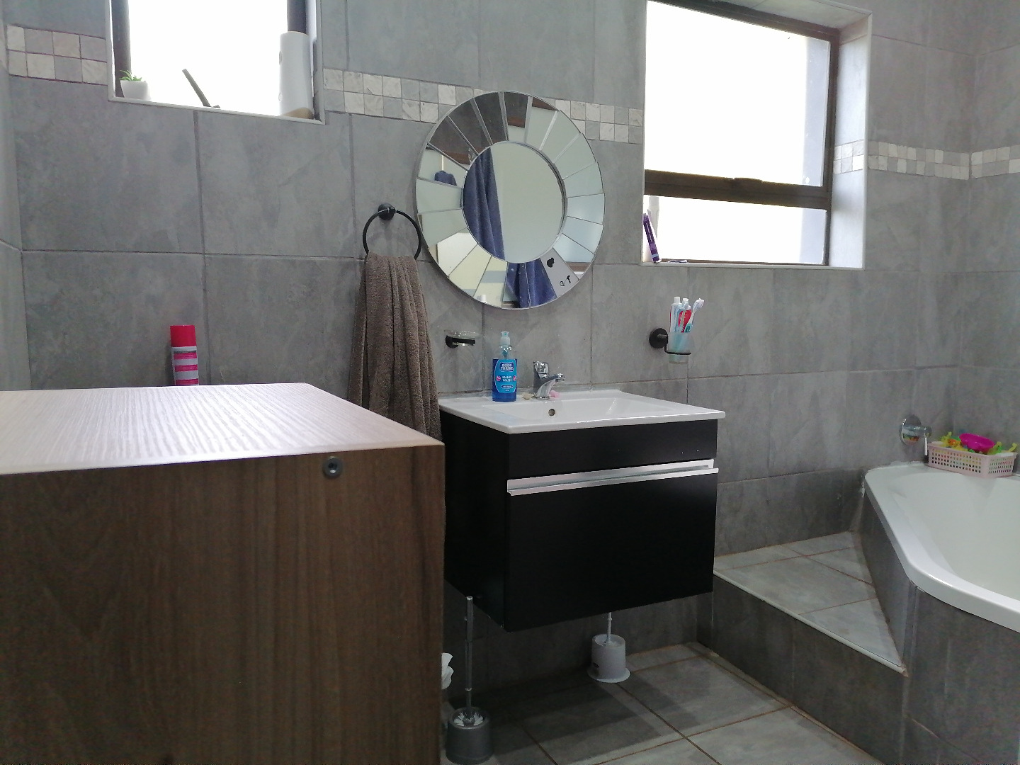The outdoor spaces are a true highlight, set on a generous 1375 sqm erf. Enjoy a private oasis featuring a refreshing swimming pool, perfect for leisure and recreation. Adding a touch of luxury, a private outdoor sauna cabin provides a serene escape. Mature trees and an established garden create a tranquil environment, with paved pathways connecting these desirable amenities, all enclosed by a brick wall for enhanced privacy.
