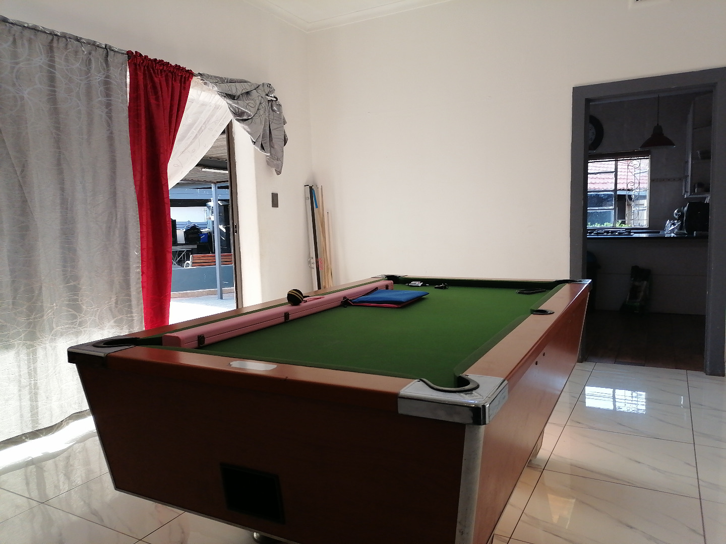 Step inside to discover a thoughtfully designed interior, boasting a generous 399 sqm floor size. The property features two modern kitchens, a significant advantage for dual living arrangements or extended families. Each kitchen is equipped with sleek white cabinetry, contrasting black countertops, and warm wood-look flooring. Highlights include a central island , integrated oven, and stylish red pendant lighting, offering both functionality and contemporary appeal. A comfortable lounge provides ample space for relaxation and entertaining.