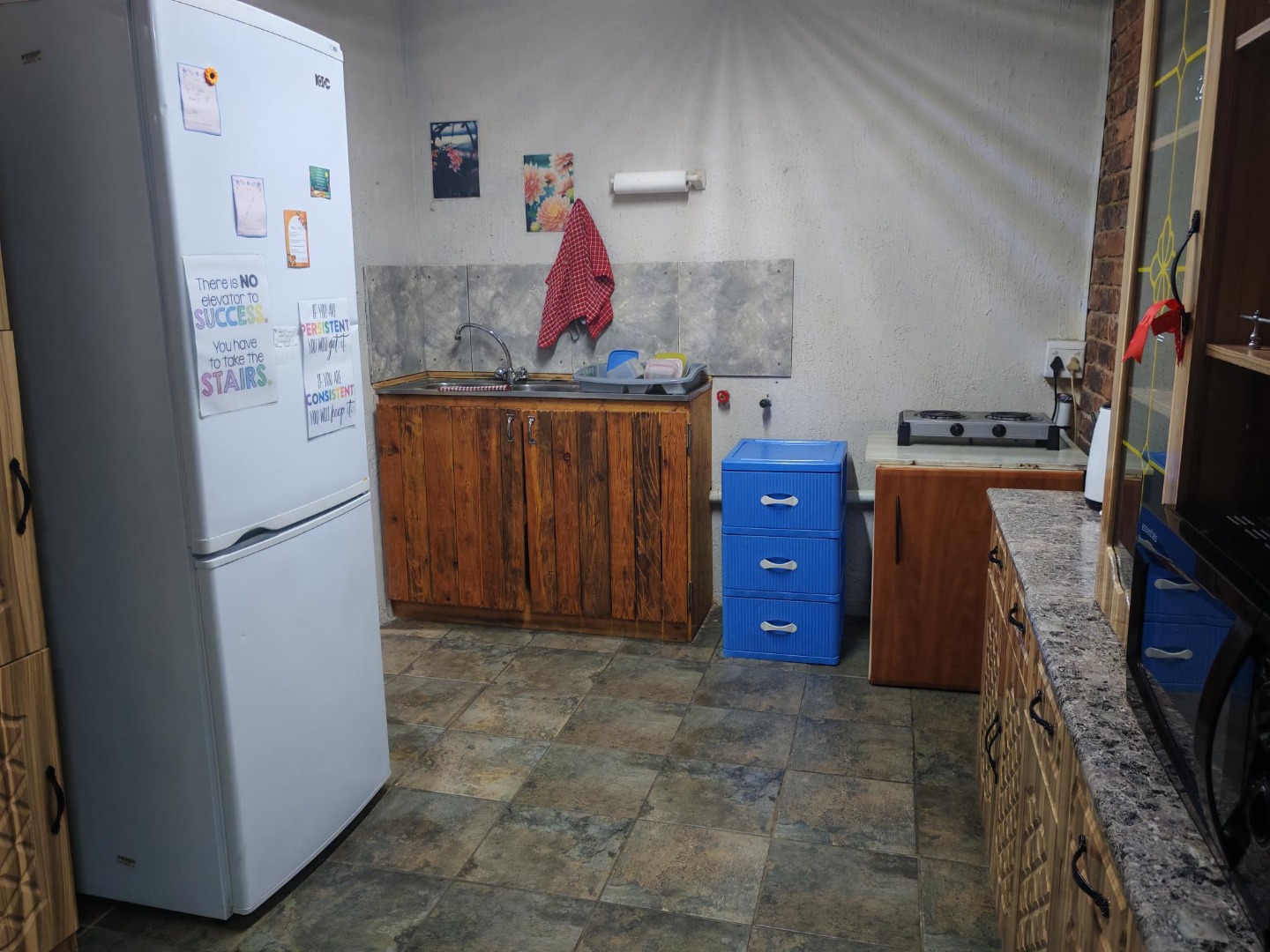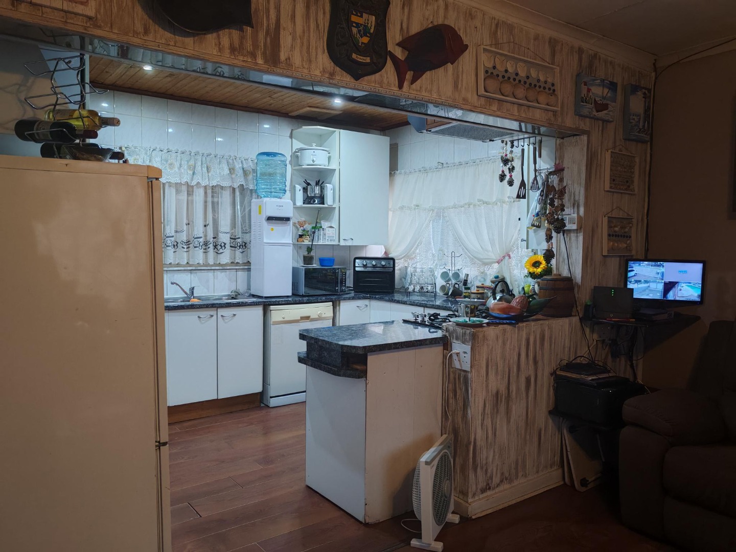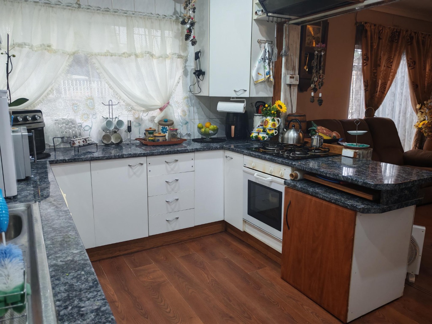 Step inside and discover a home designed for easy living. You'll find three cozy lounges, perfect for relaxing with loved ones or entertaining friends. The main dining room is ready for family meals, and with three kitchens, you've got incredible flexibility! Imagine a main kitchen for daily cooking, another for a flatlet, and perhaps a third for a braai room or outdoor entertainment area. The kitchens feature functional layouts, some with granite-style countertops and gas stoves, making meal prep a breeze. The wood-look laminate flooring adds a warm touch throughout.