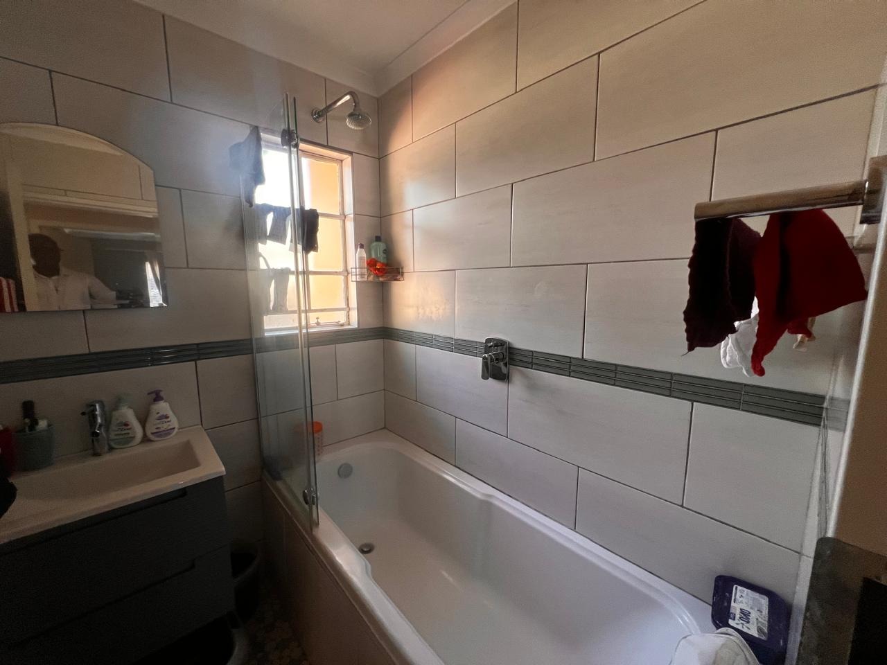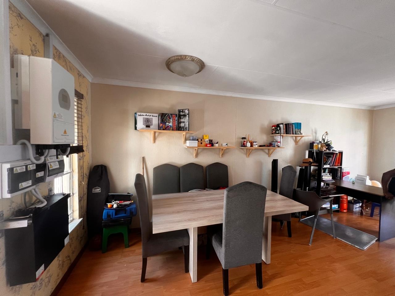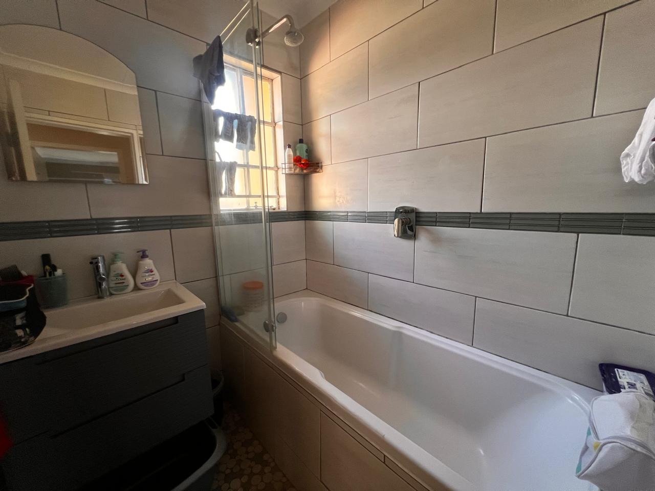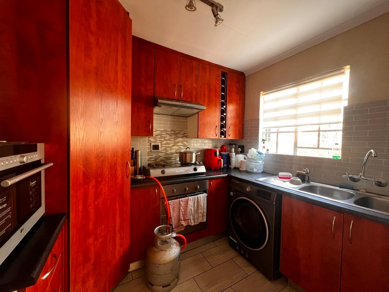 Discover comfortable living in this well-appointed 2-bedroom, 2-bathroom residence located within a secure complex in The Reeds, Centurion. Designed for modern convenience, the home features an inviting open-plan living and dining area, complete with warm wooden laminate flooring that extends throughout, creating a cohesive and welcoming atmosphere. The functional kitchen boasts ample dark red wooden cabinetry, dark countertops, a gas stove, and integrated appliances including an oven/microwave and an under-counter washing machine, all illuminated by natural light from a window. A dedicated workspace within the living area adds to the home's practicality. The two bedrooms offer comfortable retreats, each featuring tiled flooring and built-in wardrobes for efficient storage. One bedroom benefits from an en-suite bathroom, providing added privacy and convenience. The two bathrooms are neatly tiled with light-colored rectangular tiles and include a bathtub with an overhead shower and glass screen, along with a vanity and mirror, ensuring a refreshing experience. This property prioritises sustainability and security. It is equipped with solar panels, a solar geyser, and a solar inverter system, offering potential energy savings and backup power. The complex itself is a gated community with 24-hour security, CCTV surveillance, electric fencing, and a security post, ensuring peace of mind. Residents also benefit from fibre connectivity and two dedicated parking bays, complemented by paved roads and a well-maintained garden area. Situated in the metropolitan and suburban area of The Reeds, Centurion, this home offers a balanced lifestyle with convenient access to local amenities and transport routes. It presents an ideal opportunity for those seeking a secure and energy-efficient living space. Key Features: * 2 Bedrooms, 2 Bathrooms (1 En-suite) * Open-plan Living and Dining Area * Functional Kitchen with Gas Stove * Wooden Laminate and Tiled Flooring * Built-in Wardrobes * Solar Panels, Solar Geyser, and Inverter System * Fibre Connectivity * 2 Dedicated Parking Bays * 24-Hour Security Complex with CCTV and Electric Fencing * Garden and Paved Driveway
