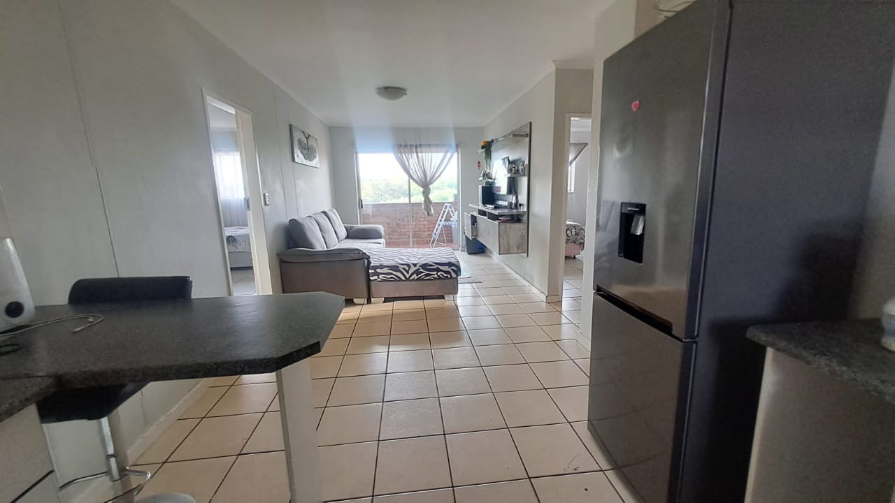 The home features an open-plan layout, seamlessly connecting the lounge, dining area, and a functional kitchen. The living area extends to a private balcony, offering an elevated perspective and an ideal spot for relaxation or enjoying the fresh air. There are two spacious bedrooms and a bathroom consisting of a bathtub and handheld shower. Practicality is further enhanced with a dedicated single garage and additional parking space, ensuring convenience for residents and guests.