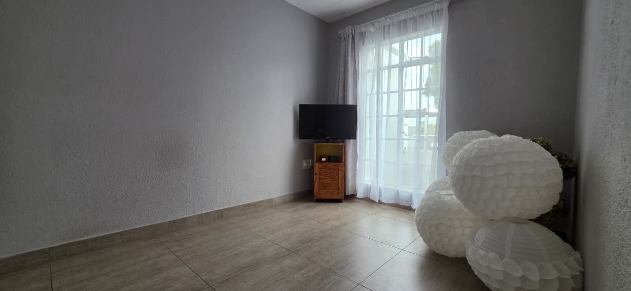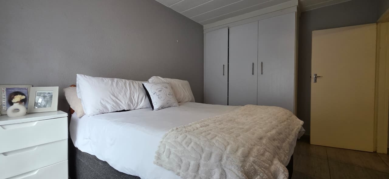 Both bedrooms are well-sized with built-in cupboards, while the bathroom is neatly finished and conveniently positioned to service the home. The unit is tiled throughout, ensuring low maintenance and a neat, cohesive look.