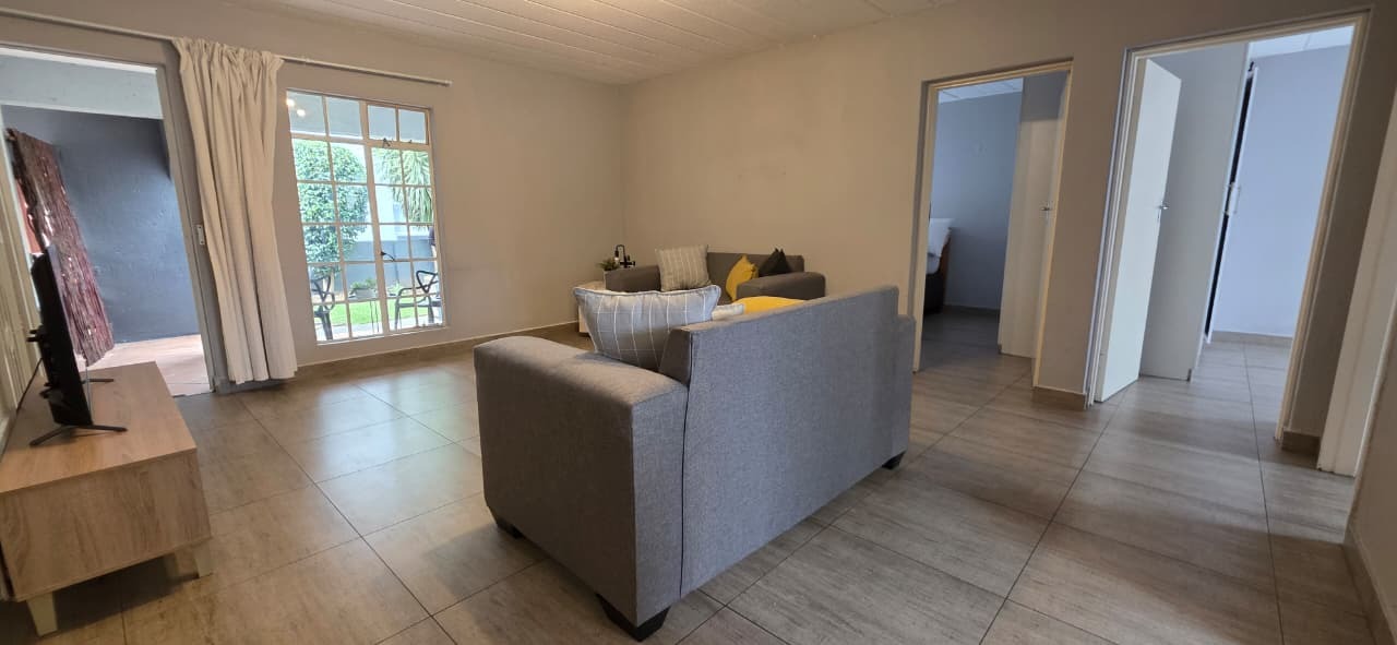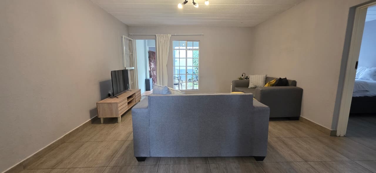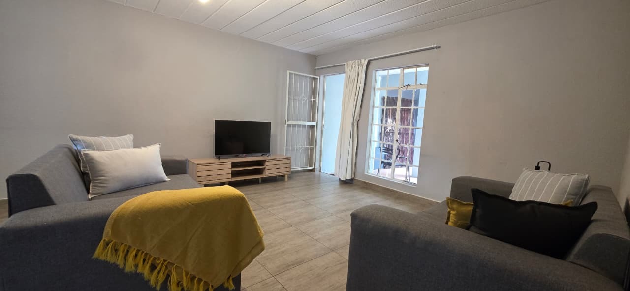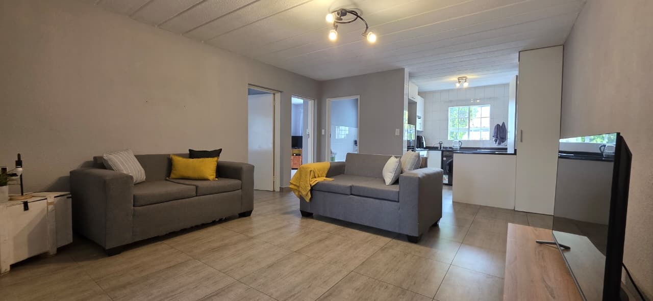Both bedrooms are well-sized with built-in cupboards, while the bathroom is neatly finished and conveniently positioned to service the home. The unit is tiled throughout, ensuring low maintenance and a neat, cohesive look.