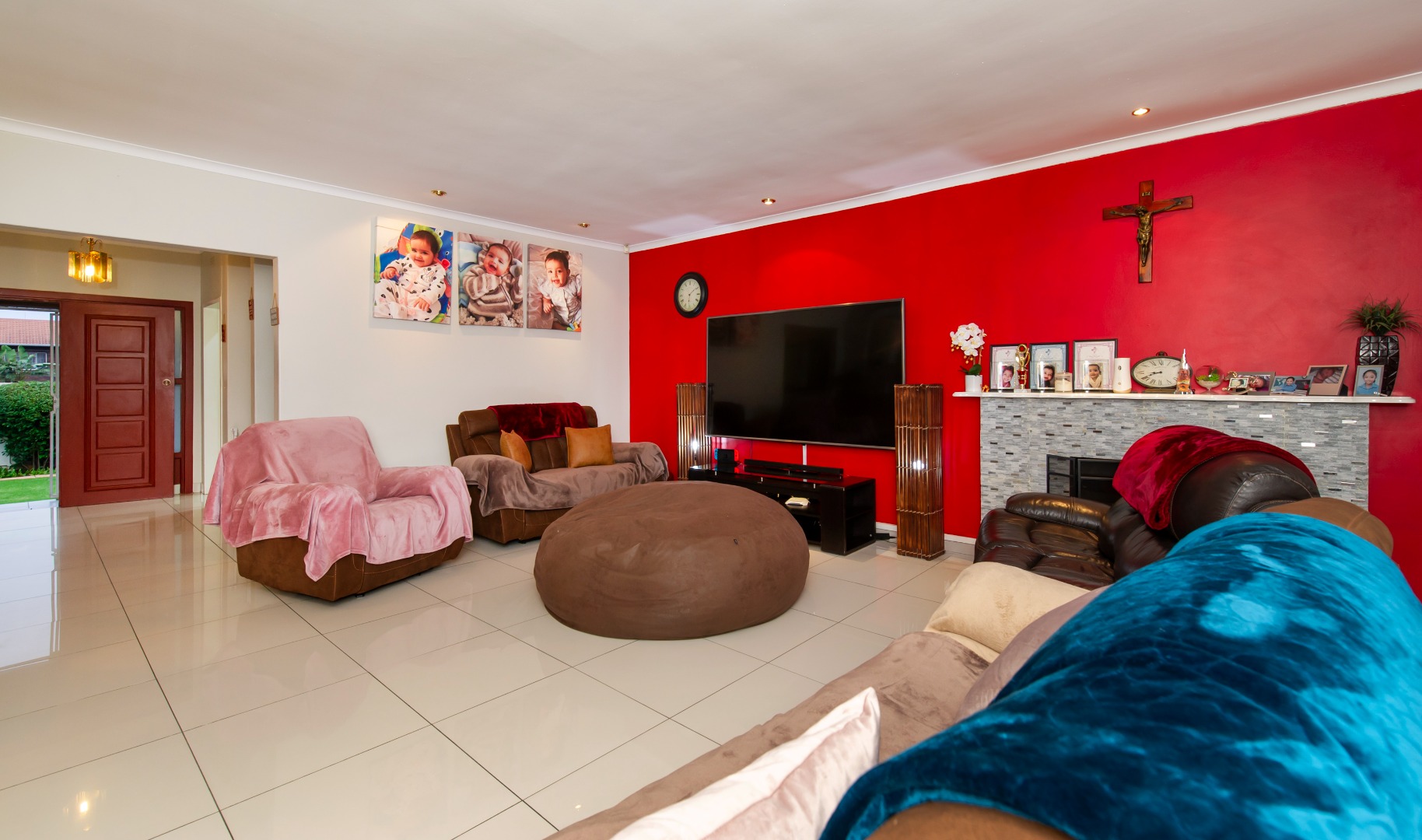 - Spacious Living Areas – A formal dining room and open-plan family lounge with a built-in fireplace create a warm, inviting atmosphere.