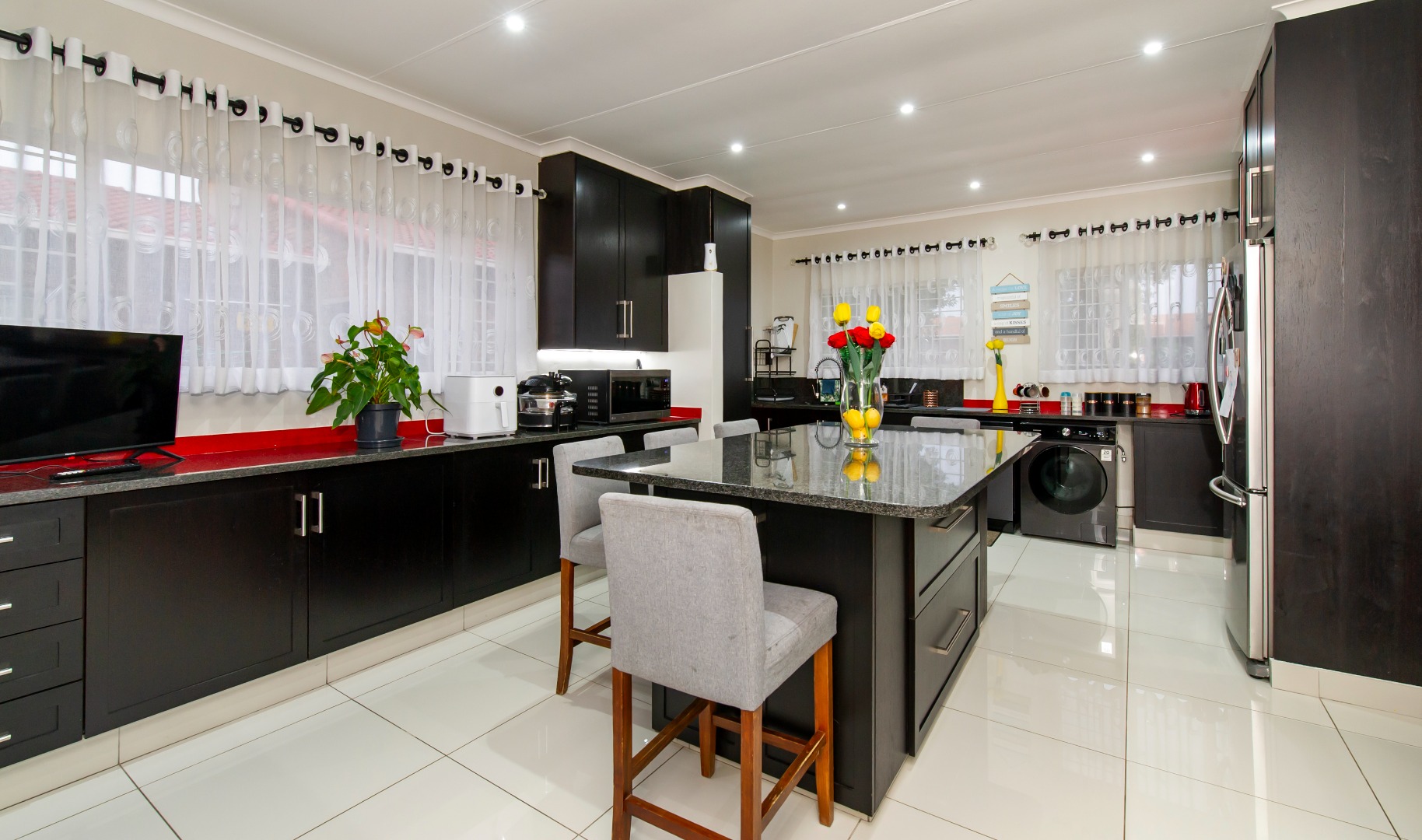 - Brand New Gourmet Granite Kitchen – Newly installed with top-of-the-range appliances, a stylish ventre island and breakfast bar, and ample workspace.