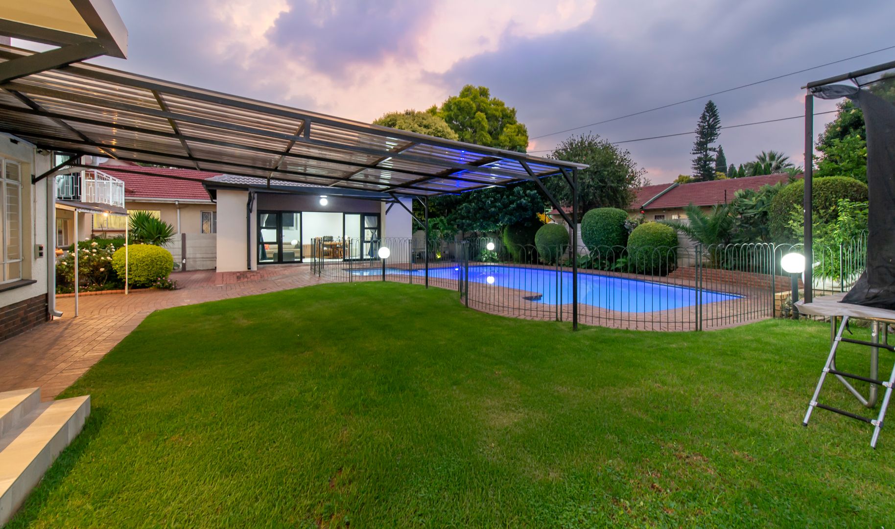 - Ultimate Entertainment Space – Outdoor Enclosed patio for all weather entertaining , a solar-heated swimming pool, and a pristine garden make for the perfect private outdoor retreat.