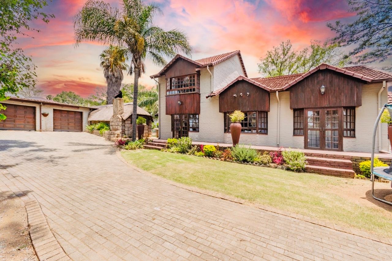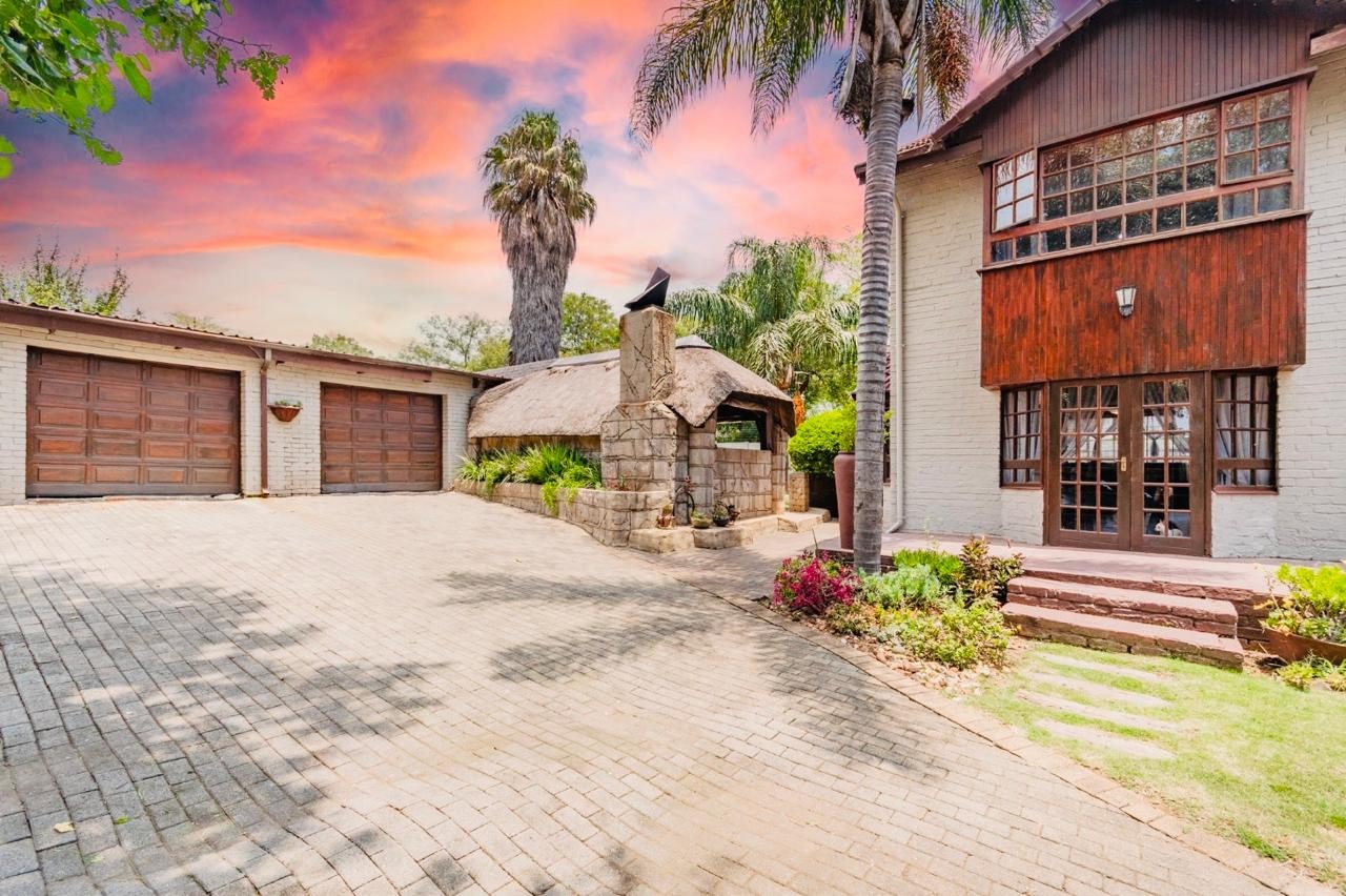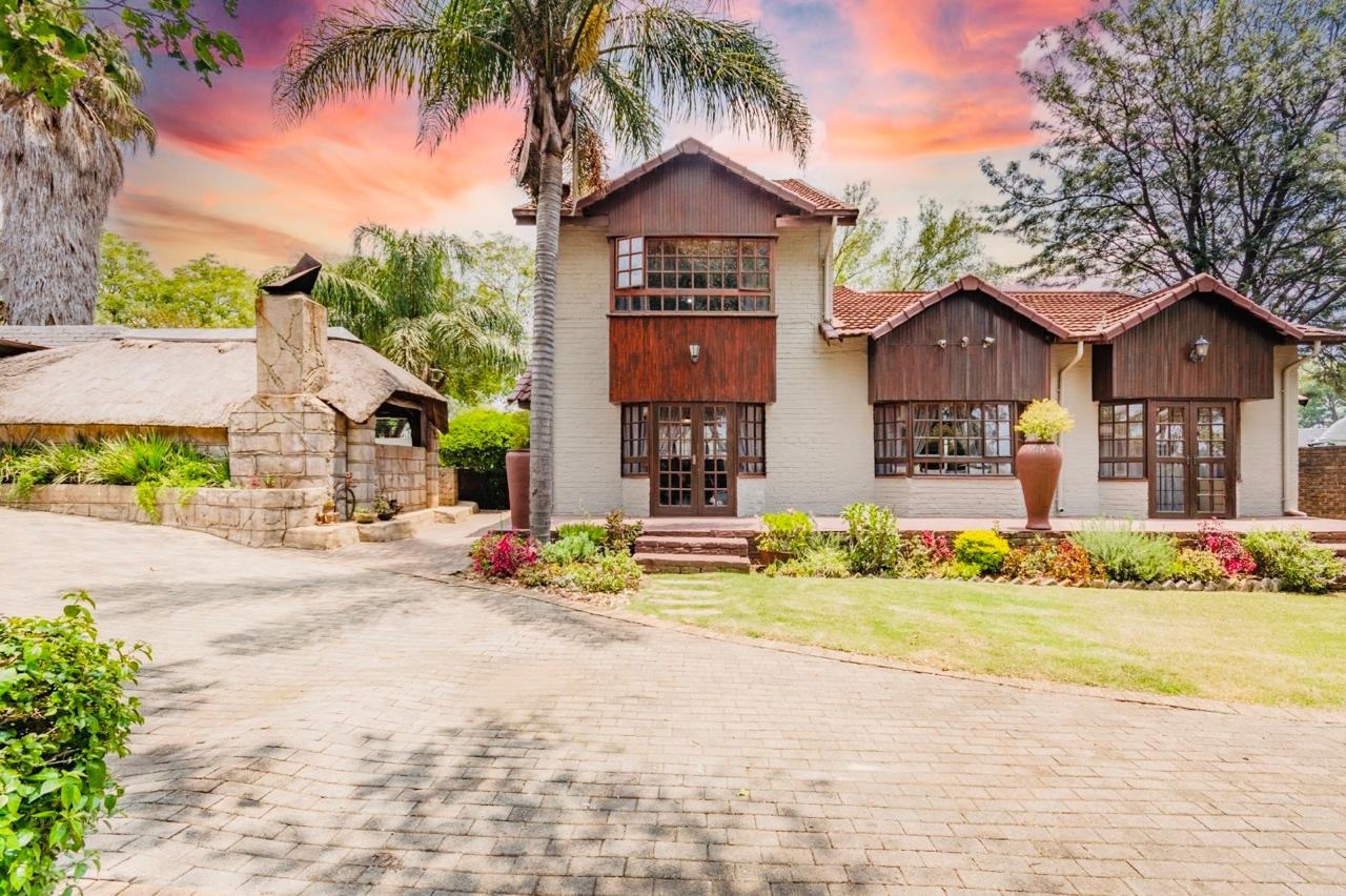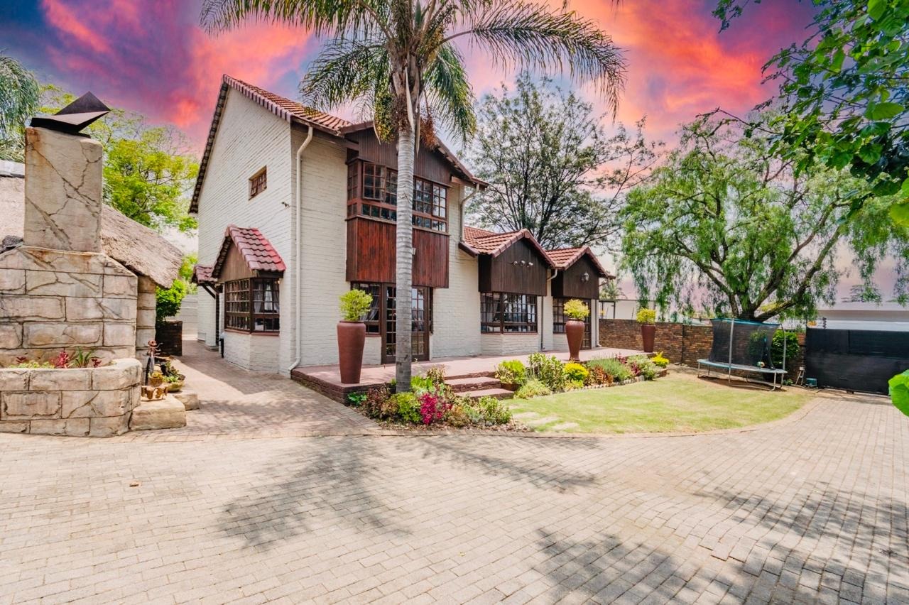This charming 3-bedroom, 2-bathroom residence nestled in the heart of Edenvale. The property immediately impresses with its distinctive architectural style, featuring a white brick facade, dark wood accents, and a multi-gabled terracotta tile roof. A beautifully landscaped garden, complete with a well-maintained lawn and flower beds, complements the paved driveway, enhancing its curb appeal.