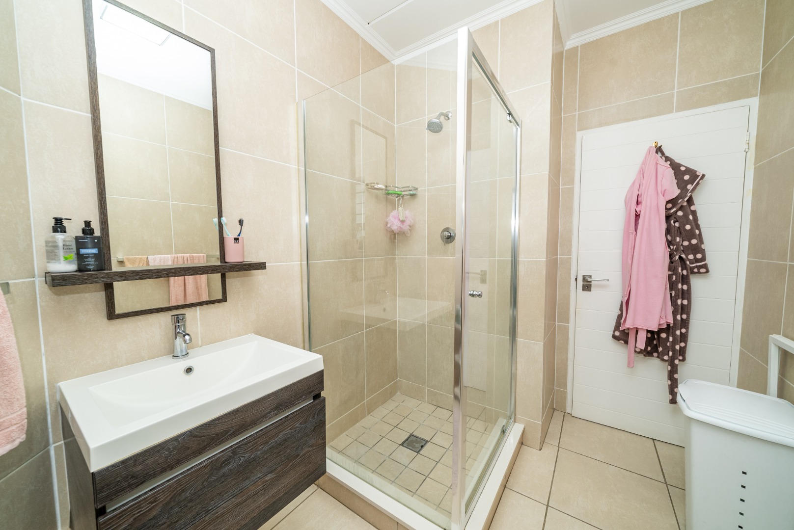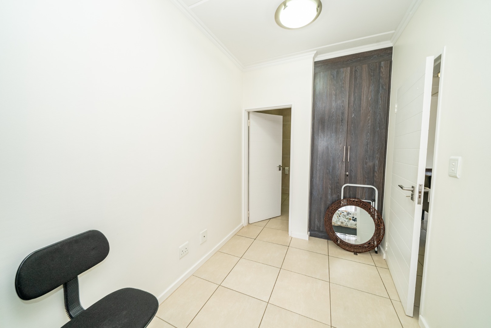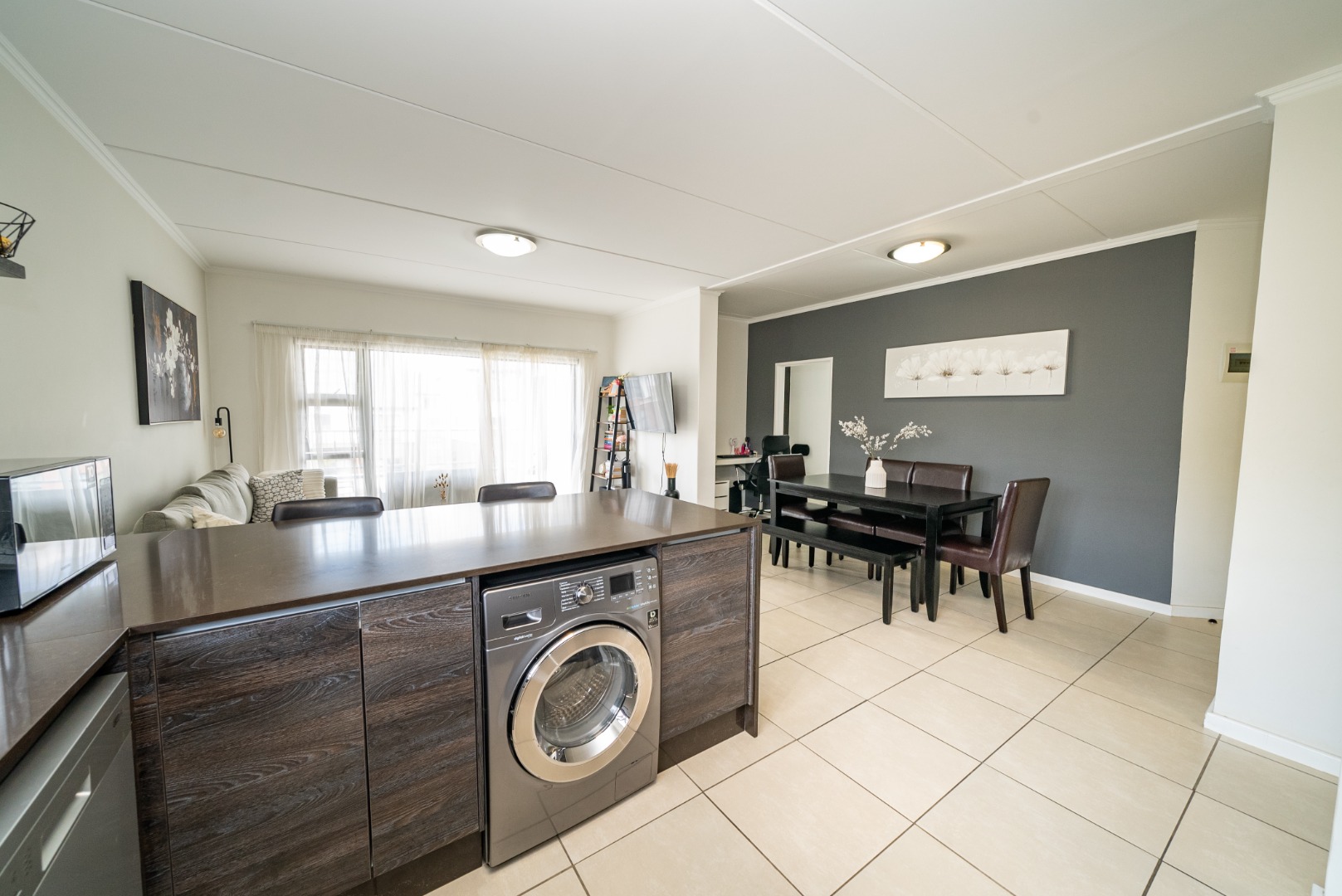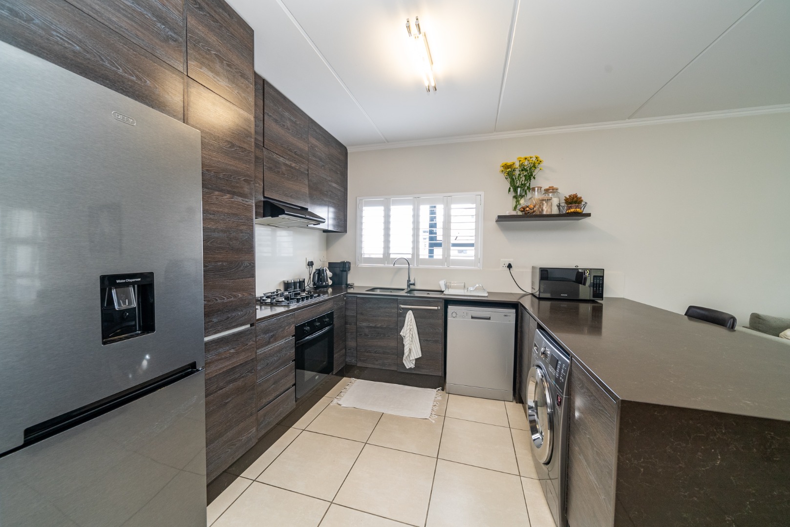 The unit boasts a generous open-plan layout, easily accommodating a small dining table and chairs as well as a large lounge suite, making it ideal for both everyday living and entertaining. The well-appointed kitchen is a true chef’s delight, featuring additional cabinetry for enhanced storage and a large granite countertop that doubles perfectly as a breakfast nook. Over and above this, this unit is sold with three appliances, namely, fridge, dishwasher and washing machine.