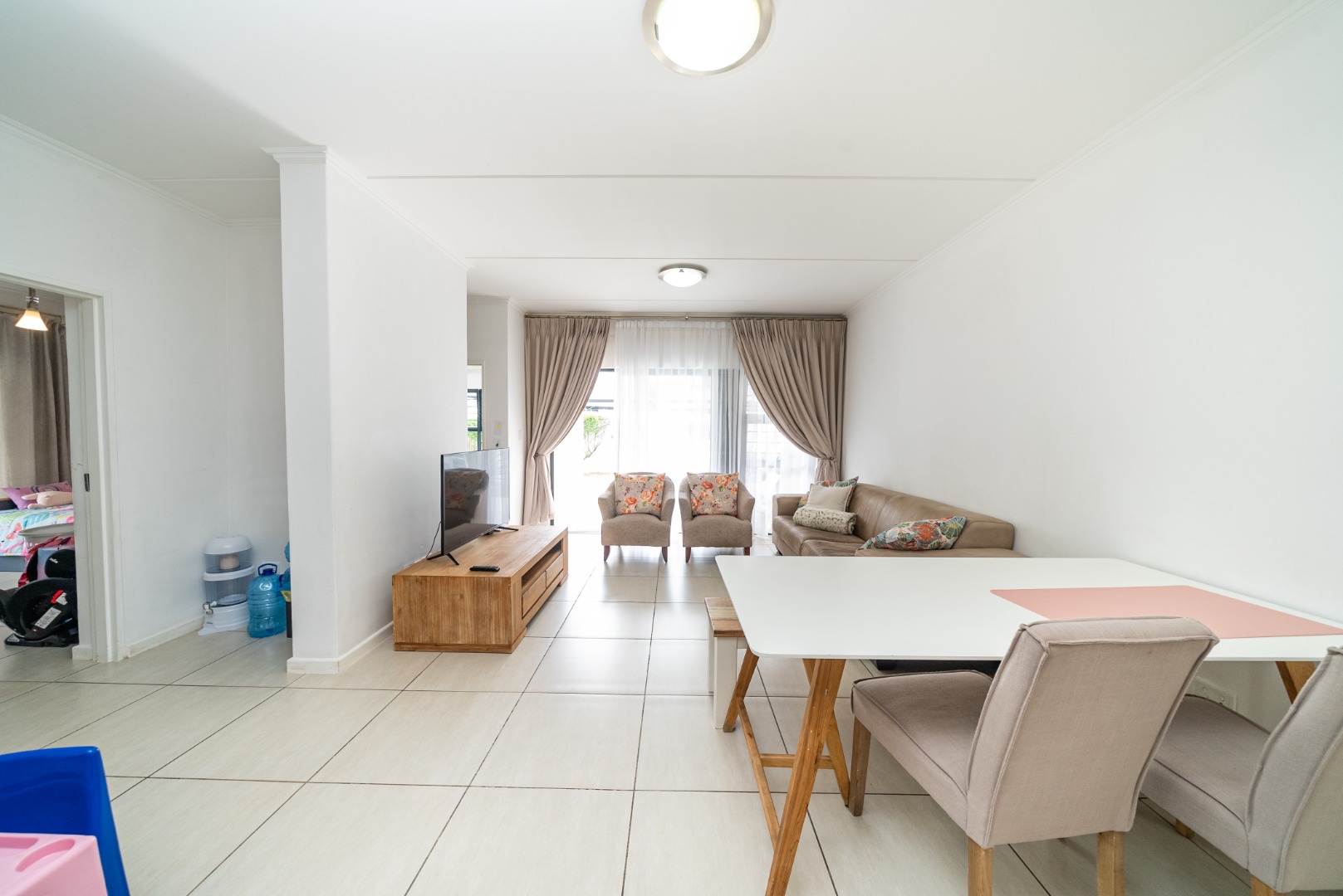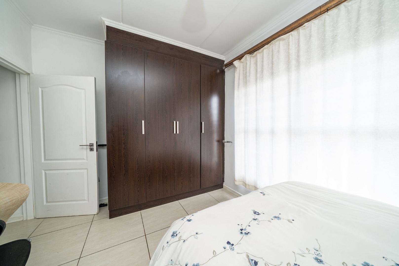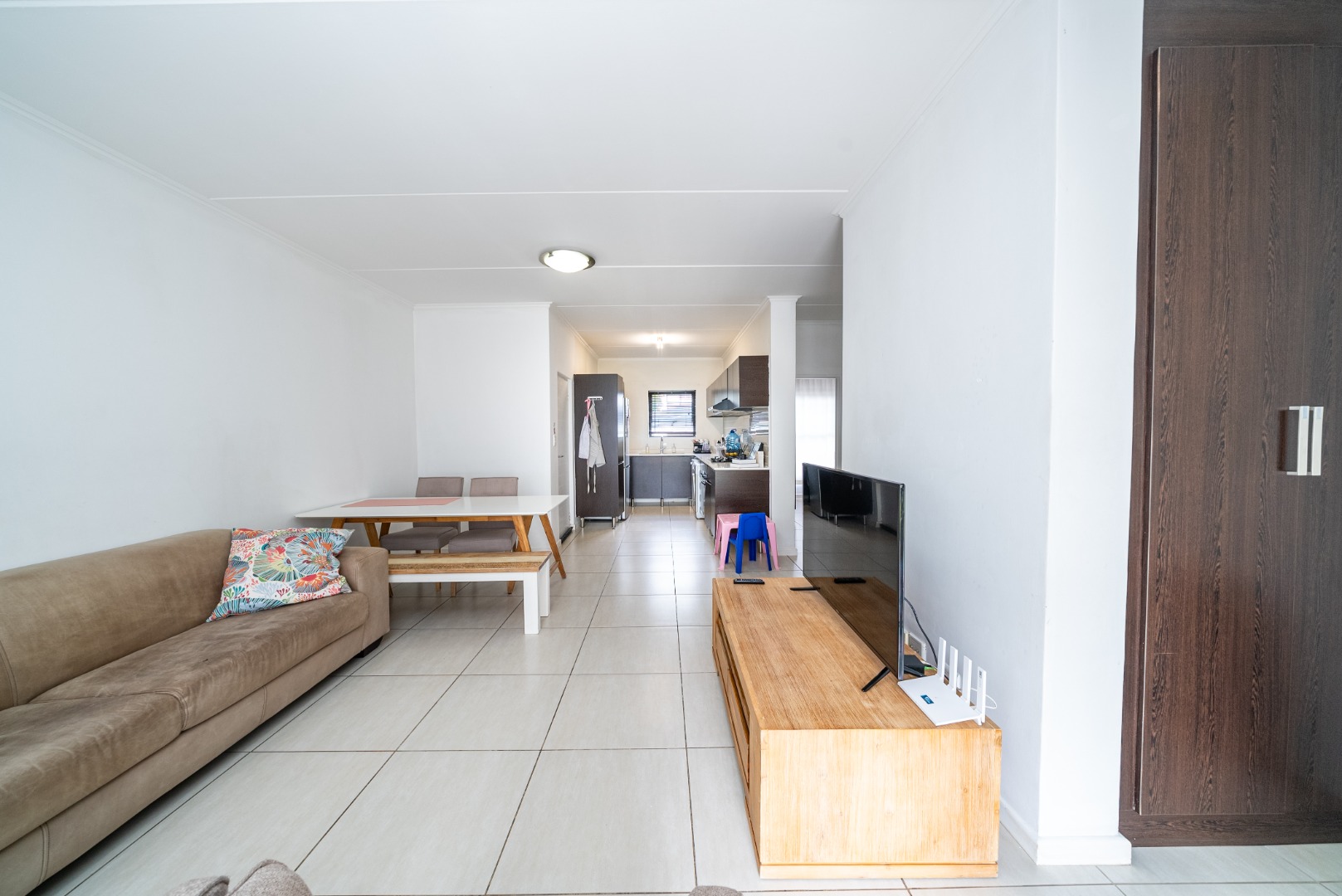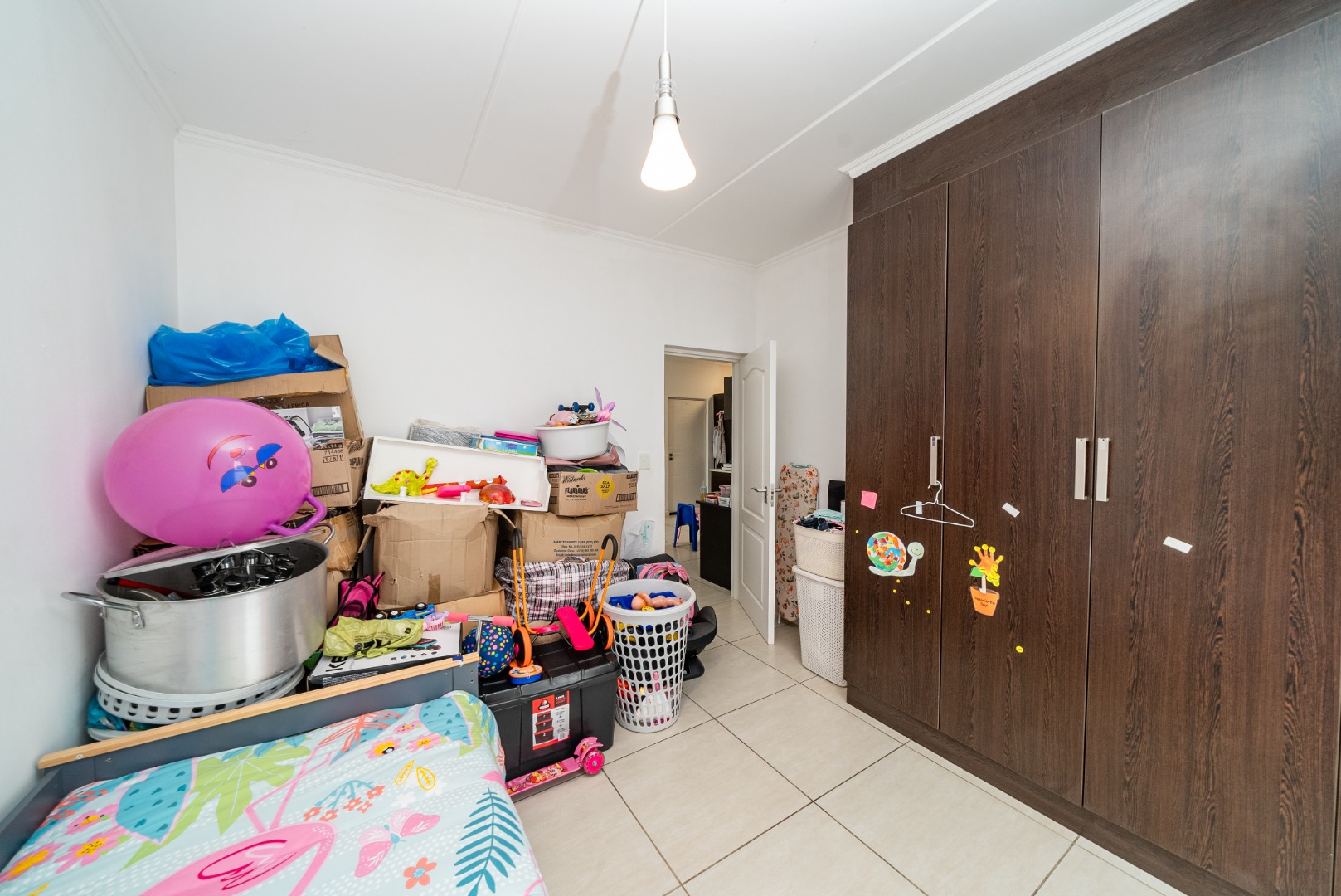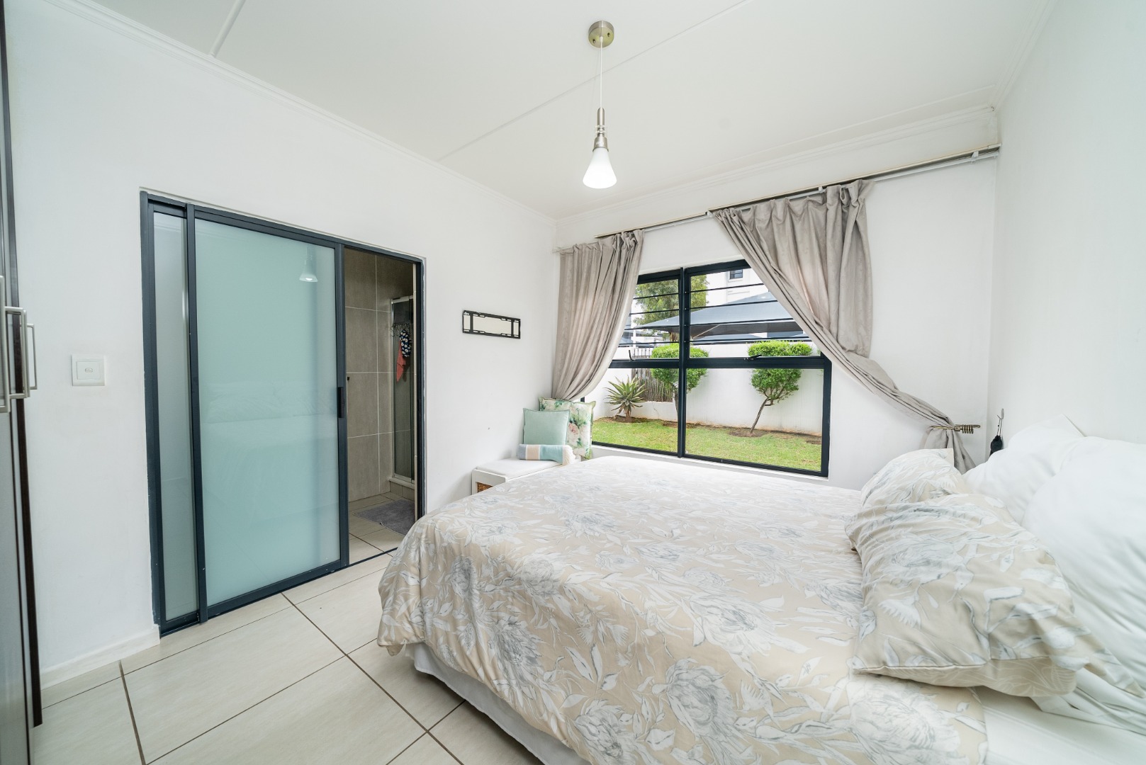 The sunlit bedrooms are generously sized, each fitted with floor-to-ceiling built-in cupboards for optimal storage. The open-plan lounge and dining area provide a seamless flow, leading out to a spacious garden—an ideal space for kids and pets to enjoy.