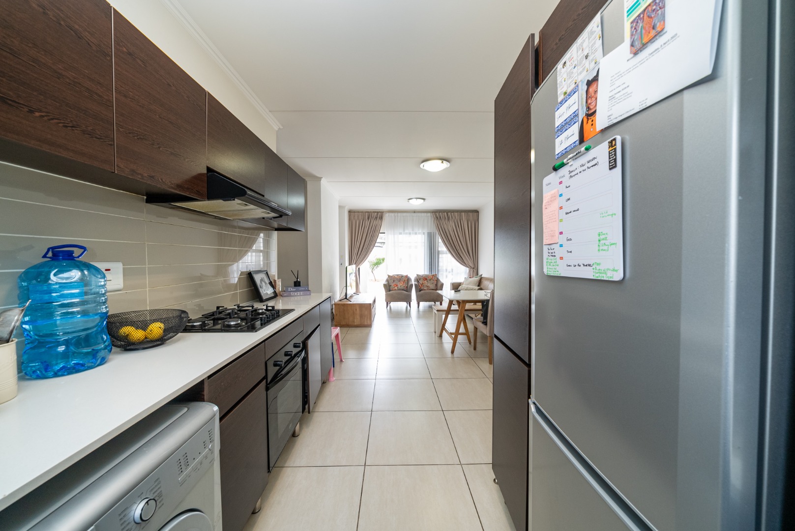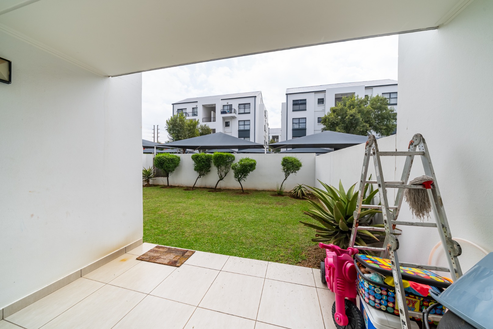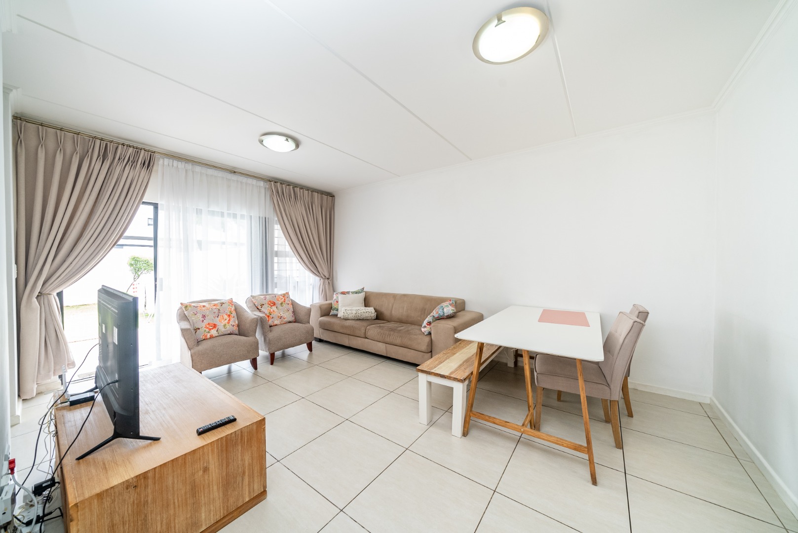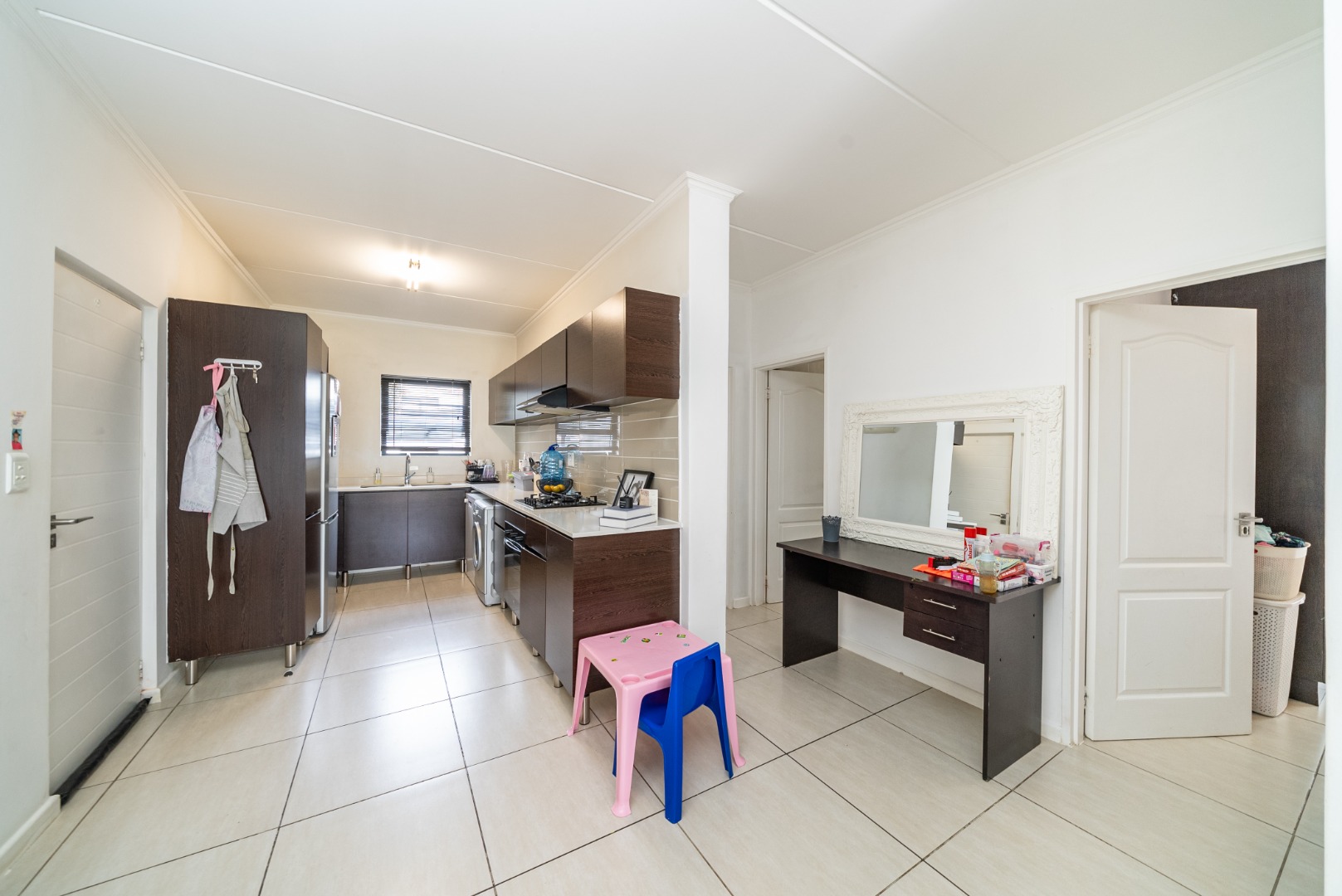The sunlit bedrooms are generously sized, each fitted with floor-to-ceiling built-in cupboards for optimal storage. The open-plan lounge and dining area provide a seamless flow, leading out to a spacious garden—an ideal space for kids and pets to enjoy.
