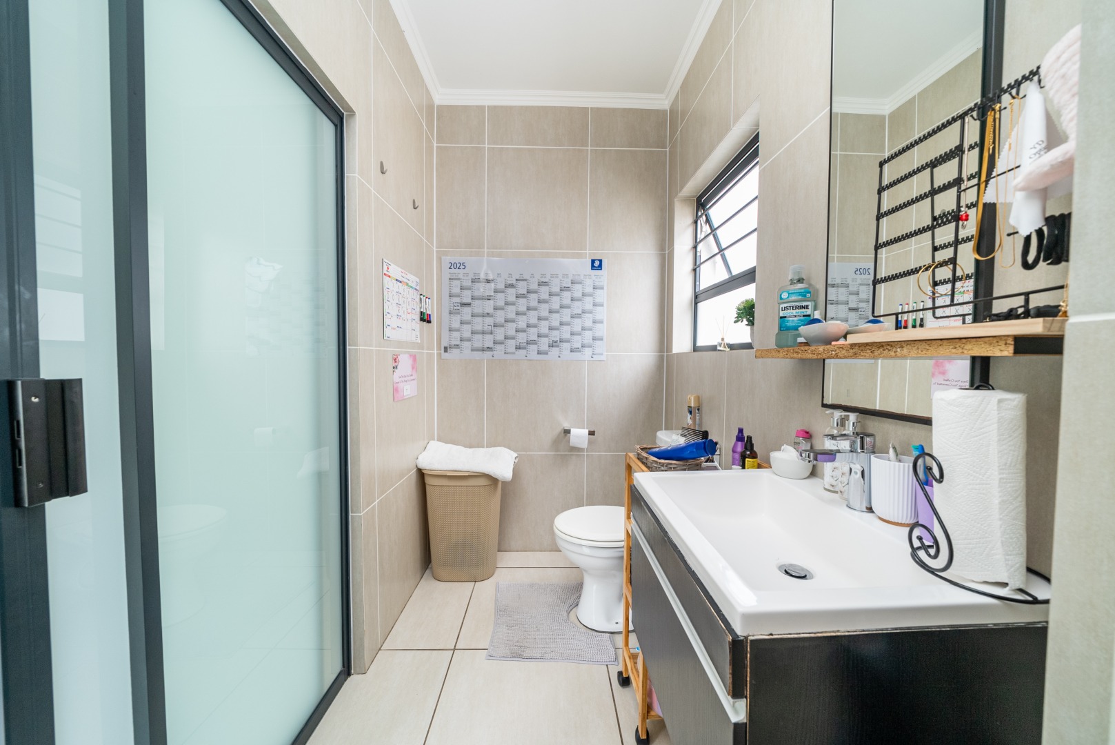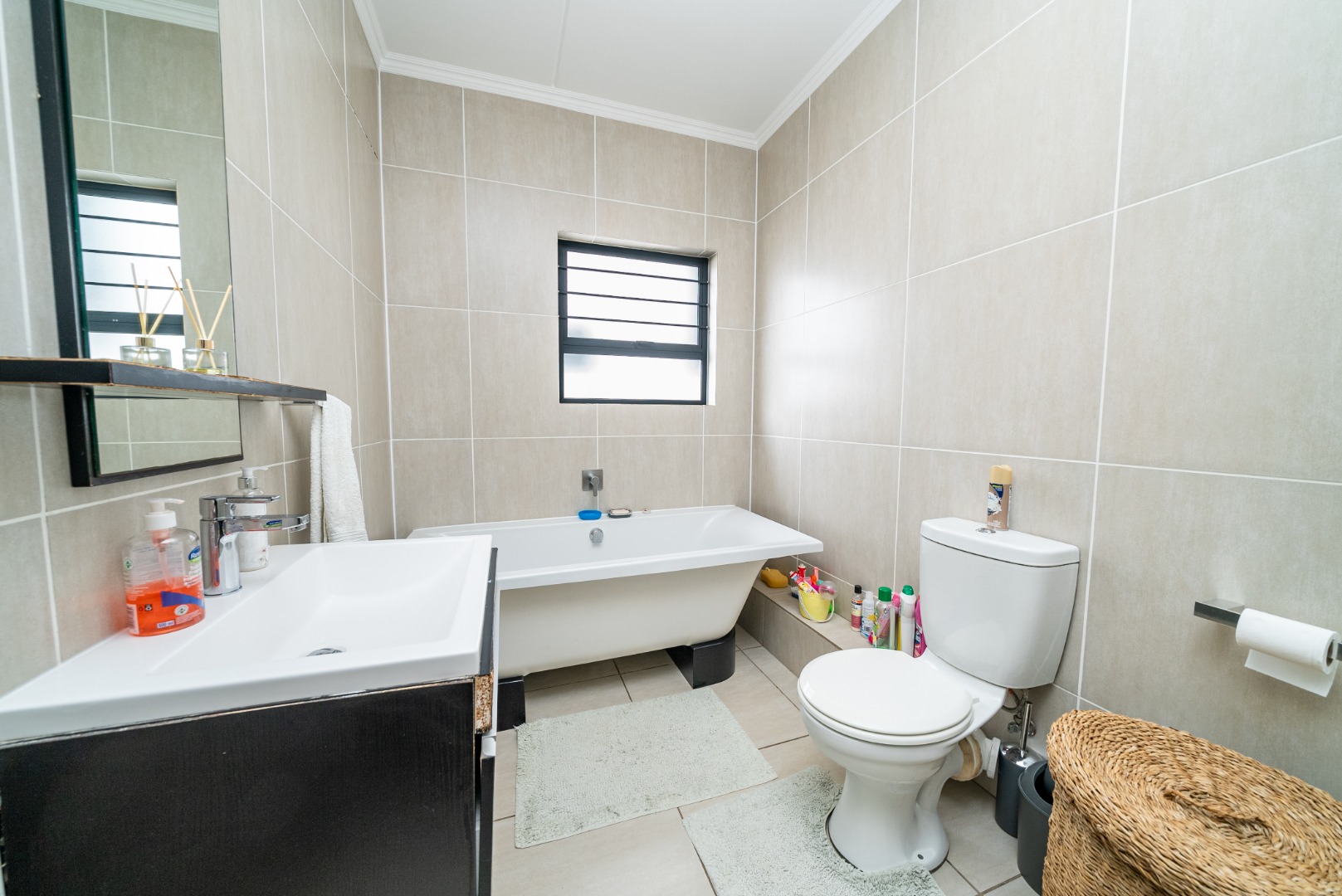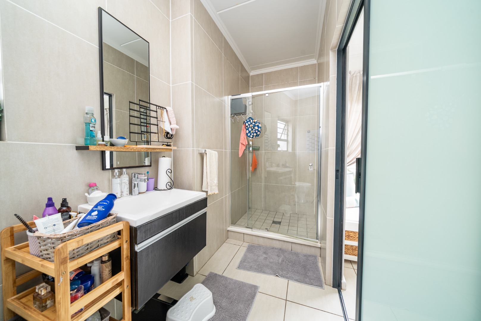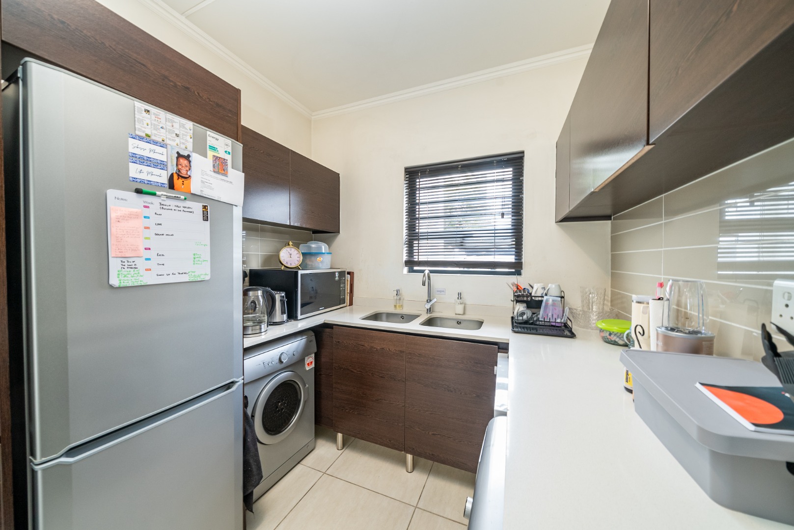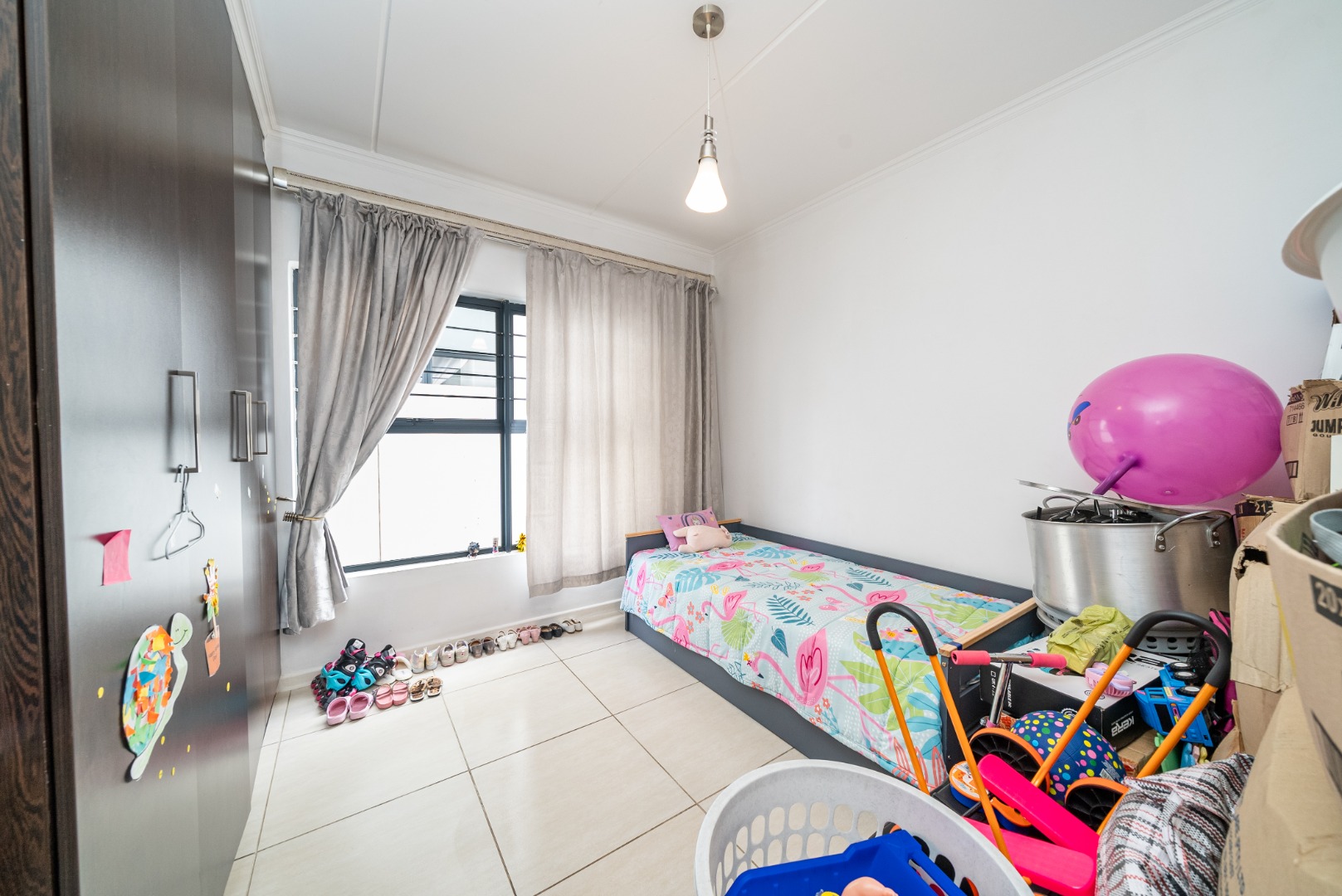 The sunlit bedrooms are generously sized, each fitted with floor-to-ceiling built-in cupboards for optimal storage. The open-plan lounge and dining area provide a seamless flow, leading out to a spacious garden—an ideal space for kids and pets to enjoy.