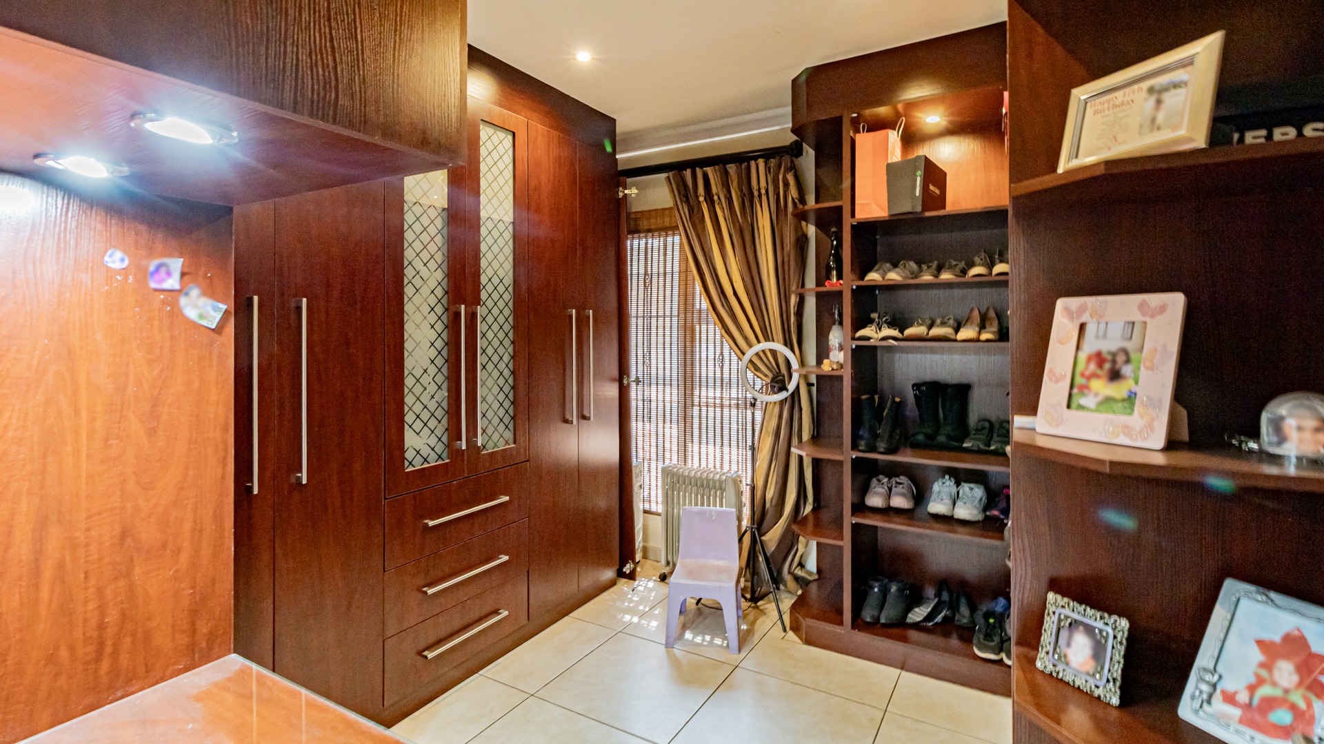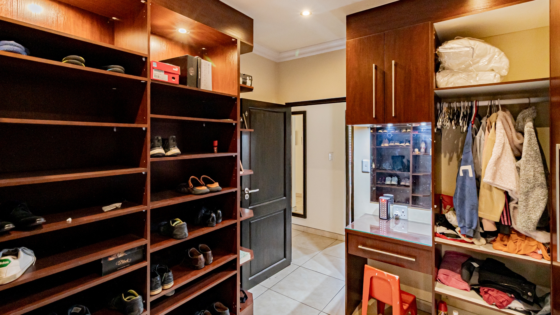 The home boasts four spacious and well-appointed bedrooms, thoughtfully laid out to ensure privacy and functionality. Two of the bedrooms enjoy en-suite bathrooms with quality finishes, while a separate full bathroom serves the remaining bedrooms and guests. A versatile study, ideal as a home office or additional bedroom, offers en-suite access and direct entry to the separate laundry room, making it perfect for extended family living or a guest suite. Adding a touch of luxury and practicality, a fifth bedroom has been expertly converted into a spacious wooden walk-in closet. All bedrooms feature built-in cupboards, providing ample storage throughout.
