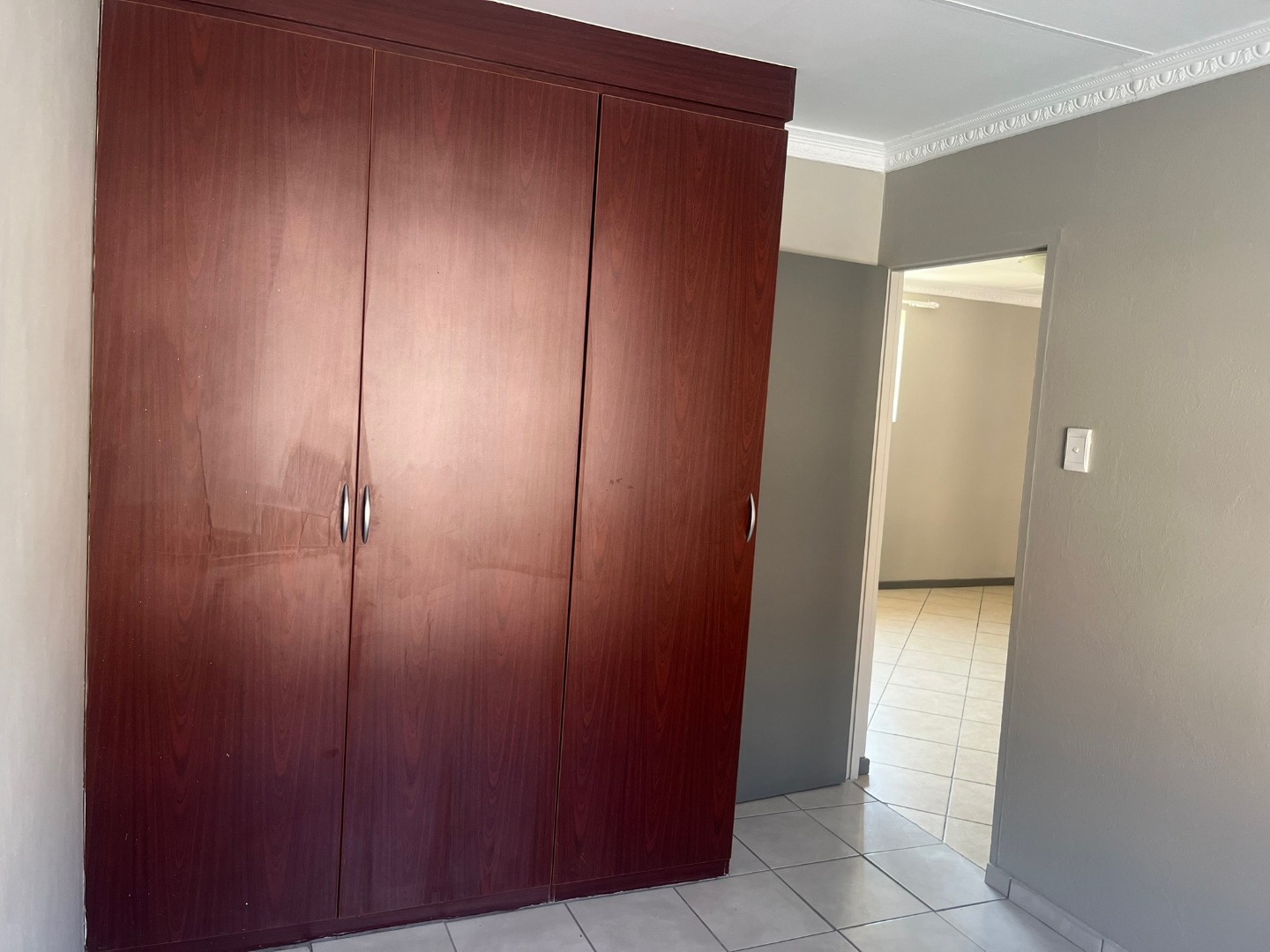 Both bedrooms are well-sized with built-in cupboards, and the bathroom includes a shower and a basin. Natural light fills the unit, creating a warm and welcoming atmosphere.