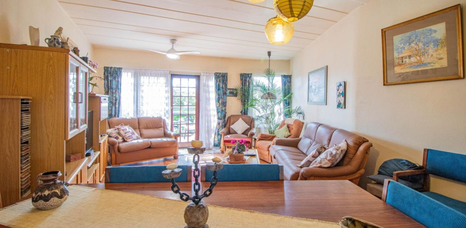 Step inside to a welcoming environment featuring a large lounge and dining area, a cozy TV room, and a well-sized kitchen with space for two appliances, making everyday living and entertaining effortless. The main residence offers three comfortable bedrooms, including a master suite with an en-suite bathroom and a shower, plus two additional generously-sized bedrooms sharing a second bathroom.