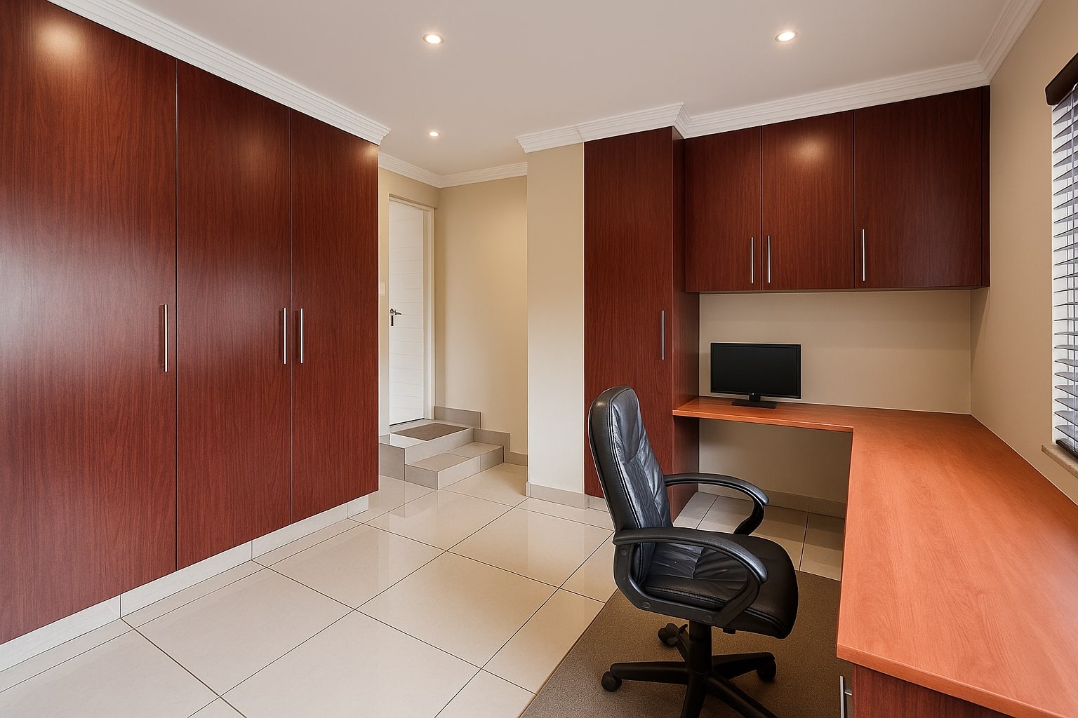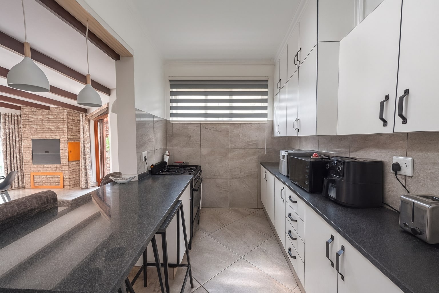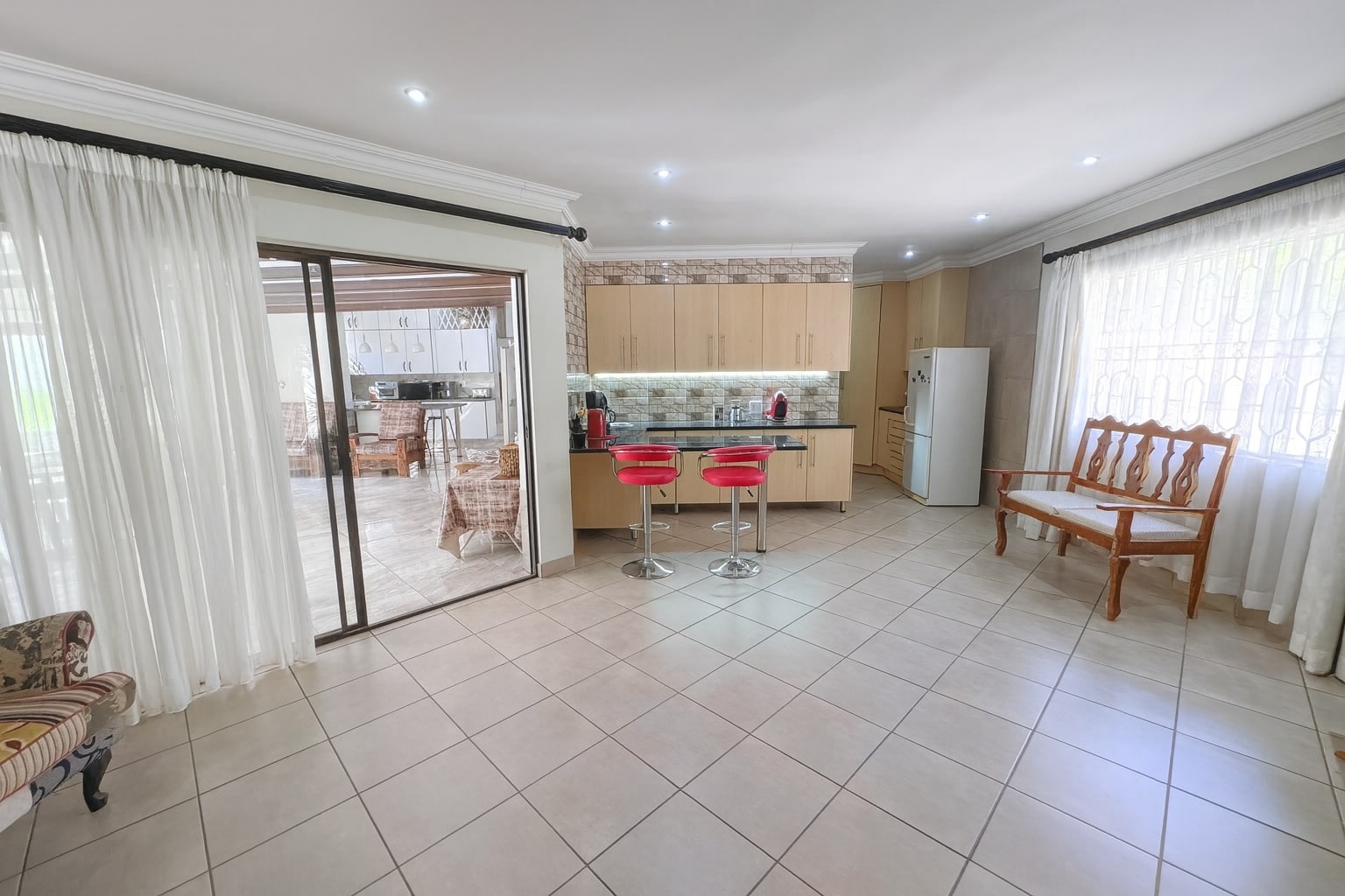 Set on a substantial 1481 sqm erf, the outdoor area is designed for relaxation and entertainment, featuring a private garden and a refreshing swimming pool. A built-in braai is perfect for hosting gatherings with family and friends. Security is paramount, with the home situated in a gated community and further secured by an alarm system, electric fencing, and a totally walled perimeter. Modern connectivity is assured with fibre readiness.
