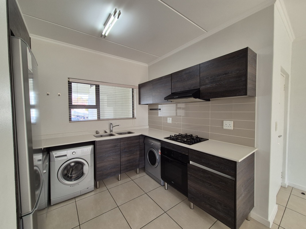 Step into this lovely 106 sqm apartment in a fantastic estate in Modderfontein, Edenvale, offering a relaxed lifestyle. You'll find a modern, open-plan living area with sleek tiled floors and a stylish accent wall, perfect for chilling out or entertaining. The kitchen is a real gem, boasting dark wood-look cabinetry, crisp white countertops, and integrated appliances like a gas hob, oven, and extractor fan. There's even a dedicated spot for your washing machine, making daily chores a breeze. Natural light streams in, creating a bright and inviting atmosphere. This home features two comfy bedrooms and two modern bathrooms, one of which is en-suite. Both bathrooms are beautifully tiled from floor to ceiling, with one offering a chic glass-enclosed shower and the other featuring a luxurious freestanding bathtub alongside a separate glass shower – talk about options! The main bedroom comes with a built-in dark wooden wardrobe and a large sliding glass door that opens right onto your private balcony. Speaking of the balcony, it's spacious, tiled, and even has a roll-down blind for those sunny afternoons, offering an expansive, open view. With two dedicated parking spaces, you're all set. The estate itself is a real bonus, providing a nature reserve lifestyle with access to a gym and clubhouse, plus pets are allowed! You'll also appreciate the peace of mind with 24-hour security, an access gate, alarm system, and fibre connectivity. Modderfontein is a growing area known for its blend of natural beauty and convenient amenities, making it a great spot to call home. This apartment truly offers a modern, secure, and comfortable living experience. Key Features: * 106 sqm modern apartment * 2 Bedrooms, 2 Bathrooms (1 en-suite) * Open-plan living with tiled floors * Modern kitchen with integrated appliances * Spacious private balcony with open views * Freestanding bathtub and glass showers * Built-in wardrobes * 2 Parking spaces * Estate living with gym and clubhouse * 24-hour security, alarm, and fibre ready