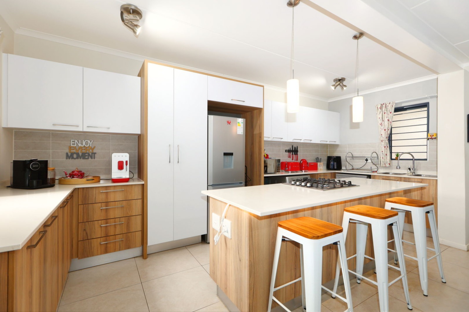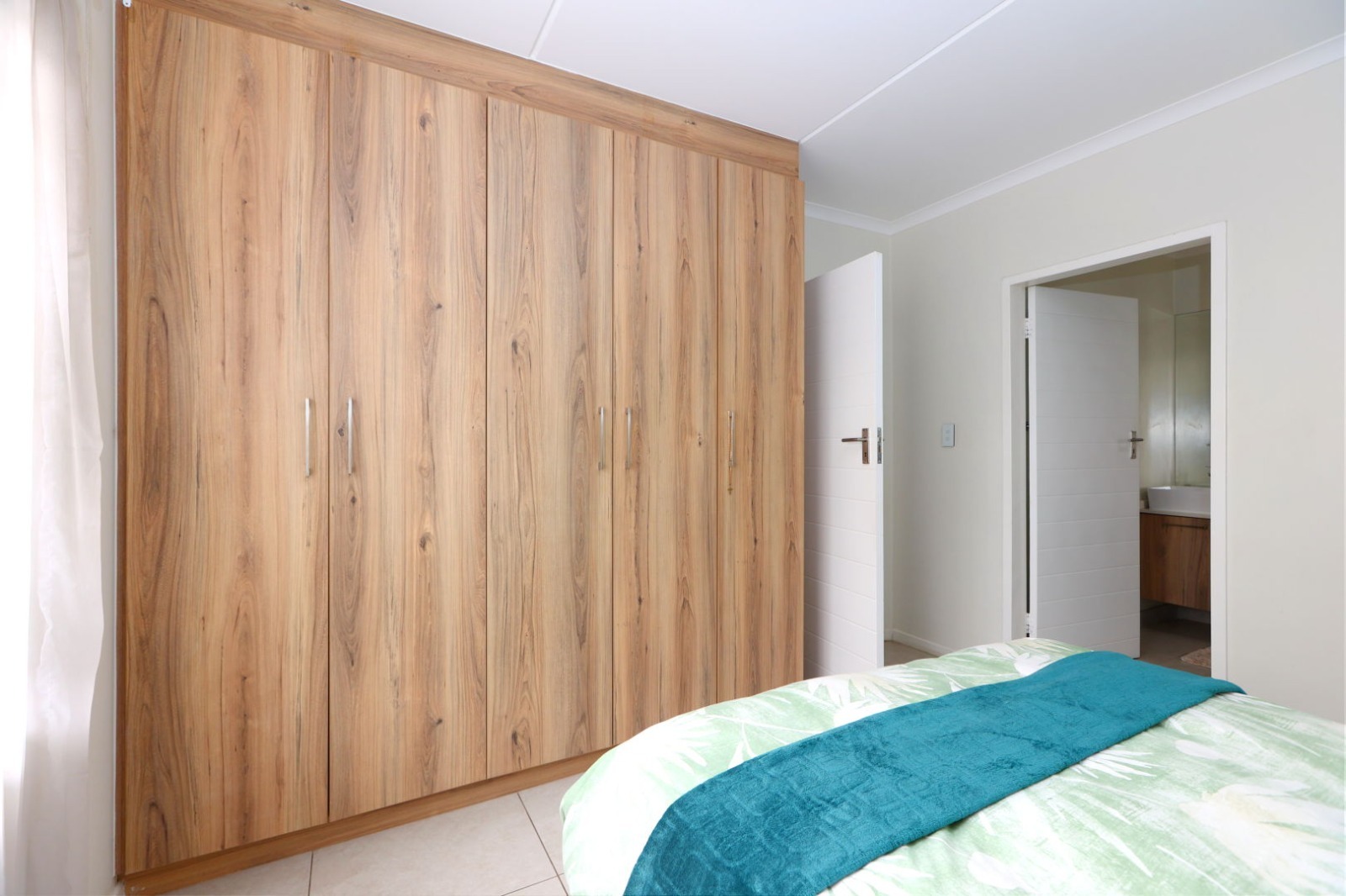 The apartment boasts three well-sized bedrooms, all fitted with built-in cupboards. There are two modern bathrooms, with the main bedroom enjoying the privacy of a full en-suite bathroom.