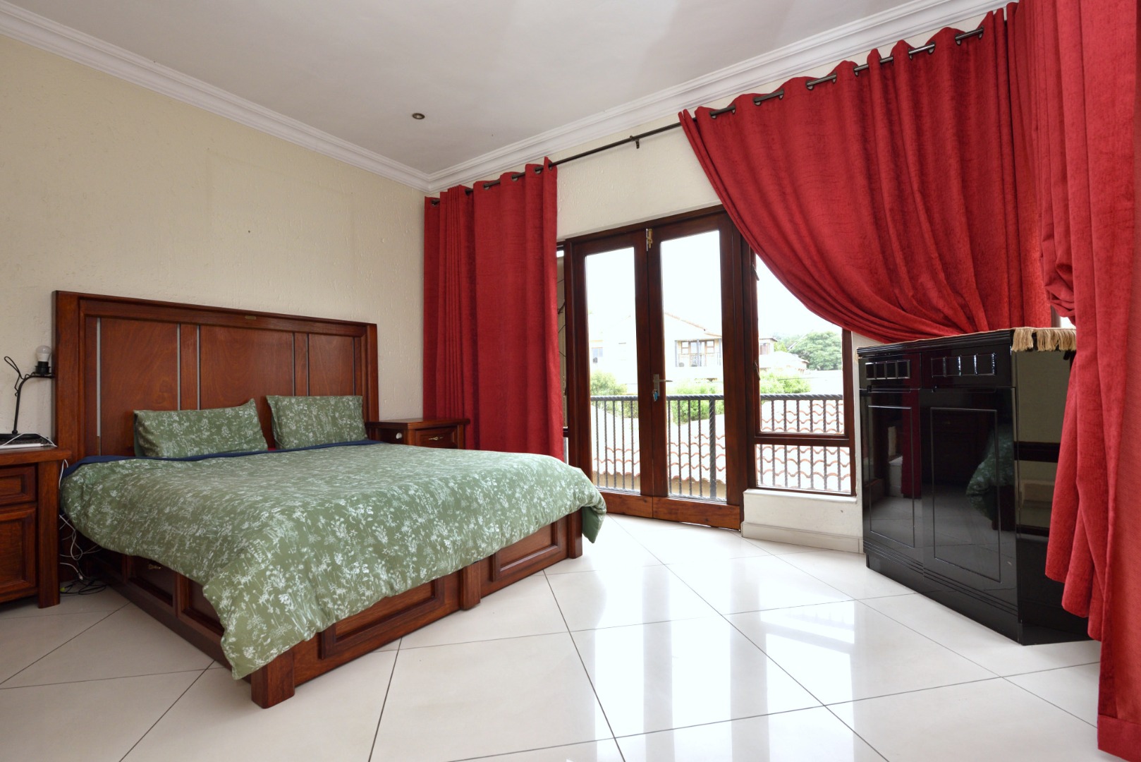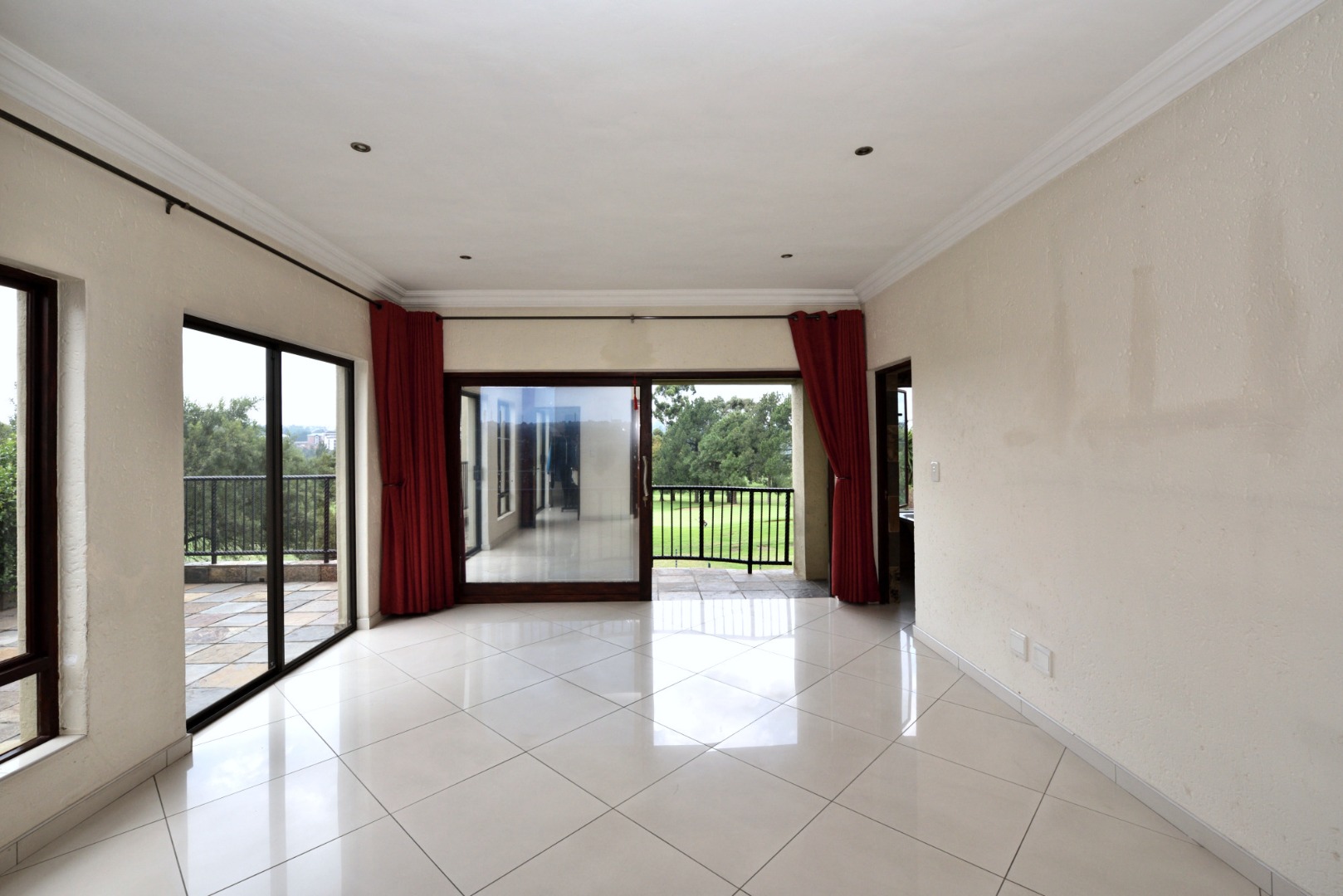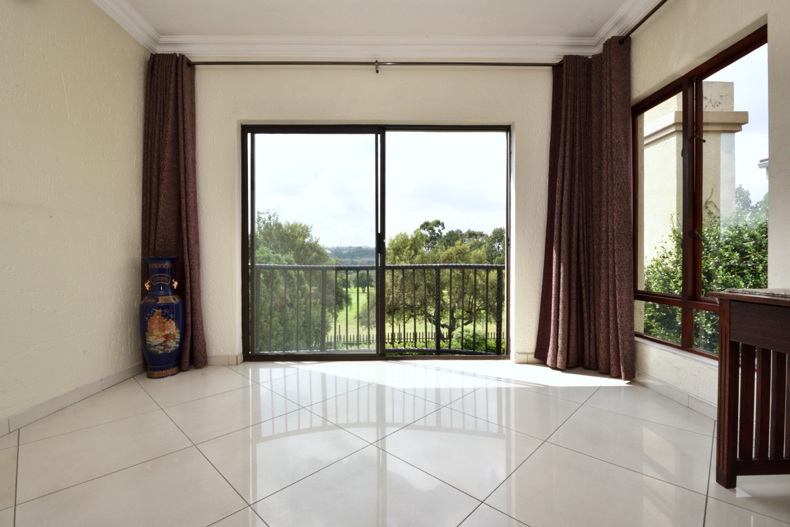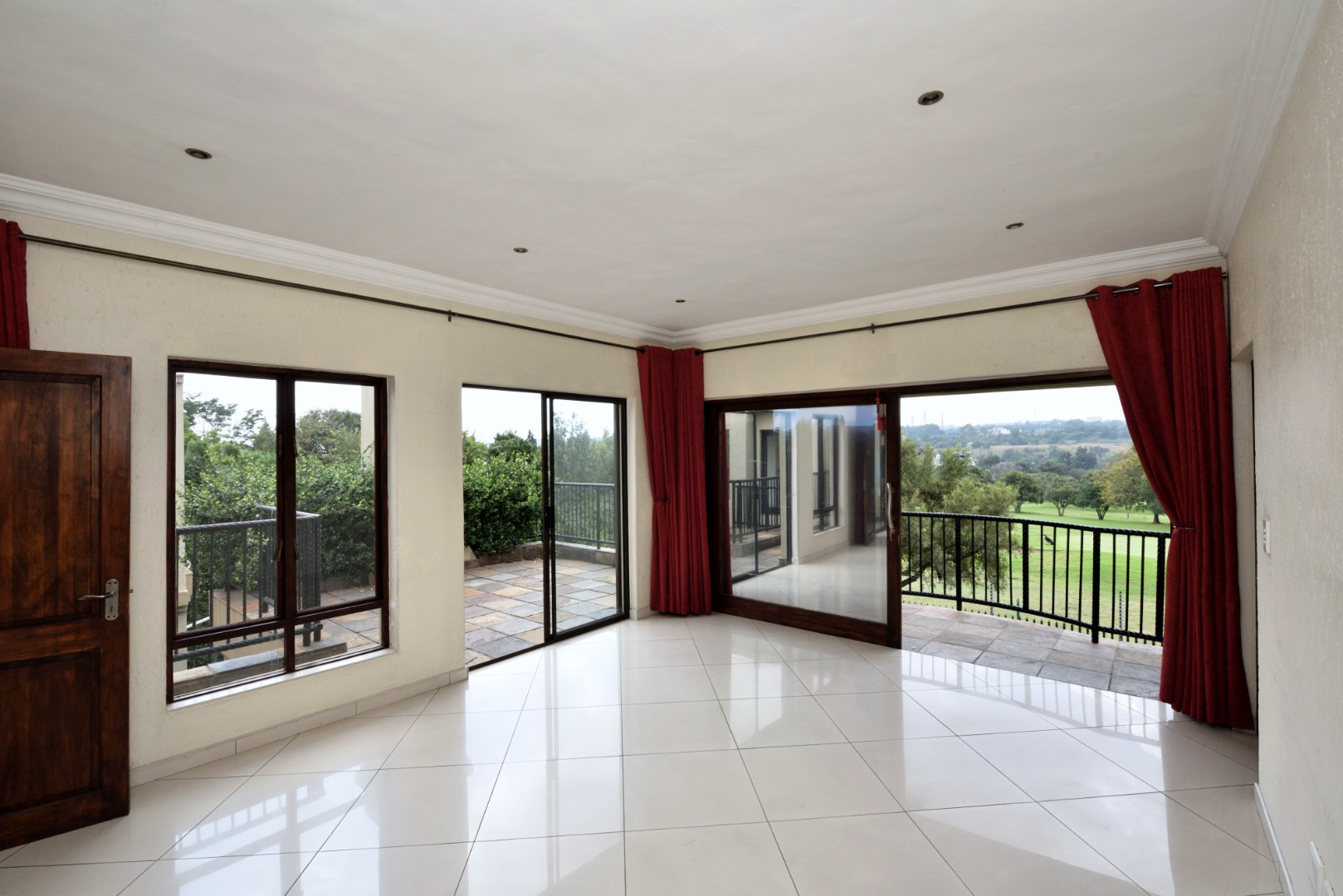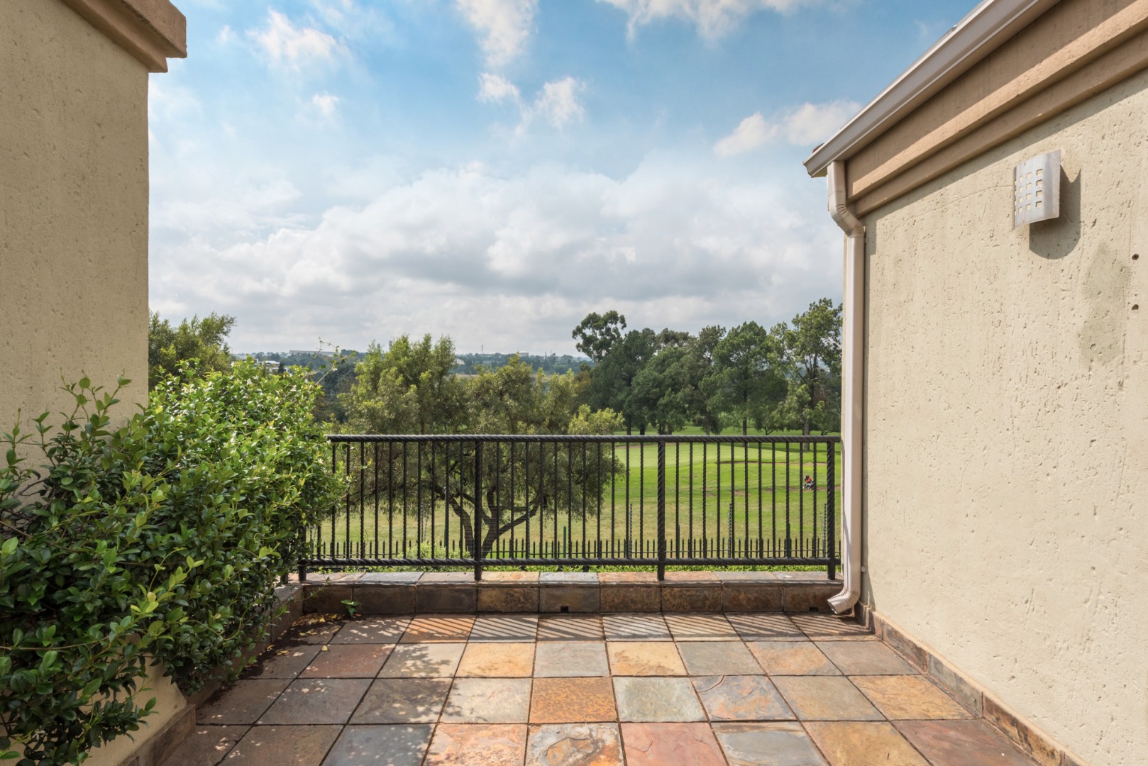 Upstairs, the home continues to impress with three well-appointed en suite bedrooms. The main suite is generously sized, featuring a full bathroom and breathtaking golf course views from its private balcony. The second bedroom also offers a shower en suite and its own Juliet balcony overlooking the golf course, while the third bedroom is serviced by a bathroom with a bath, toilet, and basin.