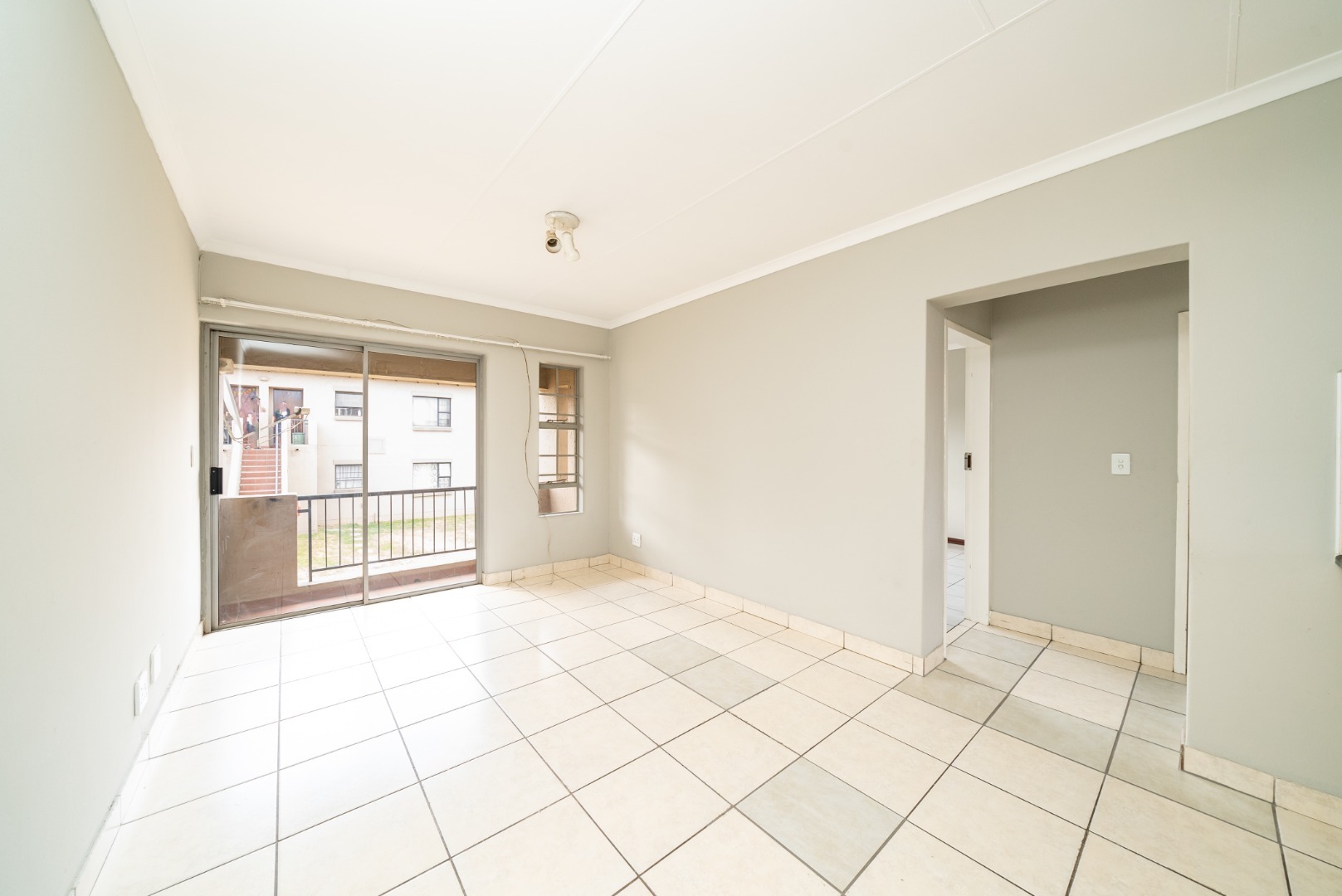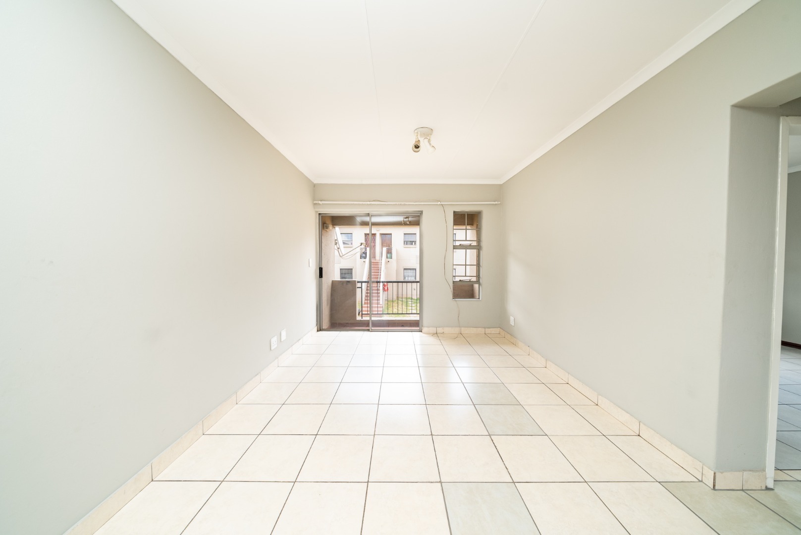 Step outside from the living area through a sliding glass door to an outdoor space, perfect for enjoying fresh air. The property includes one dedicated parking bay and benefits from a small garden area. Residents also enjoy the peace of mind that comes with living in a secure estate, featuring an access gate, well-maintained common areas, and perimeter security.