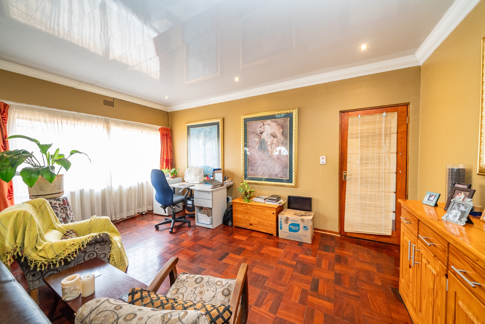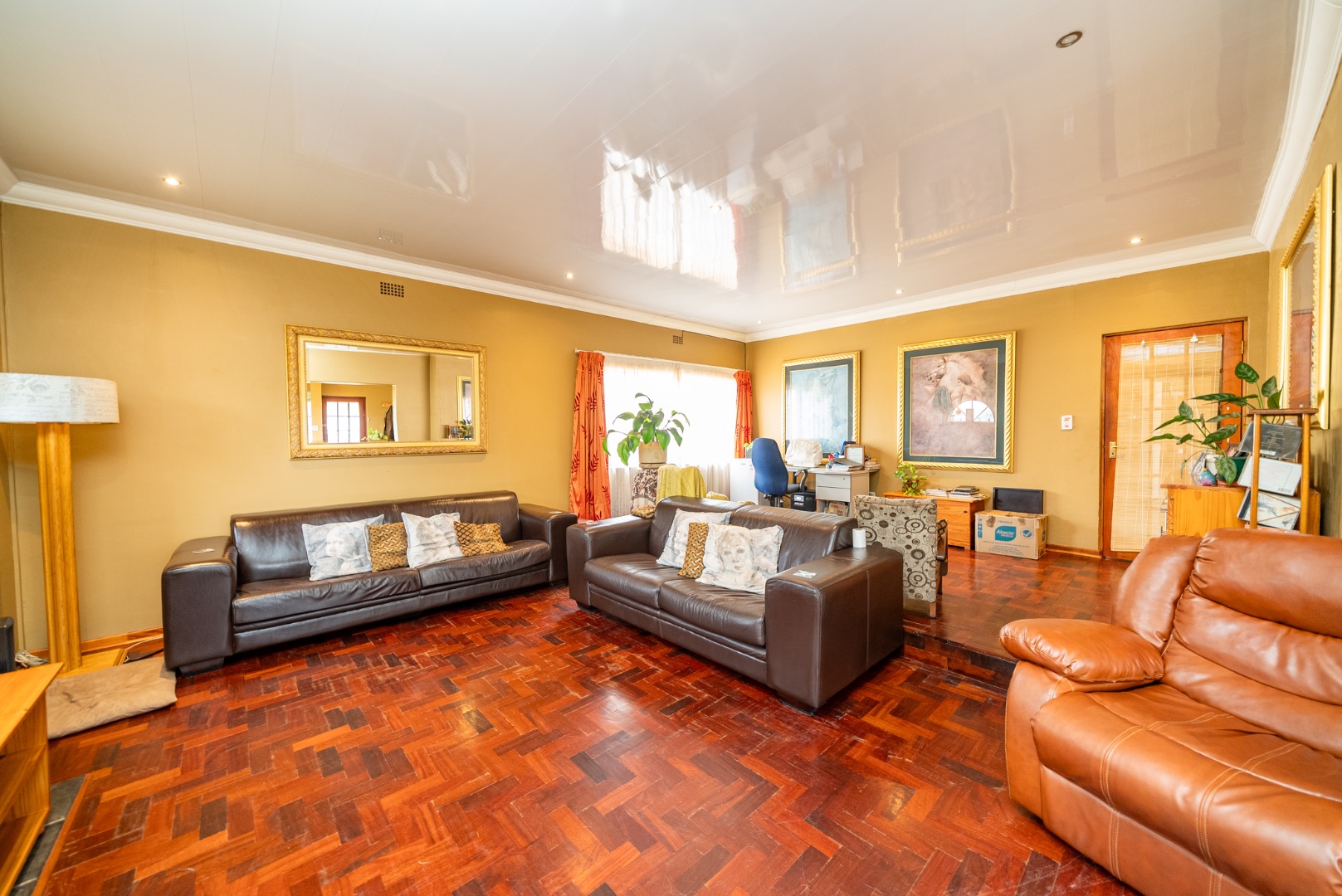 Nestled in the suburban tranquility of Germiston, this inviting residence offers comfortable living in a well-established neighbourhood. The property boasts excellent kerb appeal with a brick main house, well-maintained tiled roof, and an established garden. A spacious paved driveway leads to a large covered carport, providing ample parking for multiple vehicles. Step inside to discover a warm and inviting interior featuring characterful parquet flooring throughout the spacious lounge, dining room, and family TV room. The open-plan layout creates a seamless flow, complemented by ample natural light and recessed lighting. The functional kitchen is ready for your culinary endeavours. This home offers three comfortable bedrooms, providing private retreats for the family. There are two well-appointed bathrooms, including a convenient en-suite bathroom, ensuring comfort and privacy. Outside, the generous 730 sqm erf features a lush, well-maintained garden and paved areas, perfect for outdoor relaxation and entertaining. The property offers a private outdoor space with mature trees, enhancing its serene atmosphere. Security is enhanced with electric fencing and a totally walled perimeter, providing peace of mind. Security bars on windows offer an additional layer of protection. Key Features: * 3 Bedrooms, 2 Bathrooms (1 En-suite) * Spacious Lounge, Dining Room & Family TV Room * Characterful Parquet Flooring * Functional Kitchen * Established 730 sqm Garden * Paved Driveway & Covered Carport (2 Parkings) * Electric Fencing & Walled Perimeter * Suburban Germiston Location