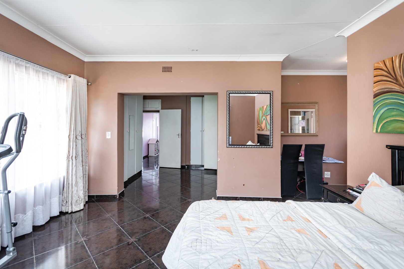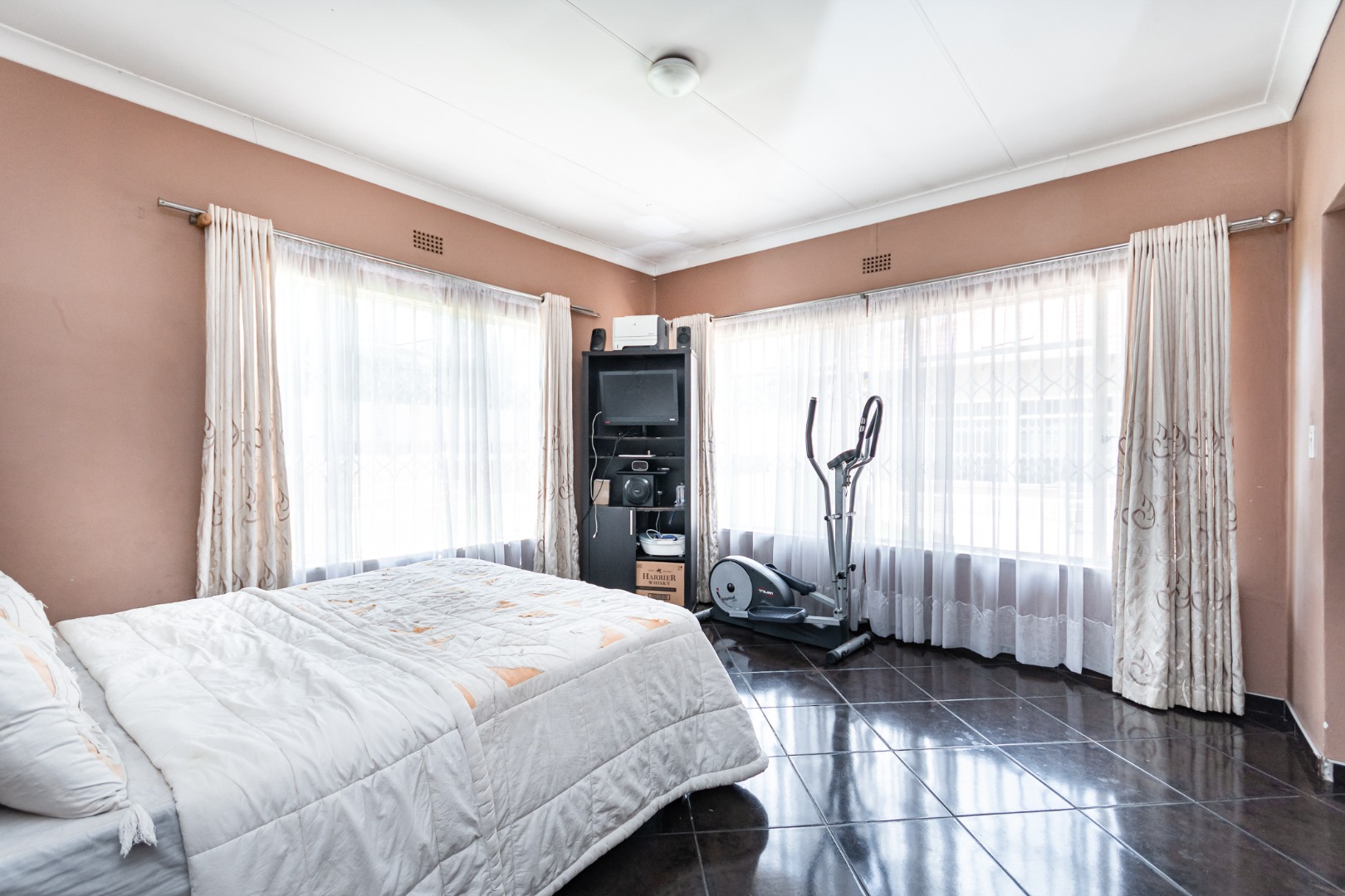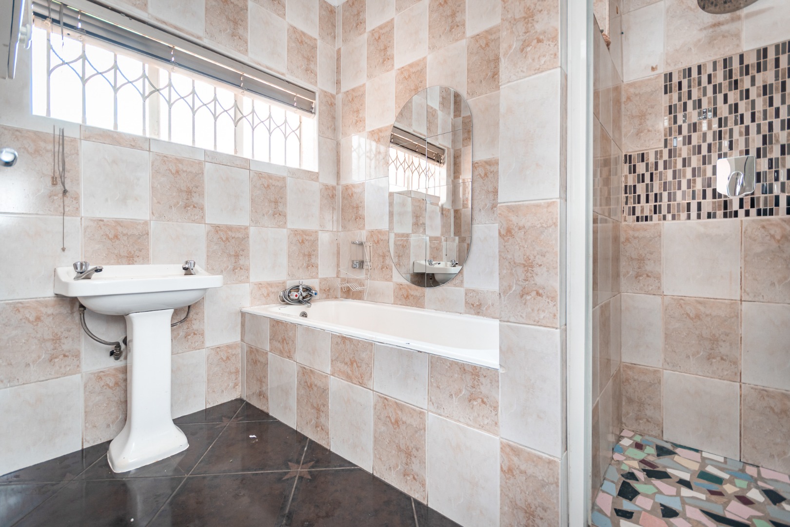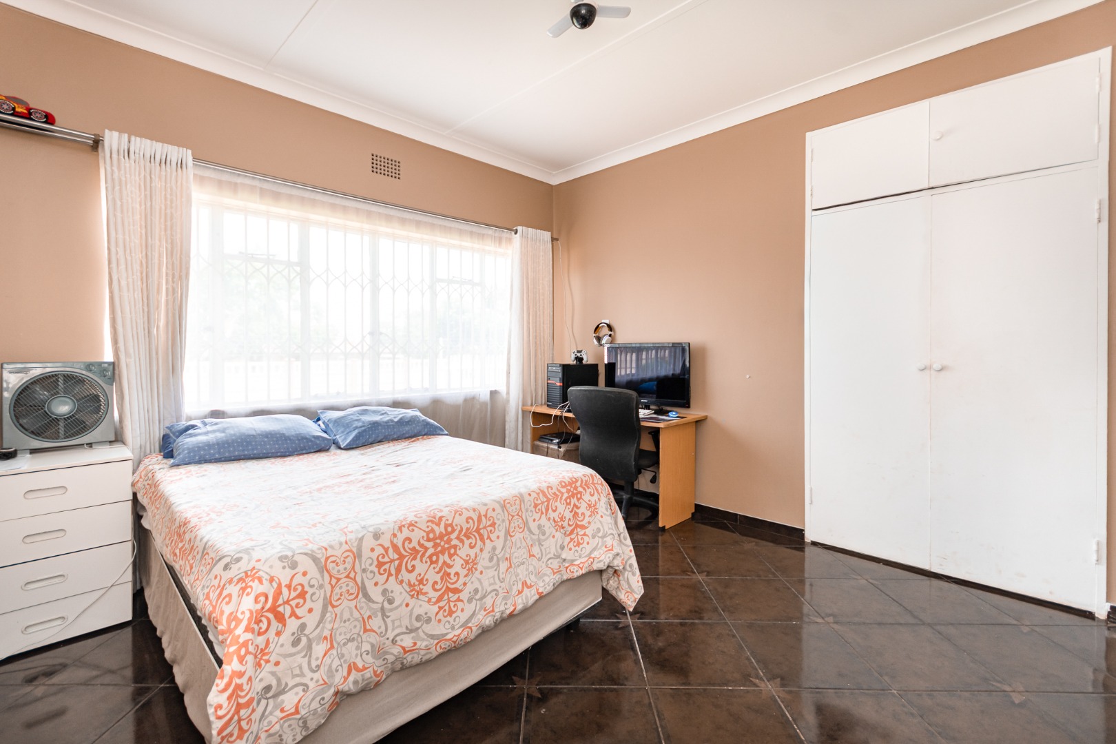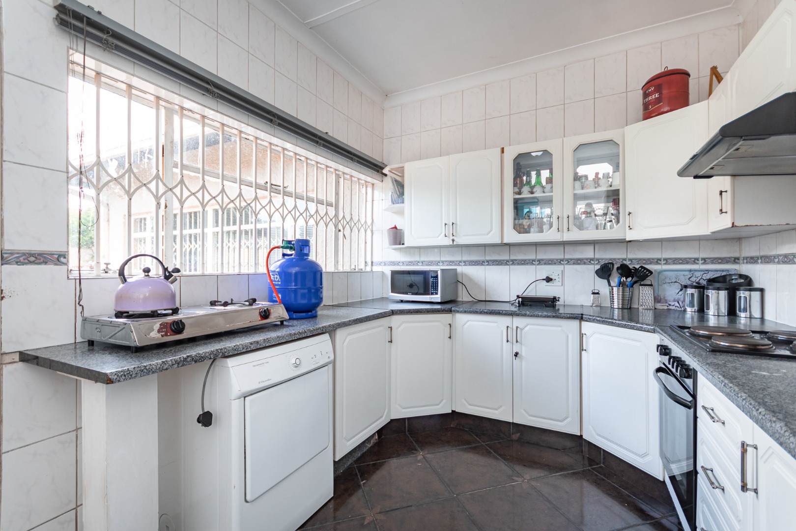 Discover this spacious family home located in the established suburban area of Lambton, Germiston. This property offers a comfortable and convenient lifestyle, ideal for families seeking ample living space and outdoor amenities. The single-story residence features a neat exterior, combining brick and stucco finishes under a classic terracotta-style tiled roof. A well-maintained front lawn and paved driveway contribute to its inviting curb appeal, while robust security gates and window bars provide enhanced peace of mind. Inside, the home boasts durable dark tiled flooring throughout its generous living areas. The main lounge is bathed in natural light from large windows and includes a dedicated office or study nook, perfect for remote work or a quiet retreat. The functional kitchen is equipped with white fitted cabinets, dark speckled countertops, an integrated oven, hob, and extractor fan, alongside tiled walls for easy maintenance and space for essential appliances. Accommodation comprises four comfortable bedrooms and two bathrooms, catering to family needs. One particularly large room features modern wood-look laminate flooring and abundant natural light, offering versatile use as a shared living space or a spacious studio. The expansive backyard is a true highlight, featuring a large kidney-shaped swimming pool with brick paving, perfect for recreation and relaxation. A thatched lapa provides an ideal outdoor entertainment area, set amidst a green lawn and mature trees. The property also includes a single garage and additional parking, with pets allowed. Key Features: * 4 Bedrooms, 2 Bathrooms * Spacious Living Area with Office Nook * Functional Kitchen with White Cabinetry * Large Backyard with Swimming Pool * Thatched Lapa for Outdoor Entertainment * Single Garage and Additional Parking * Durable Tiled Flooring * Security Gates and Window Bars * Erf Size: 991.00 sqm * Pet-Friendly