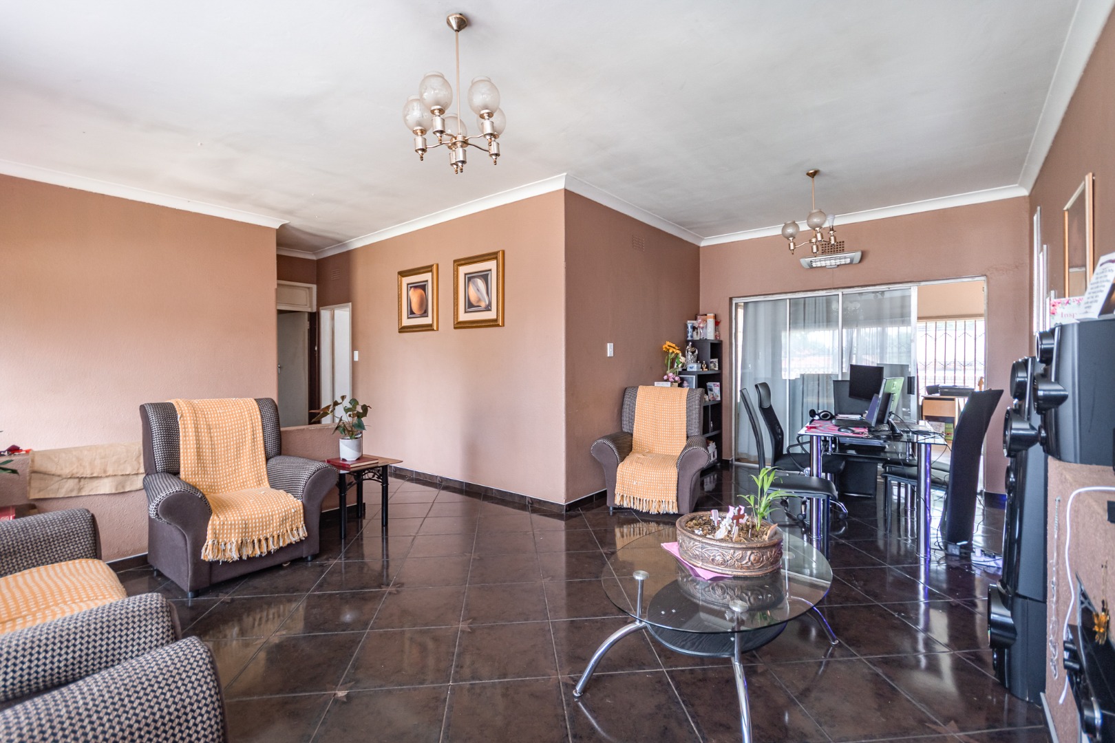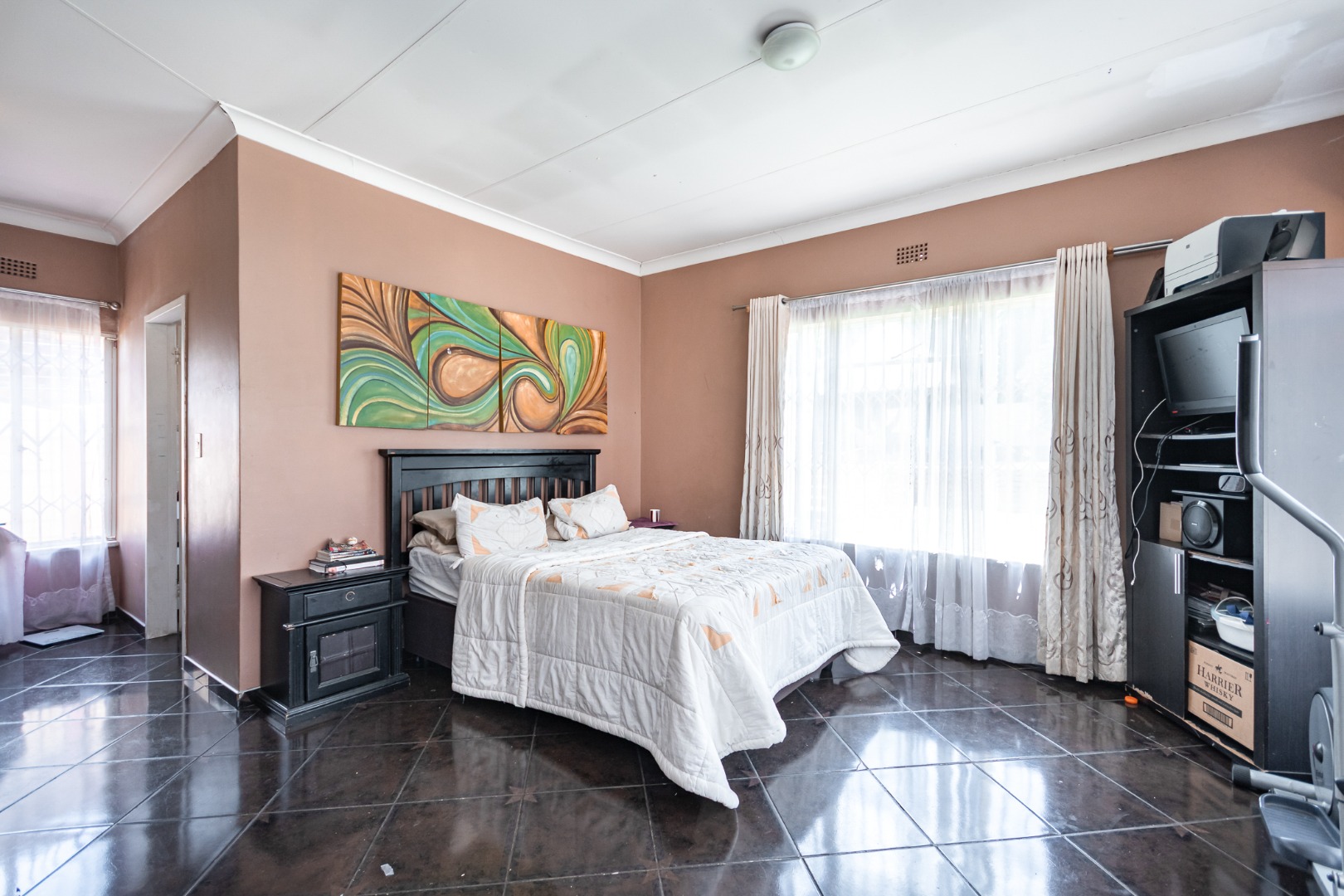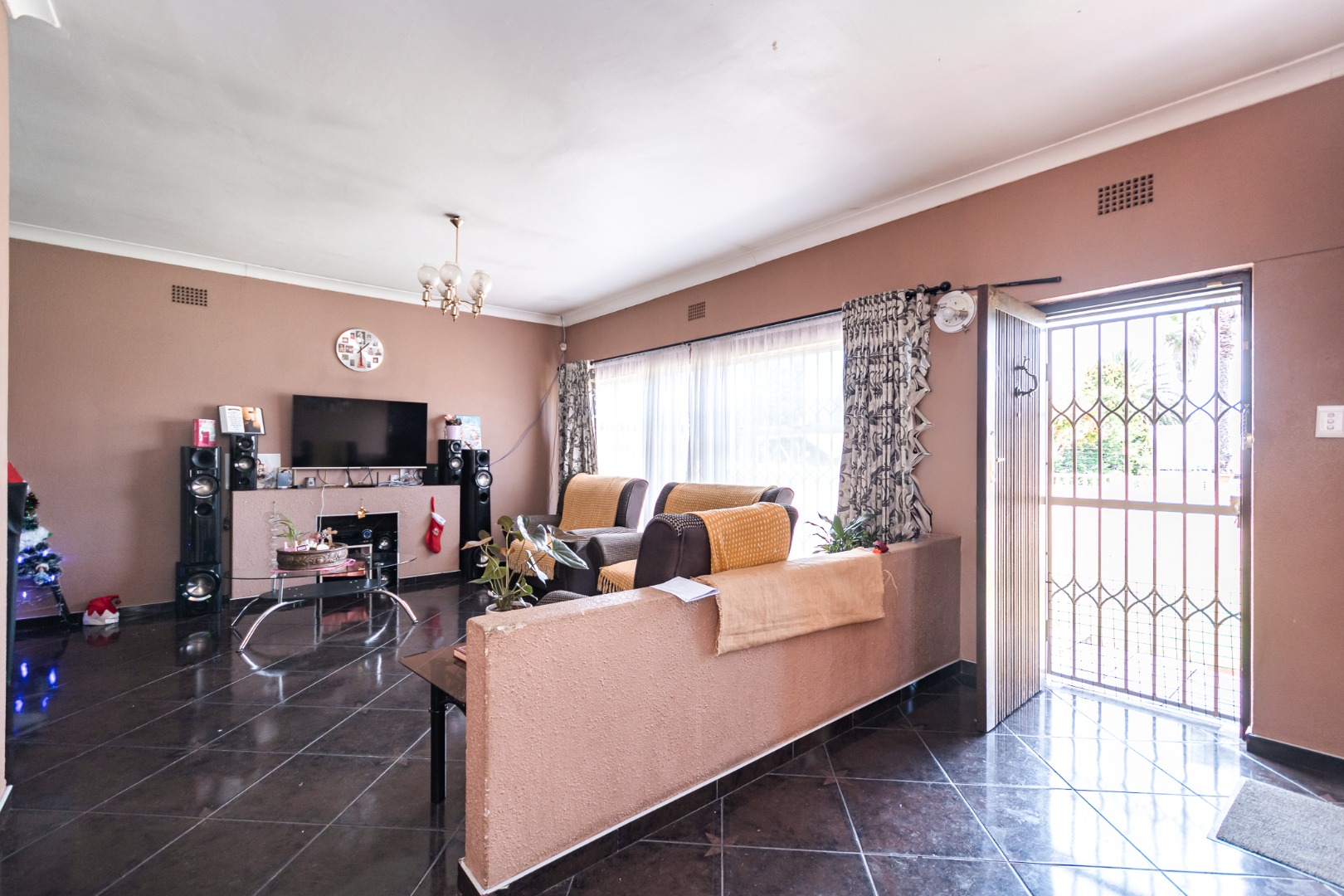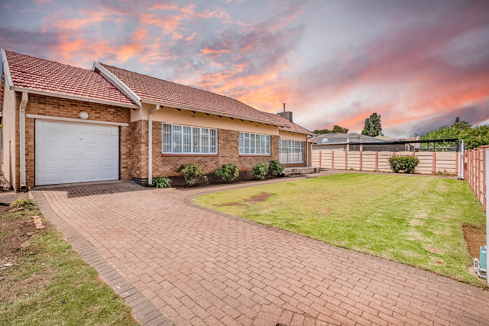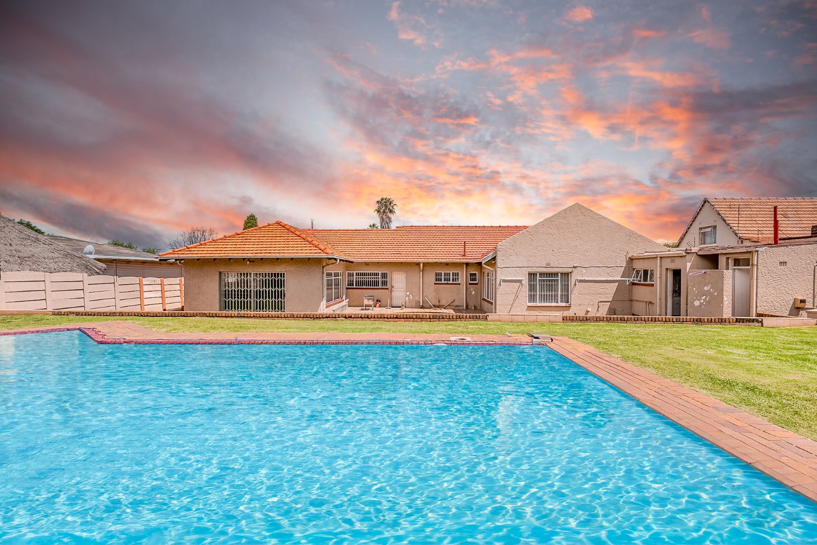 Discover this spacious family home located in the established suburban area of Lambton, Germiston. This property offers a comfortable and convenient lifestyle, ideal for families seeking ample living space and outdoor amenities. The single-story residence features a neat exterior, combining brick and stucco finishes under a classic terracotta-style tiled roof. A well-maintained front lawn and paved driveway contribute to its inviting curb appeal, while robust security gates and window bars provide enhanced peace of mind. Inside, the home boasts durable dark tiled flooring throughout its generous living areas. The main lounge is bathed in natural light from large windows and includes a dedicated office or study nook, perfect for remote work or a quiet retreat. The functional kitchen is equipped with white fitted cabinets, dark speckled countertops, an integrated oven, hob, and extractor fan, alongside tiled walls for easy maintenance and space for essential appliances. Accommodation comprises four comfortable bedrooms and two bathrooms, catering to family needs. One particularly large room features modern wood-look laminate flooring and abundant natural light, offering versatile use as a shared living space or a spacious studio. The expansive backyard is a true highlight, featuring a large kidney-shaped swimming pool with brick paving, perfect for recreation and relaxation. A thatched lapa provides an ideal outdoor entertainment area, set amidst a green lawn and mature trees. The property also includes a single garage and additional parking, with pets allowed. Key Features: * 4 Bedrooms, 2 Bathrooms * Spacious Living Area with Office Nook * Functional Kitchen with White Cabinetry * Large Backyard with Swimming Pool * Thatched Lapa for Outdoor Entertainment * Single Garage and Additional Parking * Durable Tiled Flooring * Security Gates and Window Bars * Erf Size: 991.00 sqm * Pet-Friendly