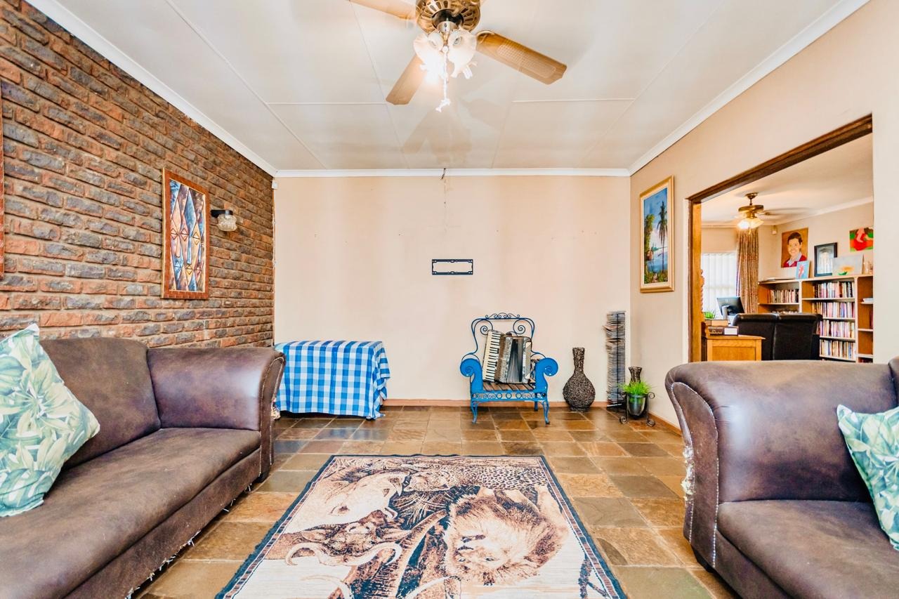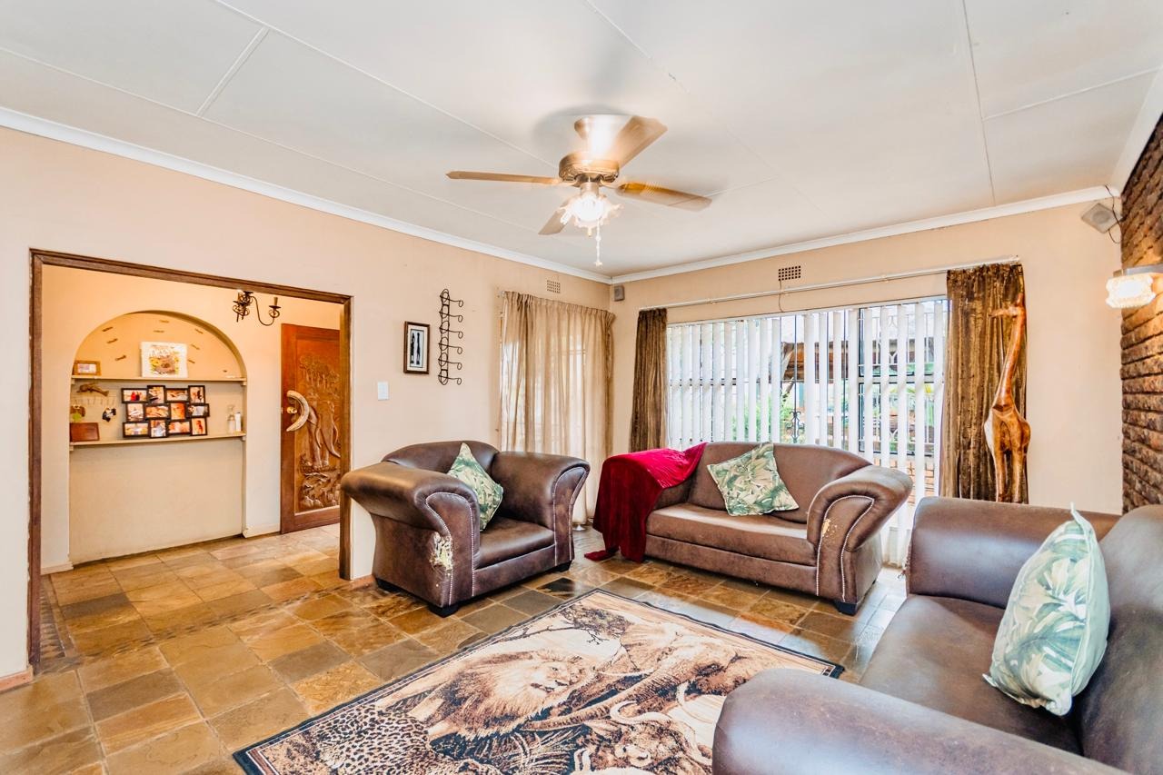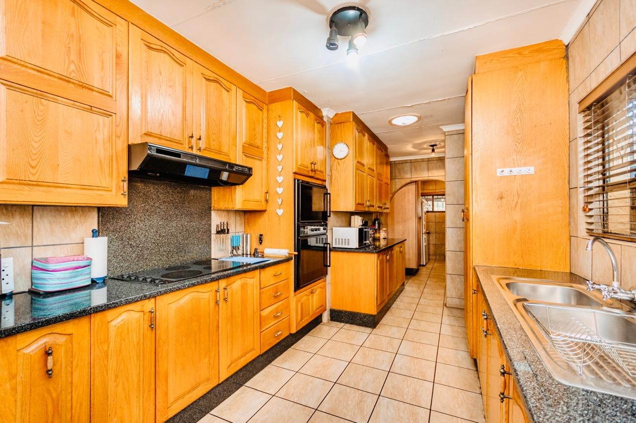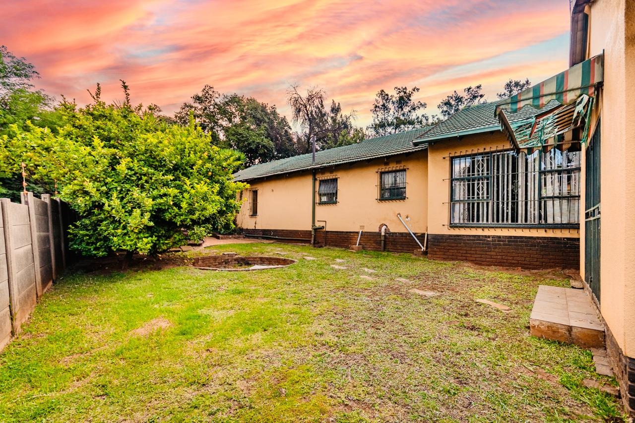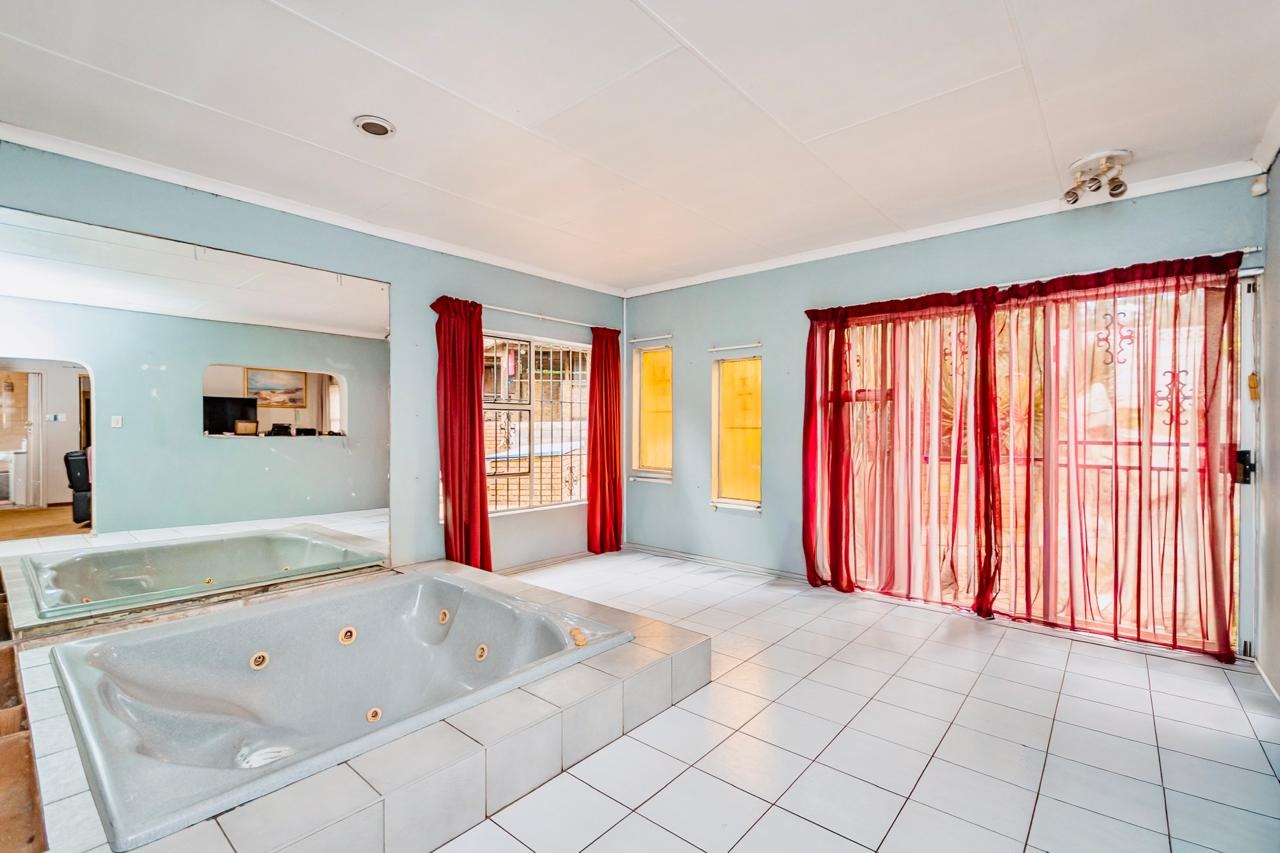Step outside to a private swimming pool with a charming rock accent, perfect for enjoying South African summers. The expansive backyard is complemented by mature trees and landscaping, creating a serene environment. A tiled patio and walkway surround the pool, ideal for outdoor gatherings. Additional outdoor amenities include 3 lapa, a well-maintained garden, and ample parking with two garages and six carports.