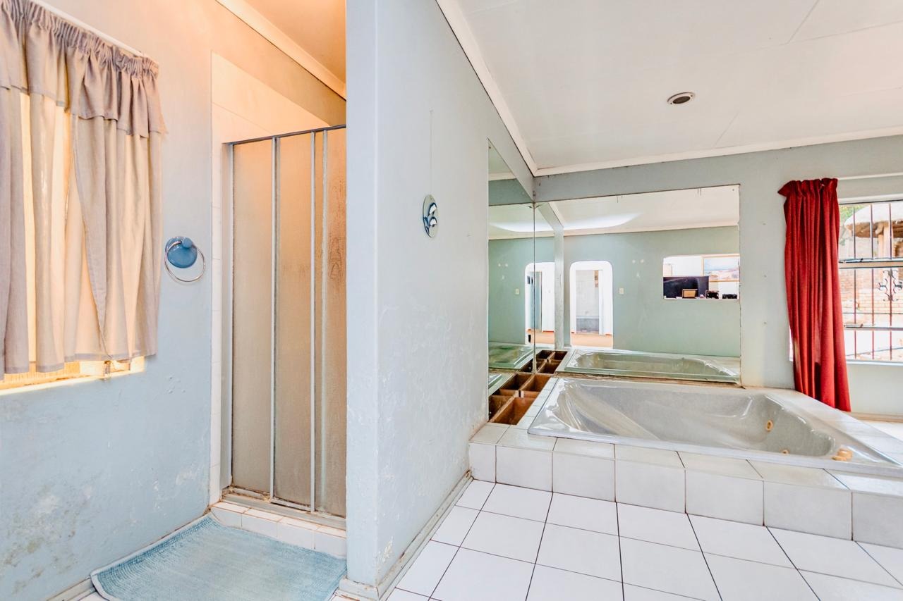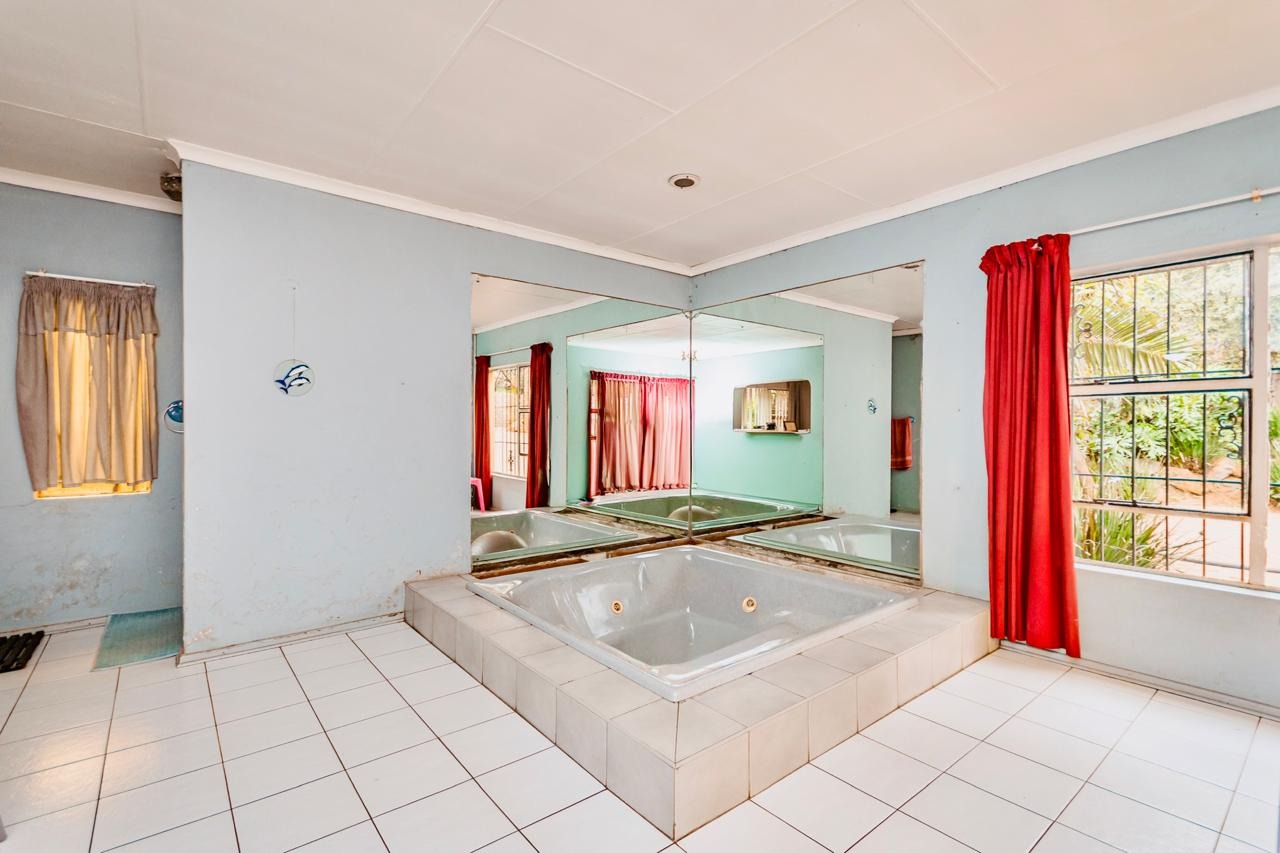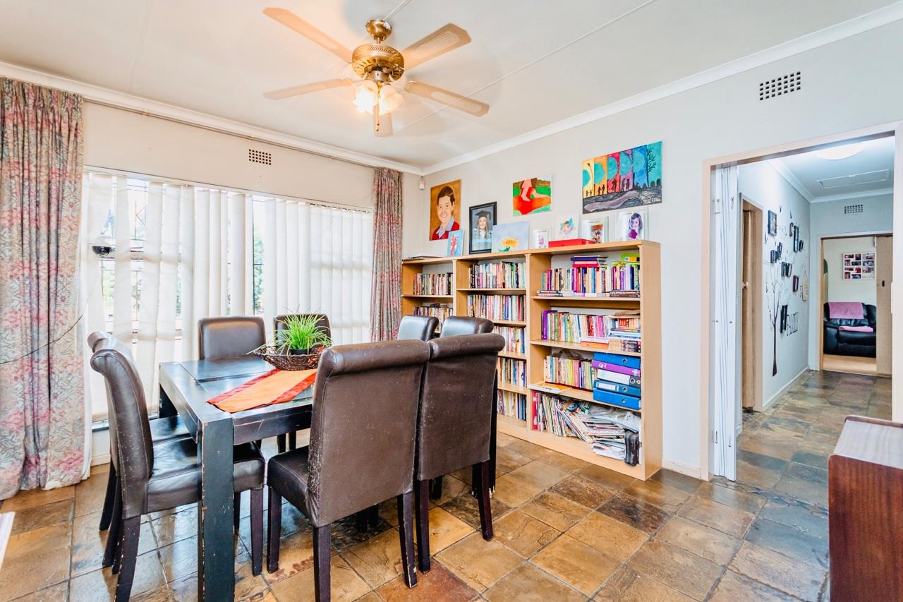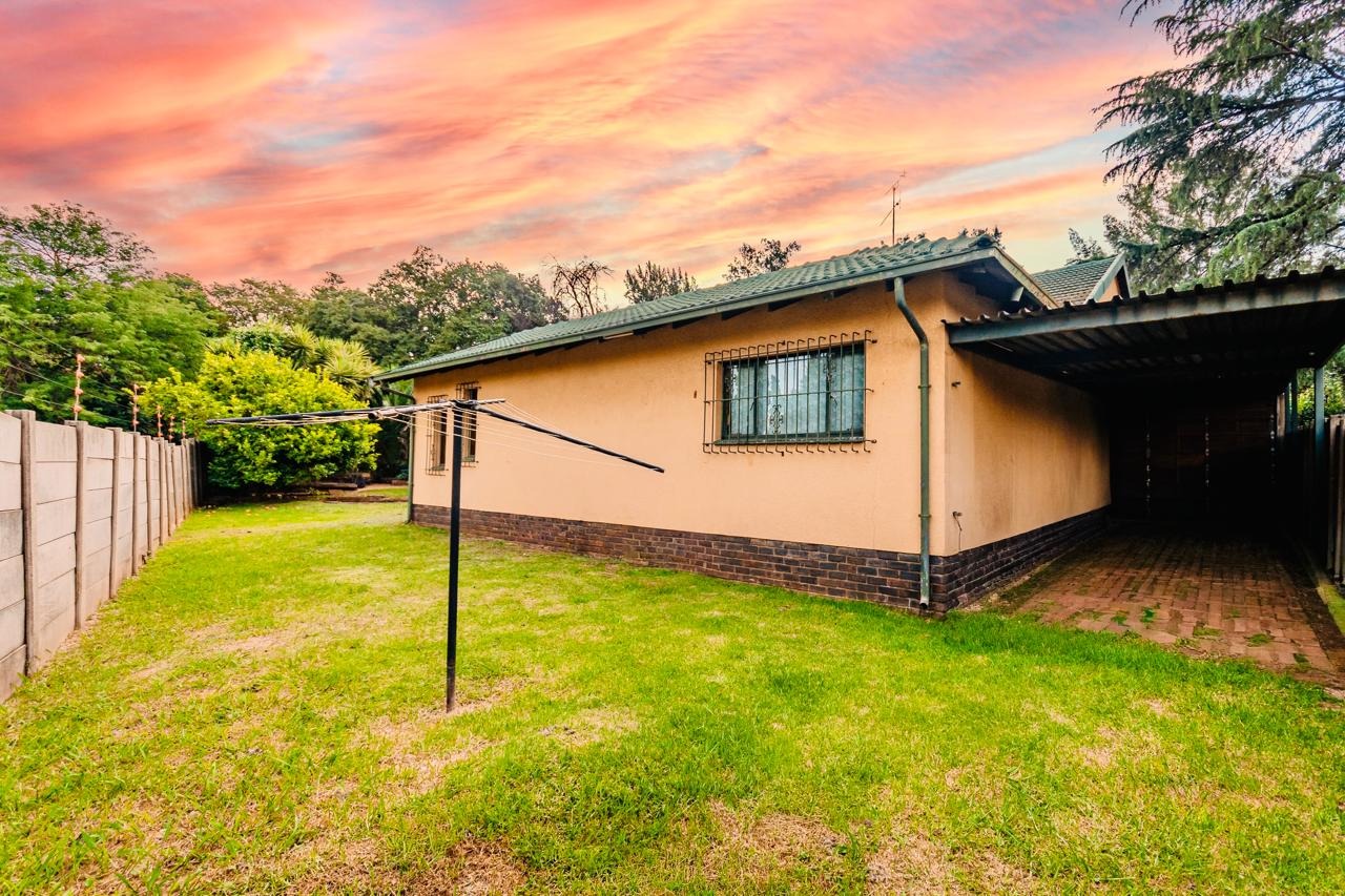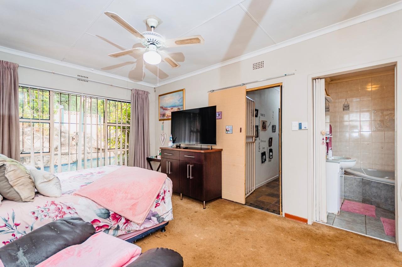 Step outside to a private swimming pool with a charming rock accent, perfect for enjoying South African summers. The expansive backyard is complemented by mature trees and landscaping, creating a serene environment. A tiled patio and walkway surround the pool, ideal for outdoor gatherings. Additional outdoor amenities include 3 lapa, a well-maintained garden, and ample parking with two garages and six carports.