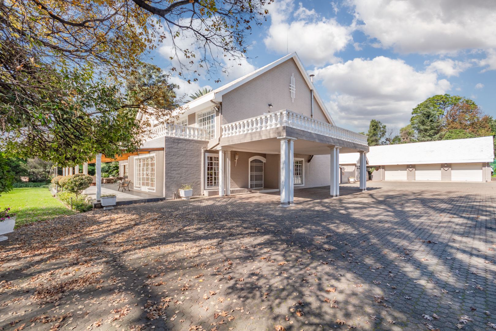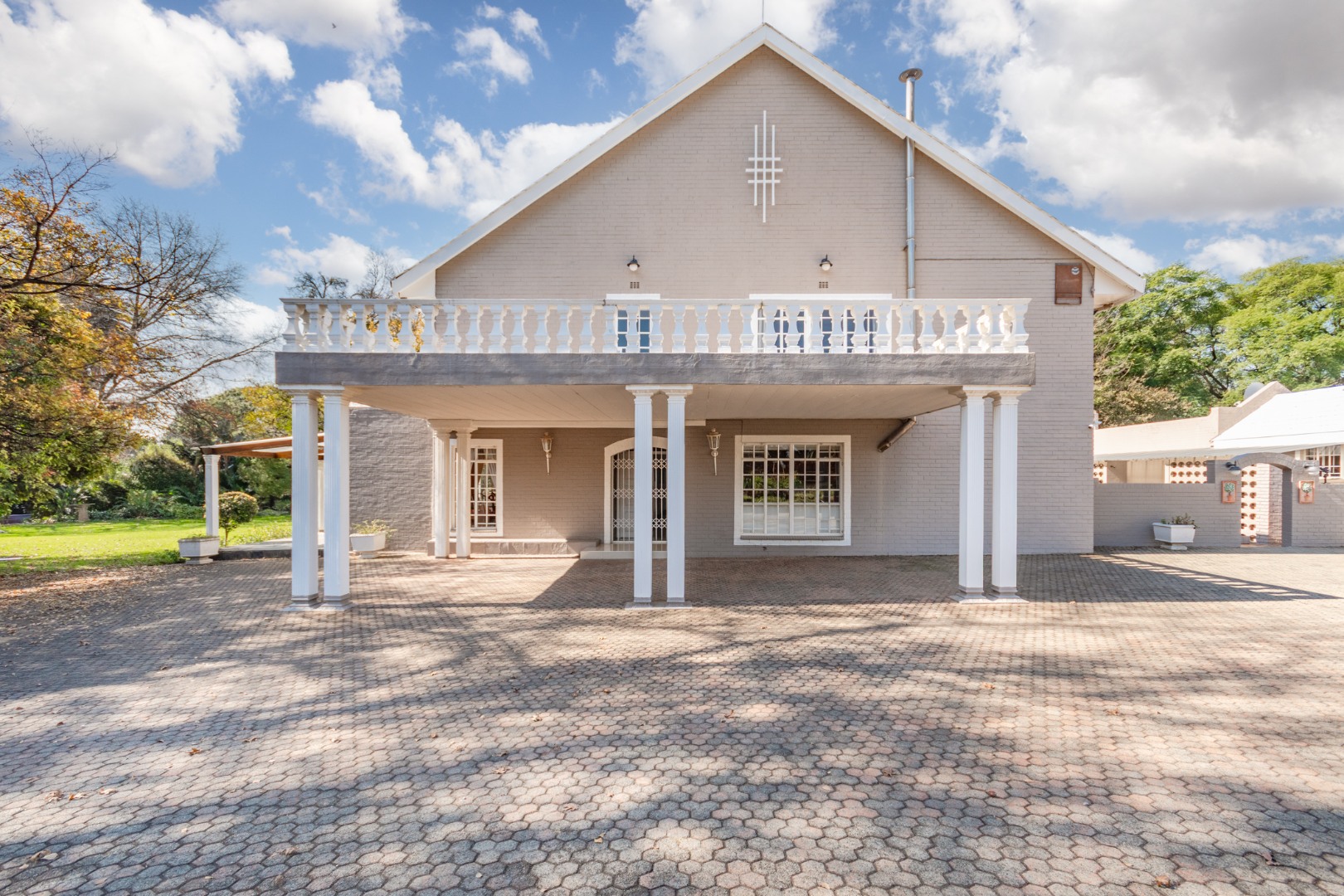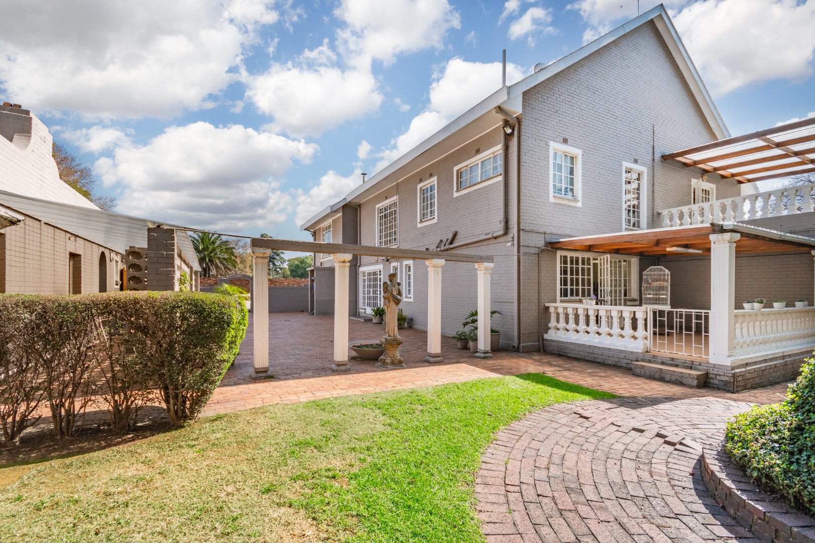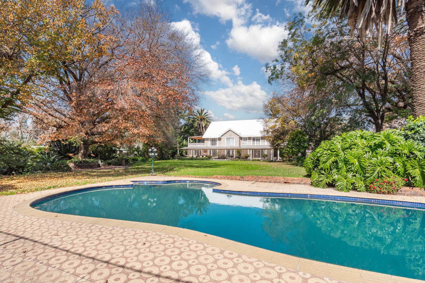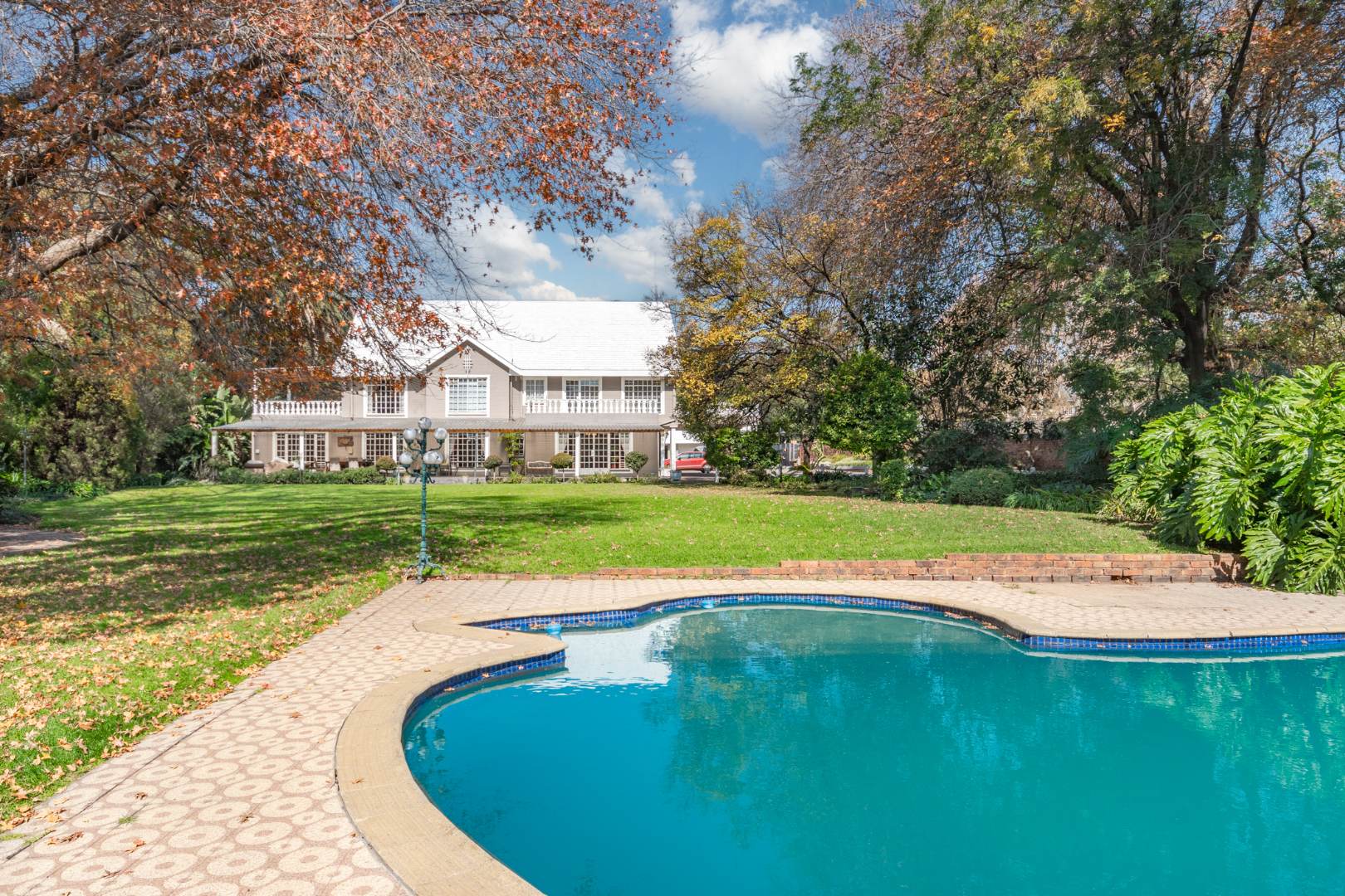 Discover this expansive two-story residence nestled on a generous 7000 sqm erf in the established suburban area of Lambton, Germiston. Presenting a classic design, the property boasts a well-maintained exterior with a shaded ground-floor veranda and inviting upstairs balconies, all set amidst lush, mature landscaping that ensures privacy and aesthetic appeal. The large, green lawn and garden create a serene outdoor environment, perfect for relaxation and family activities. Step inside to find multiple reception areas designed for both formal entertaining and comfortable family living. The interior features bright, clean tiled flooring throughout, complemented by elegant ceiling molding and decorative light fixtures. A formal dining room, spacious living areas, and a dedicated family TV room provide versatile spaces. The home also includes a sophisticated study or library, complete with extensive custom-built wooden cabinetry and an ornate coffered ceiling, offering an ideal space for work or quiet contemplation. A notable highlight is the custom-built wooden bar, perfect for hosting guests. Accommodation comprises six generously sized bedrooms and four bathrooms, providing ample space for a large family or guests. Practical amenities include three garages and six additional parking spaces, ensuring convenience for multiple vehicles. The property further enhances a desirable lifestyle with a private swimming pool and a dedicated gym, catering to health and wellness needs. Outdoor living is a key feature, with the large garden and scenic views. The property benefits from a borehole, contributing to water resilience, and is totally walled for enhanced security. This substantial home offers a blend of traditional charm and spacious living in a sought-after location. Lambton, Germiston, offers a well-connected suburban lifestyle with convenient access to local amenities and transport routes. It provides a peaceful residential setting while remaining close to urban conveniences.