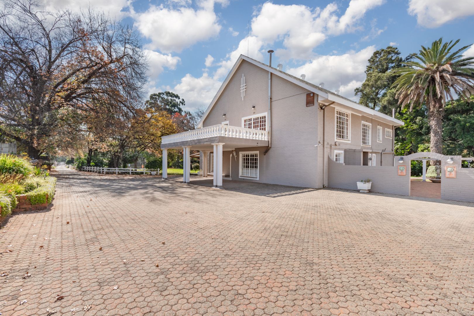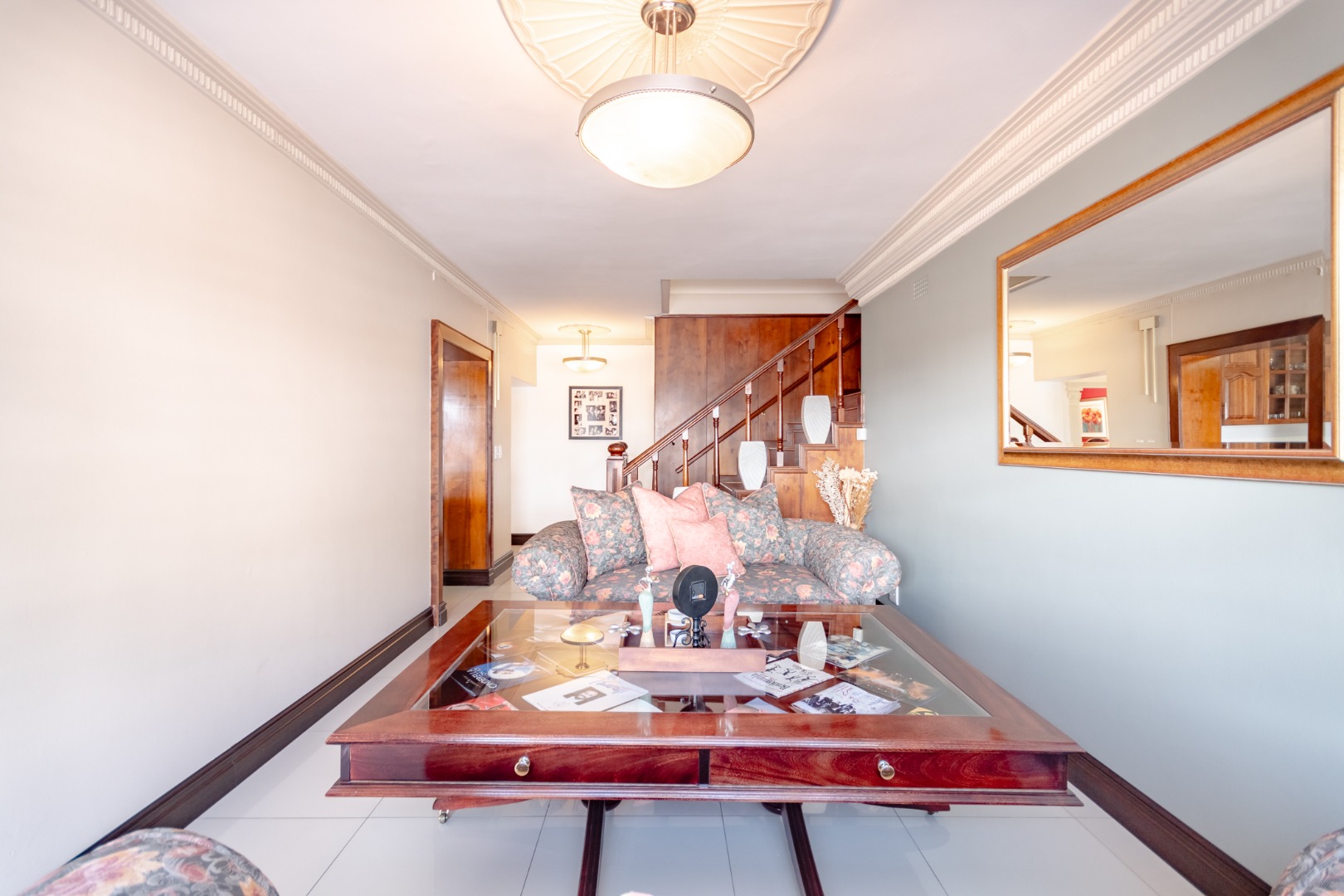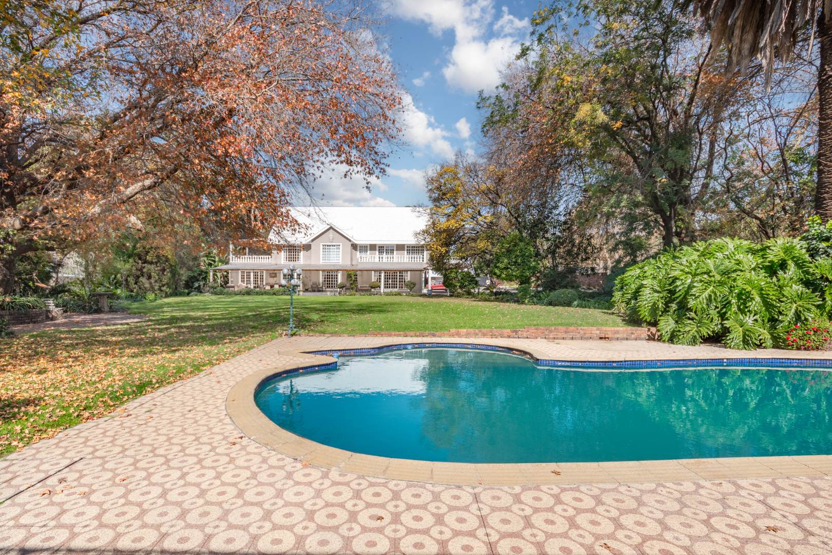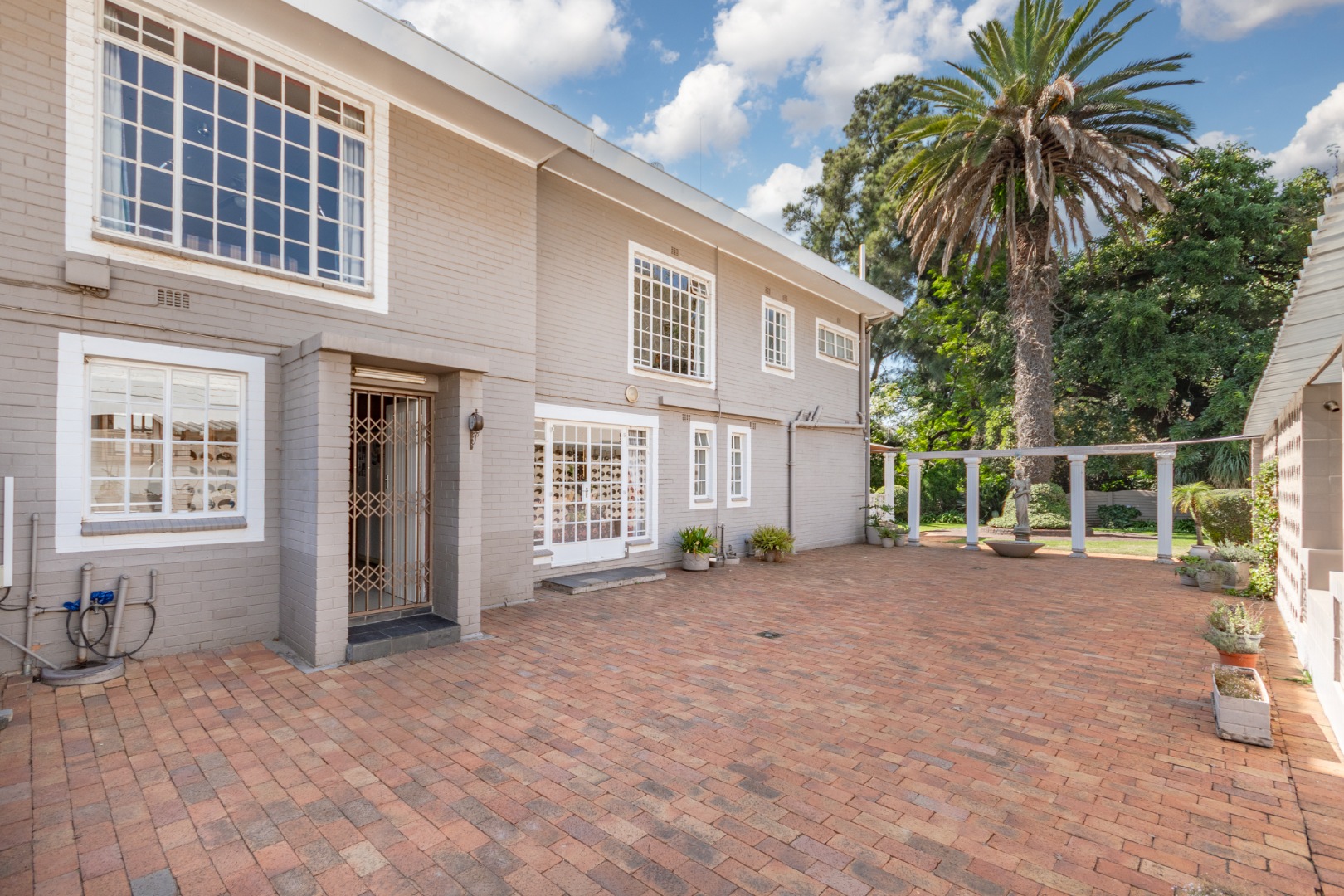 Discover this expansive two-story residence nestled on a generous 7000 sqm erf in the established suburban area of Lambton, Germiston. Presenting a classic design, the property boasts a well-maintained exterior with a shaded ground-floor veranda and inviting upstairs balconies, all set amidst lush, mature landscaping that ensures privacy and aesthetic appeal. The large, green lawn and garden create a serene outdoor environment, perfect for relaxation and family activities. Step inside to find multiple reception areas designed for both formal entertaining and comfortable family living. The interior features bright, clean tiled flooring throughout, complemented by elegant ceiling molding and decorative light fixtures. A formal dining room, spacious living areas, and a dedicated family TV room provide versatile spaces. The home also includes a sophisticated study or library, complete with extensive custom-built wooden cabinetry and an ornate coffered ceiling, offering an ideal space for work or quiet contemplation. A notable highlight is the custom-built wooden bar, perfect for hosting guests. Accommodation comprises six generously sized bedrooms and four bathrooms, providing ample space for a large family or guests. Practical amenities include three garages and six additional parking spaces, ensuring convenience for multiple vehicles. The property further enhances a desirable lifestyle with a private swimming pool and a dedicated gym, catering to health and wellness needs. Outdoor living is a key feature, with the large garden and scenic views. The property benefits from a borehole, contributing to water resilience, and is totally walled for enhanced security. This substantial home offers a blend of traditional charm and spacious living in a sought-after location. Lambton, Germiston, offers a well-connected suburban lifestyle with convenient access to local amenities and transport routes. It provides a peaceful residential setting while remaining close to urban conveniences.