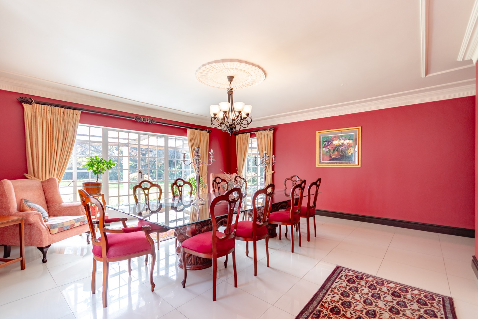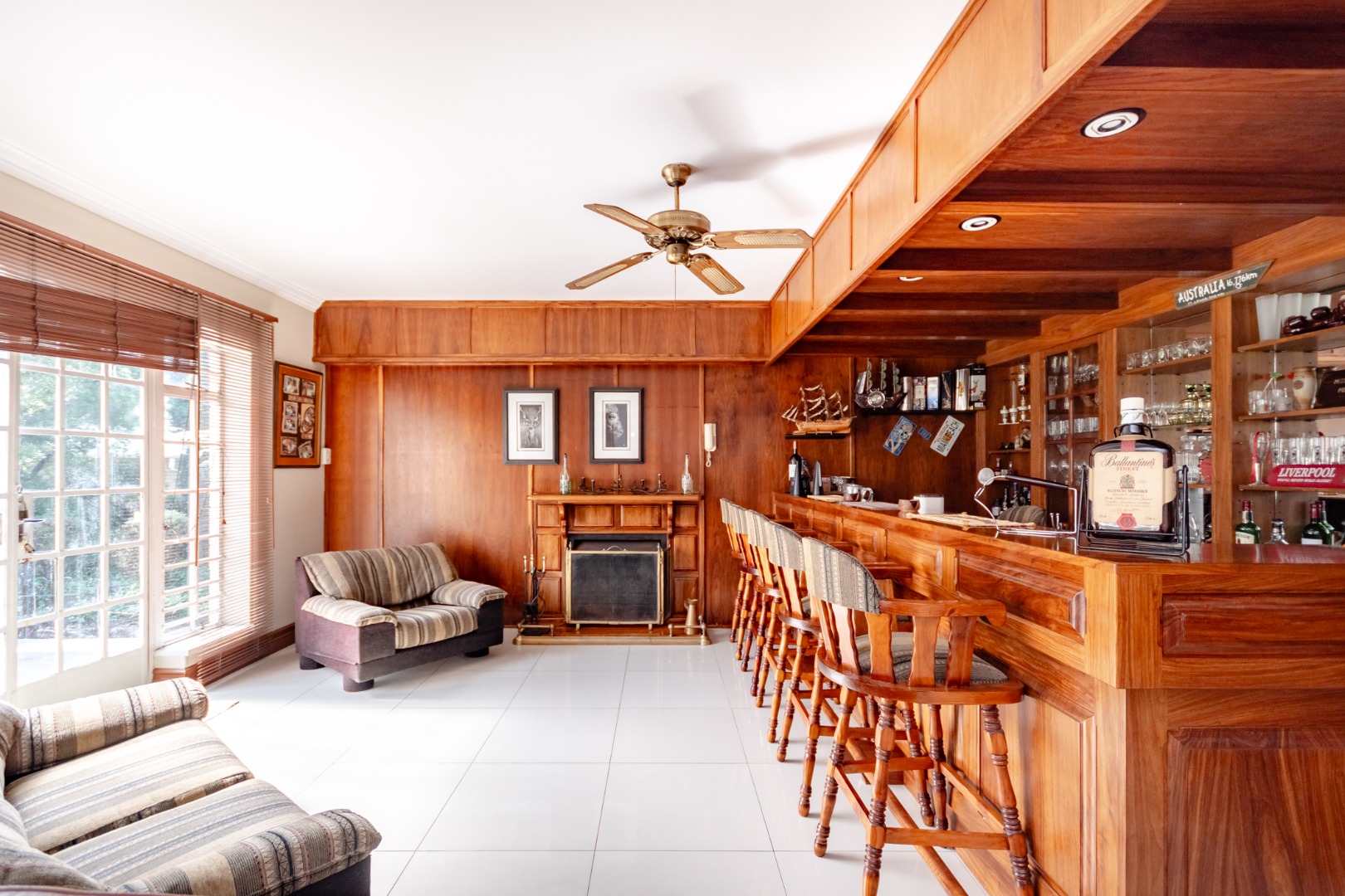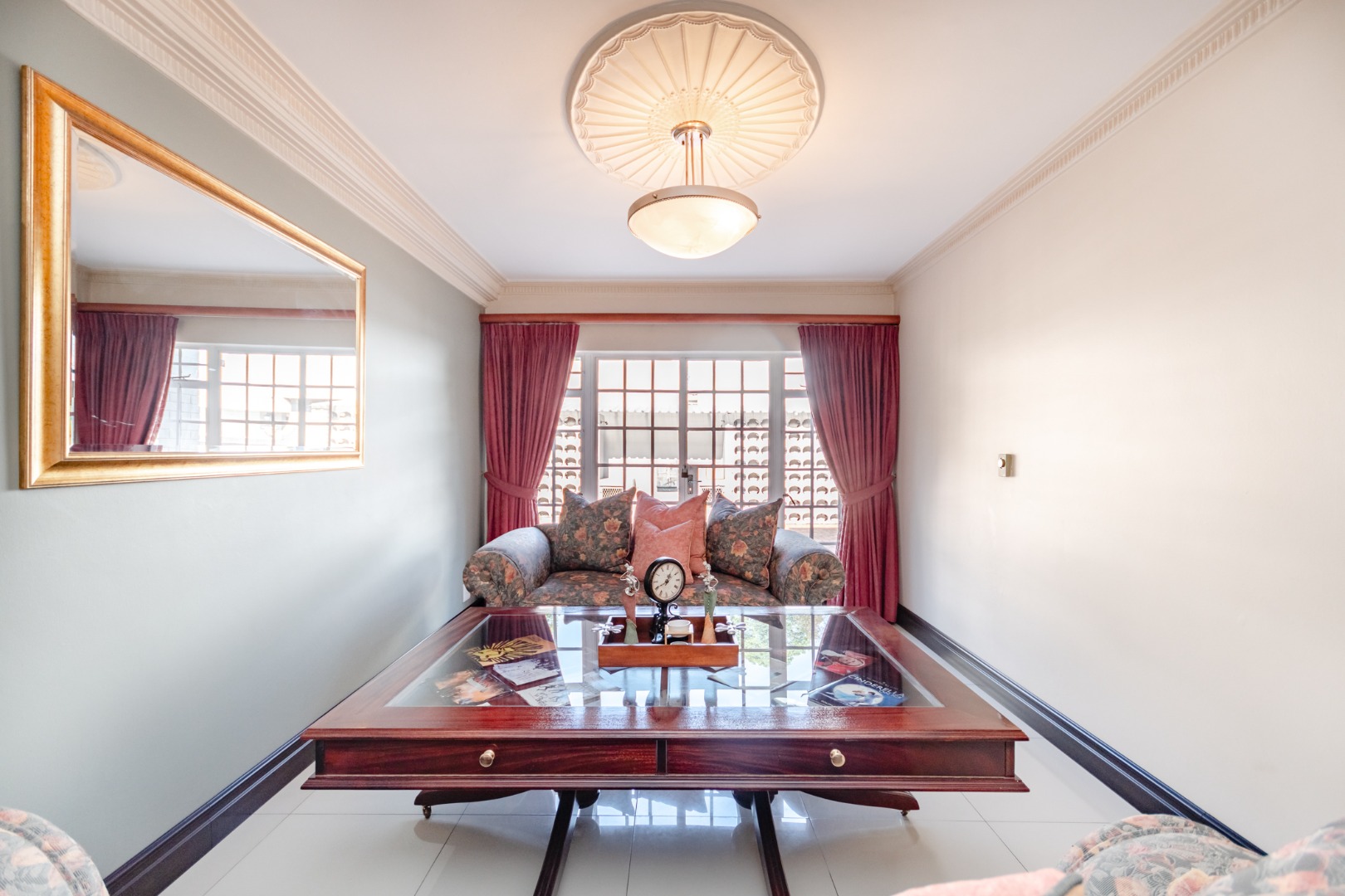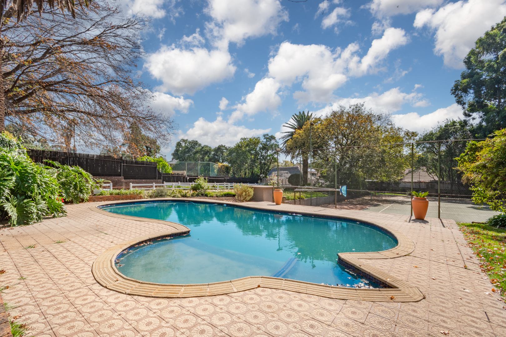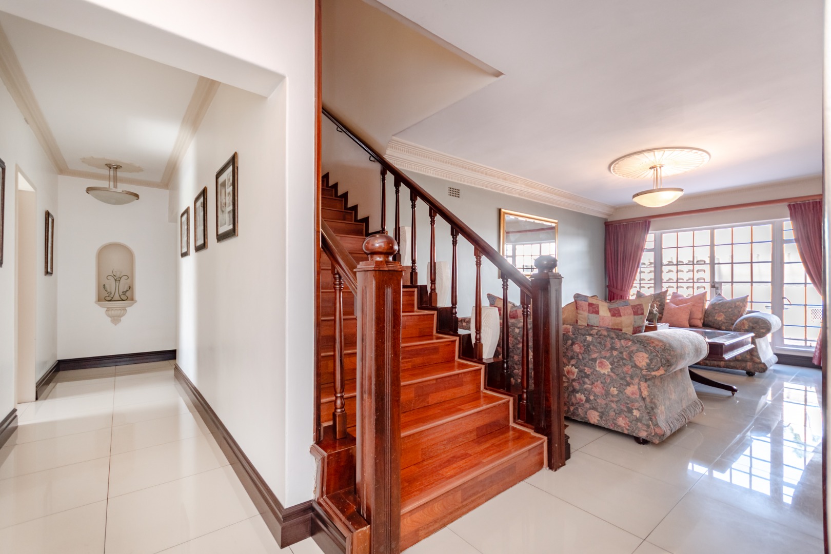Discover this expansive two-story residence nestled on a generous 7000 sqm erf in the established suburban area of Lambton, Germiston. Presenting a classic design, the property boasts a well-maintained exterior with a shaded ground-floor veranda and inviting upstairs balconies, all set amidst lush, mature landscaping that ensures privacy and aesthetic appeal. The large, green lawn and garden create a serene outdoor environment, perfect for relaxation and family activities. Step inside to find multiple reception areas designed for both formal entertaining and comfortable family living. The interior features bright, clean tiled flooring throughout, complemented by elegant ceiling molding and decorative light fixtures. A formal dining room, spacious living areas, and a dedicated family TV room provide versatile spaces. The home also includes a sophisticated study or library, complete with extensive custom-built wooden cabinetry and an ornate coffered ceiling, offering an ideal space for work or quiet contemplation. A notable highlight is the custom-built wooden bar, perfect for hosting guests. Accommodation comprises six generously sized bedrooms and four bathrooms, providing ample space for a large family or guests. Practical amenities include three garages and six additional parking spaces, ensuring convenience for multiple vehicles. The property further enhances a desirable lifestyle with a private swimming pool and a dedicated gym, catering to health and wellness needs. Outdoor living is a key feature, with the large garden and scenic views. The property benefits from a borehole, contributing to water resilience, and is totally walled for enhanced security. This substantial home offers a blend of traditional charm and spacious living in a sought-after location. Lambton, Germiston, offers a well-connected suburban lifestyle with convenient access to local amenities and transport routes. It provides a peaceful residential setting while remaining close to urban conveniences.