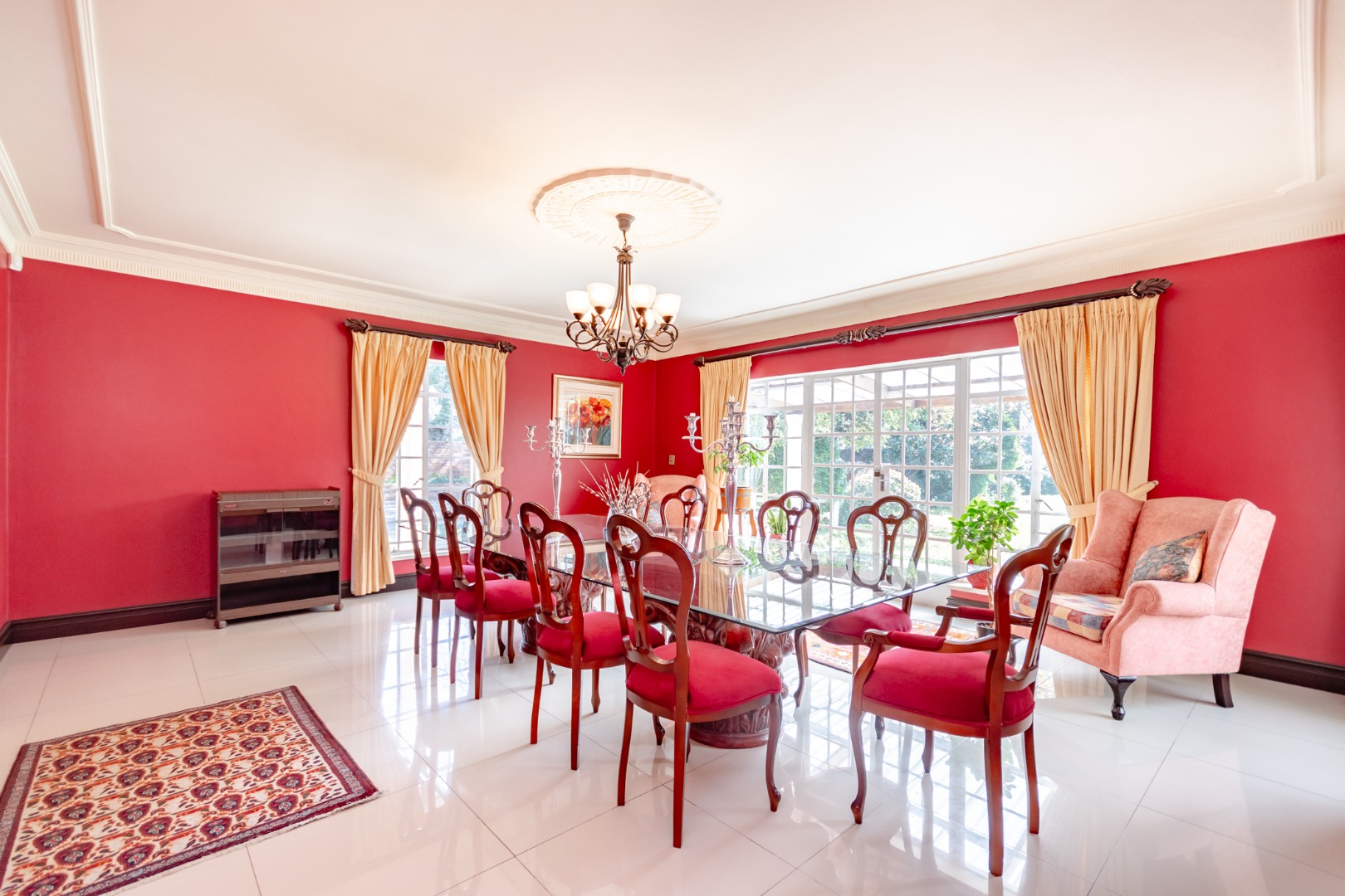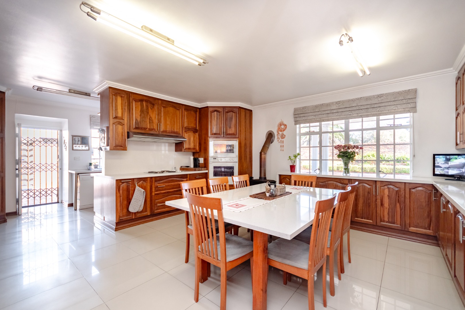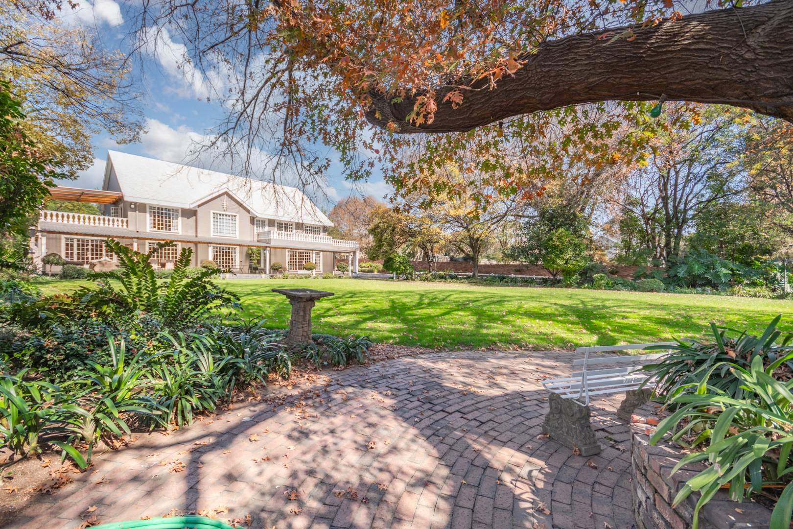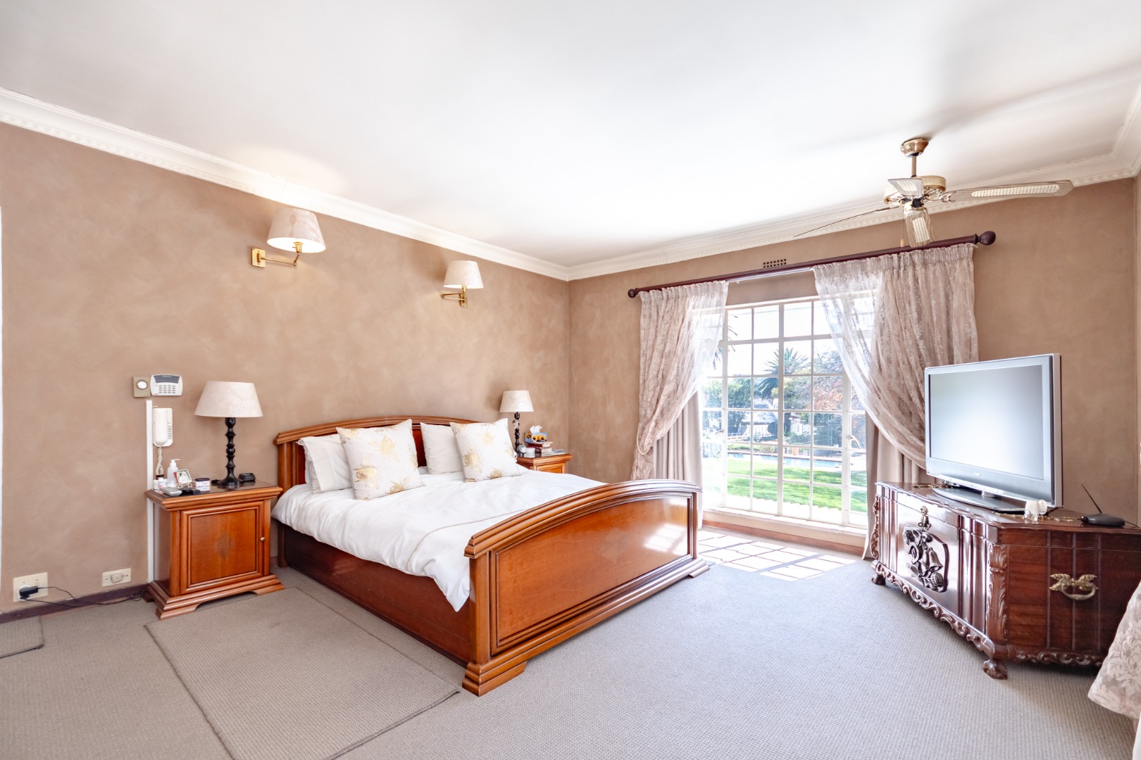 Discover this expansive two-story residence nestled on a generous 7000 sqm erf in the established suburban area of Lambton, Germiston. Presenting a classic design, the property boasts a well-maintained exterior with a shaded ground-floor veranda and inviting upstairs balconies, all set amidst lush, mature landscaping that ensures privacy and aesthetic appeal. The large, green lawn and garden create a serene outdoor environment, perfect for relaxation and family activities. Step inside to find multiple reception areas designed for both formal entertaining and comfortable family living. The interior features bright, clean tiled flooring throughout, complemented by elegant ceiling molding and decorative light fixtures. A formal dining room, spacious living areas, and a dedicated family TV room provide versatile spaces. The home also includes a sophisticated study or library, complete with extensive custom-built wooden cabinetry and an ornate coffered ceiling, offering an ideal space for work or quiet contemplation. A notable highlight is the custom-built wooden bar, perfect for hosting guests. Accommodation comprises six generously sized bedrooms and four bathrooms, providing ample space for a large family or guests. Practical amenities include three garages and six additional parking spaces, ensuring convenience for multiple vehicles. The property further enhances a desirable lifestyle with a private swimming pool and a dedicated gym, catering to health and wellness needs. Outdoor living is a key feature, with the large garden and scenic views. The property benefits from a borehole, contributing to water resilience, and is totally walled for enhanced security. This substantial home offers a blend of traditional charm and spacious living in a sought-after location. Lambton, Germiston, offers a well-connected suburban lifestyle with convenient access to local amenities and transport routes. It provides a peaceful residential setting while remaining close to urban conveniences.