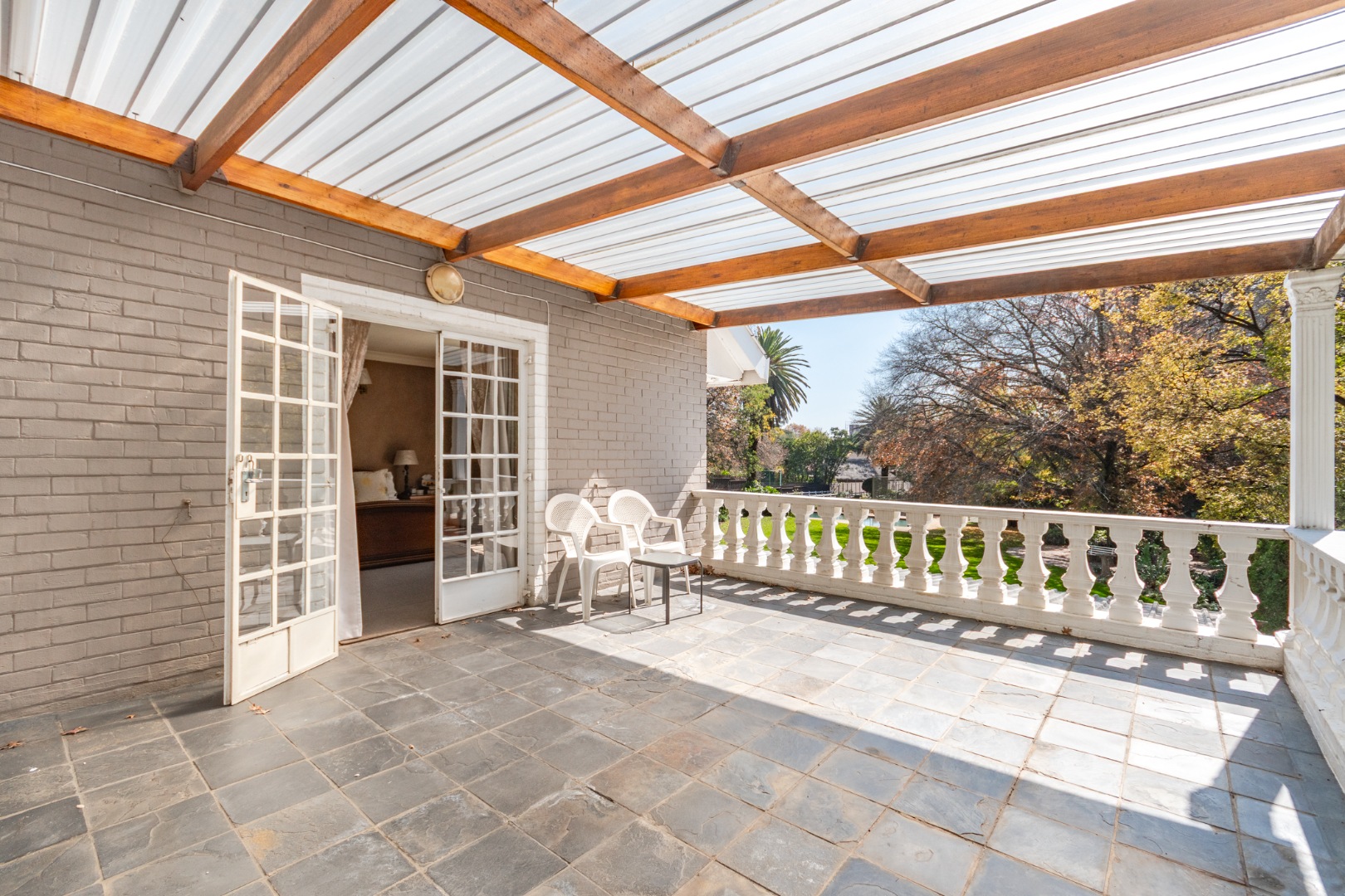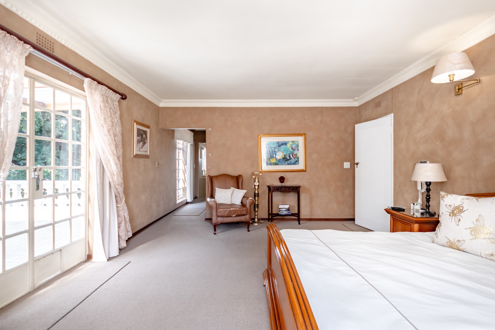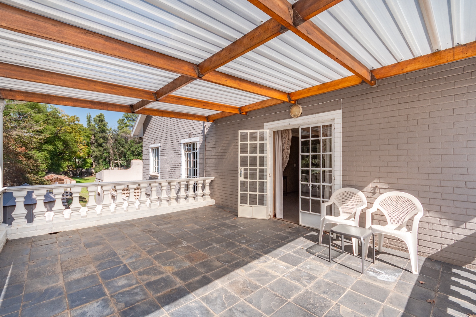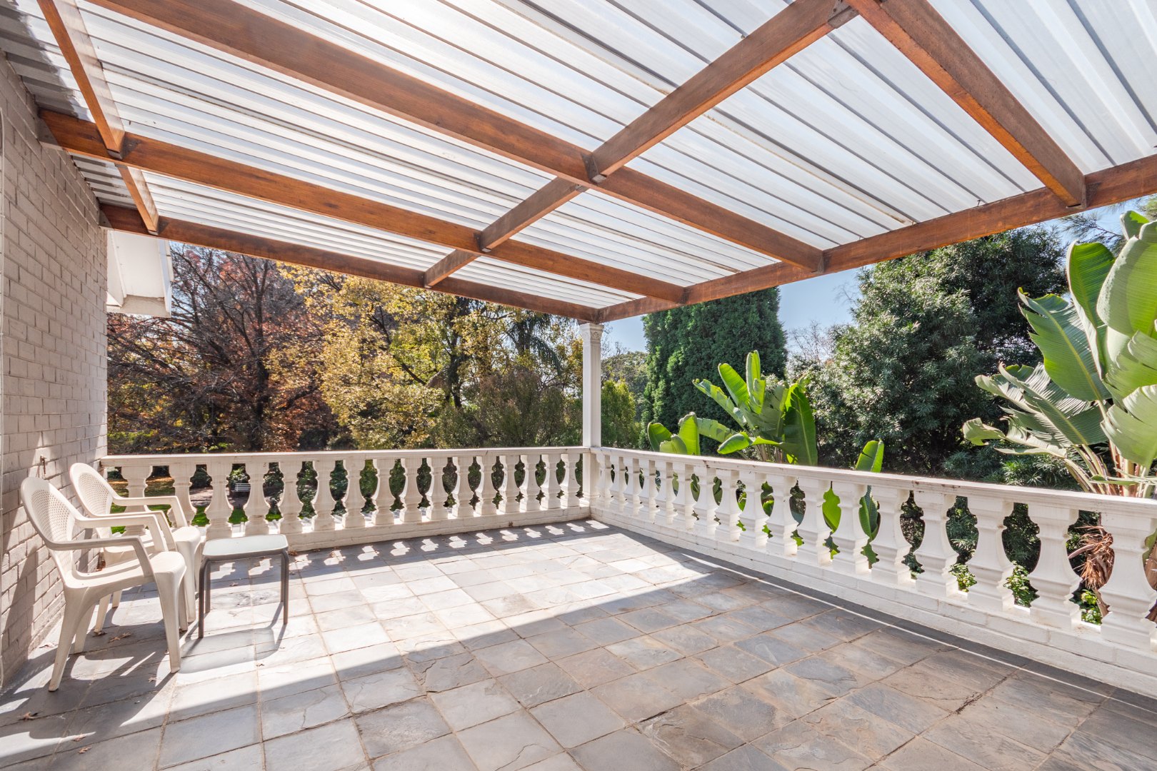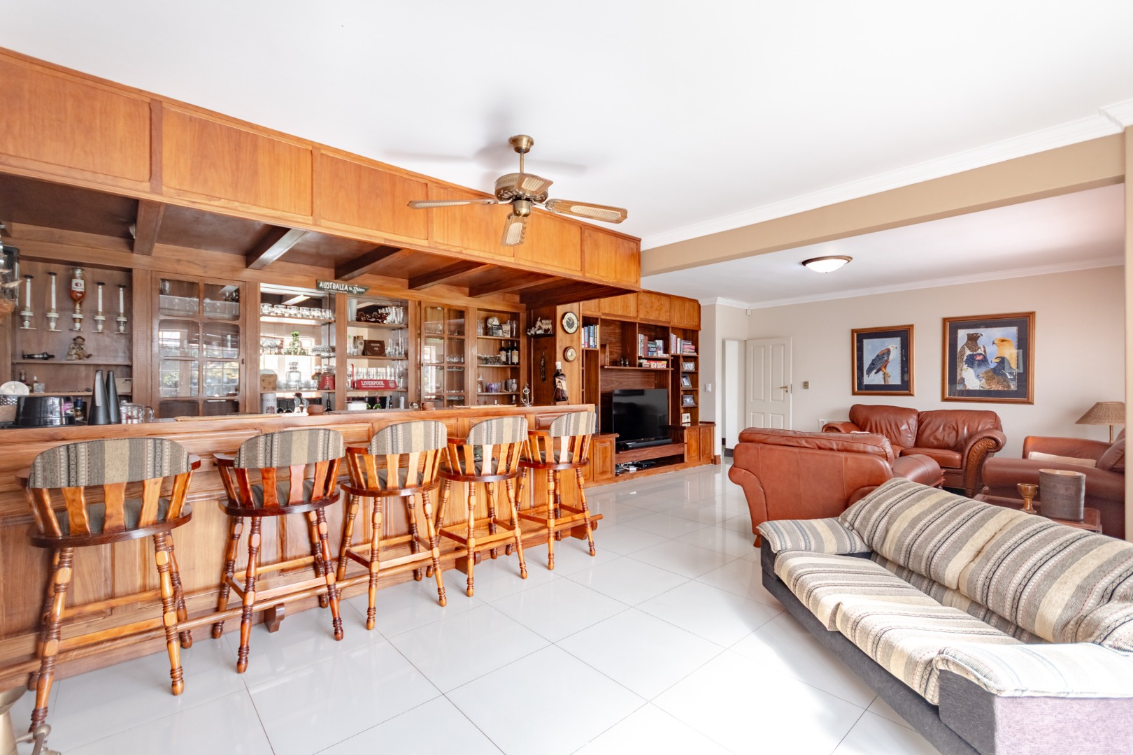 Discover this expansive two-story residence nestled on a generous 7000 sqm erf in the established suburban area of Lambton, Germiston. Presenting a classic design, the property boasts a well-maintained exterior with a shaded ground-floor veranda and inviting upstairs balconies, all set amidst lush, mature landscaping that ensures privacy and aesthetic appeal. The large, green lawn and garden create a serene outdoor environment, perfect for relaxation and family activities. Step inside to find multiple reception areas designed for both formal entertaining and comfortable family living. The interior features bright, clean tiled flooring throughout, complemented by elegant ceiling molding and decorative light fixtures. A formal dining room, spacious living areas, and a dedicated family TV room provide versatile spaces. The home also includes a sophisticated study or library, complete with extensive custom-built wooden cabinetry and an ornate coffered ceiling, offering an ideal space for work or quiet contemplation. A notable highlight is the custom-built wooden bar, perfect for hosting guests. Accommodation comprises six generously sized bedrooms and four bathrooms, providing ample space for a large family or guests. Practical amenities include three garages and six additional parking spaces, ensuring convenience for multiple vehicles. The property further enhances a desirable lifestyle with a private swimming pool and a dedicated gym, catering to health and wellness needs. Outdoor living is a key feature, with the large garden and scenic views. The property benefits from a borehole, contributing to water resilience, and is totally walled for enhanced security. This substantial home offers a blend of traditional charm and spacious living in a sought-after location. Lambton, Germiston, offers a well-connected suburban lifestyle with convenient access to local amenities and transport routes. It provides a peaceful residential setting while remaining close to urban conveniences.