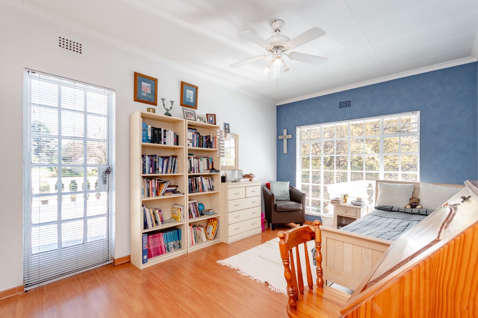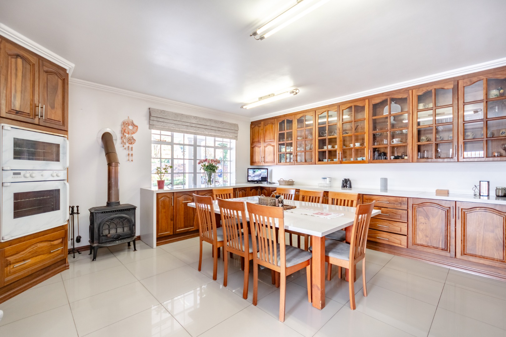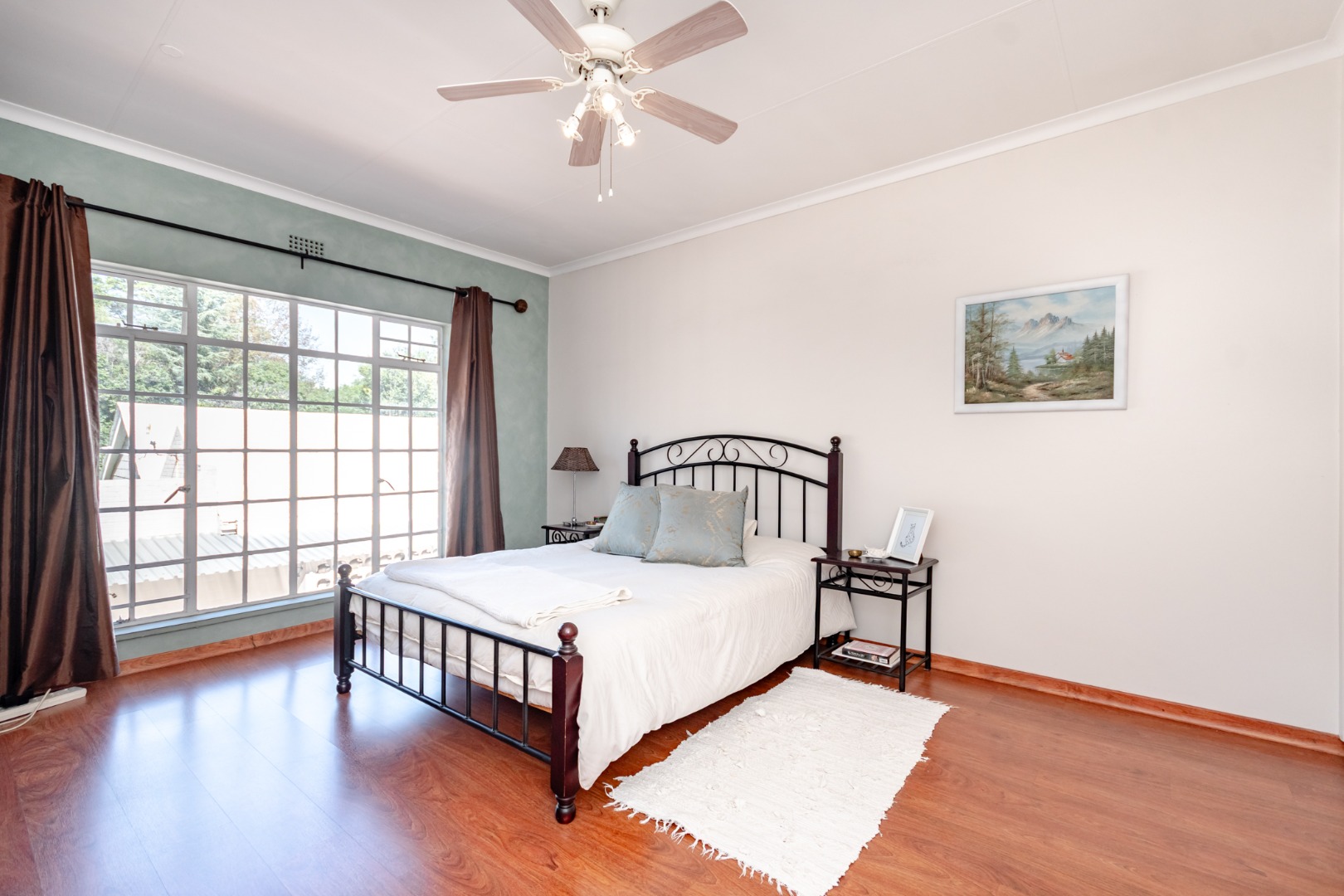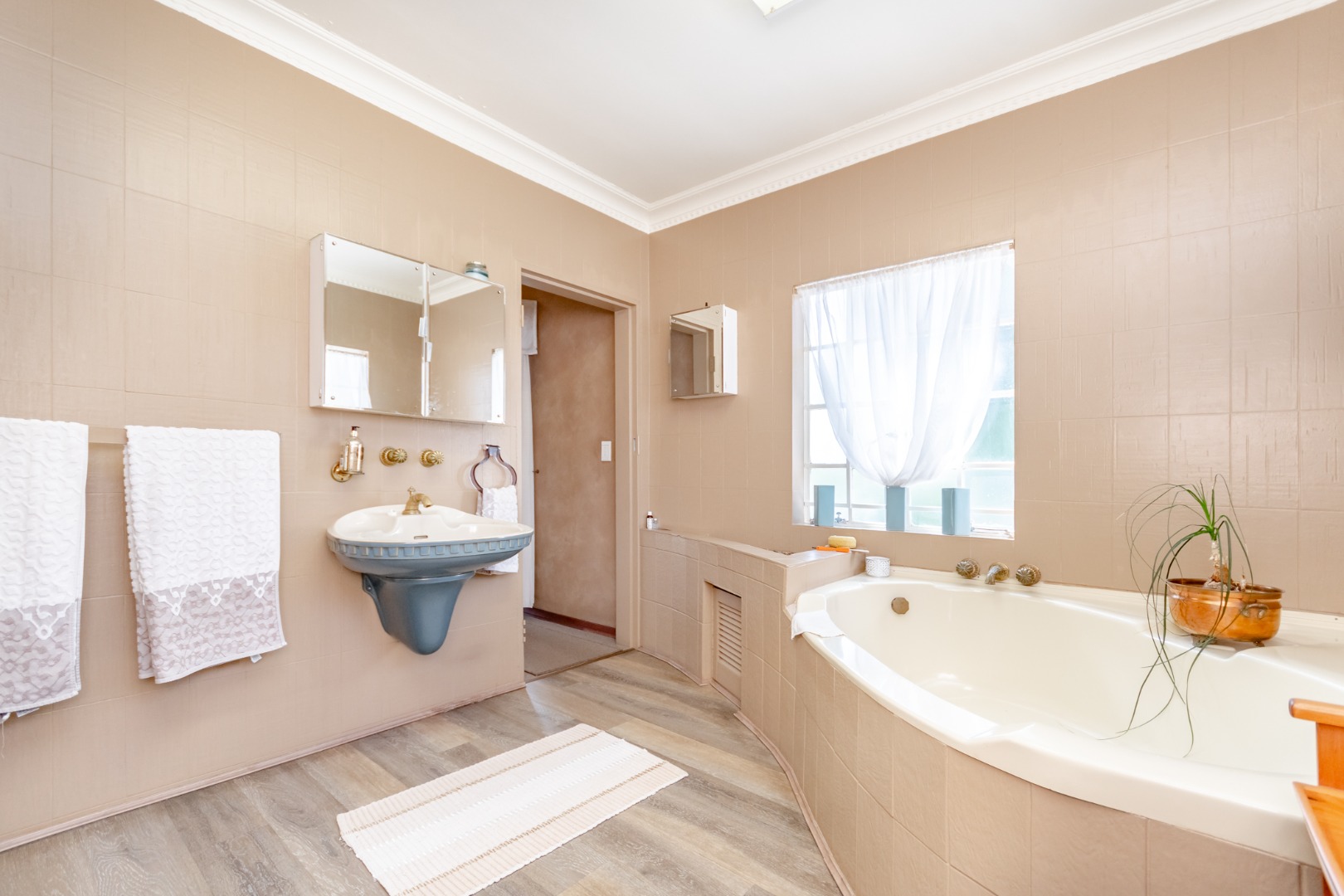 Discover this expansive two-story residence nestled on a generous 7000 sqm erf in the established suburban area of Lambton, Germiston. Presenting a classic design, the property boasts a well-maintained exterior with a shaded ground-floor veranda and inviting upstairs balconies, all set amidst lush, mature landscaping that ensures privacy and aesthetic appeal. The large, green lawn and garden create a serene outdoor environment, perfect for relaxation and family activities. Step inside to find multiple reception areas designed for both formal entertaining and comfortable family living. The interior features bright, clean tiled flooring throughout, complemented by elegant ceiling molding and decorative light fixtures. A formal dining room, spacious living areas, and a dedicated family TV room provide versatile spaces. The home also includes a sophisticated study or library, complete with extensive custom-built wooden cabinetry and an ornate coffered ceiling, offering an ideal space for work or quiet contemplation. A notable highlight is the custom-built wooden bar, perfect for hosting guests. Accommodation comprises six generously sized bedrooms and four bathrooms, providing ample space for a large family or guests. Practical amenities include three garages and six additional parking spaces, ensuring convenience for multiple vehicles. The property further enhances a desirable lifestyle with a private swimming pool and a dedicated gym, catering to health and wellness needs. Outdoor living is a key feature, with the large garden and scenic views. The property benefits from a borehole, contributing to water resilience, and is totally walled for enhanced security. This substantial home offers a blend of traditional charm and spacious living in a sought-after location. Lambton, Germiston, offers a well-connected suburban lifestyle with convenient access to local amenities and transport routes. It provides a peaceful residential setting while remaining close to urban conveniences.