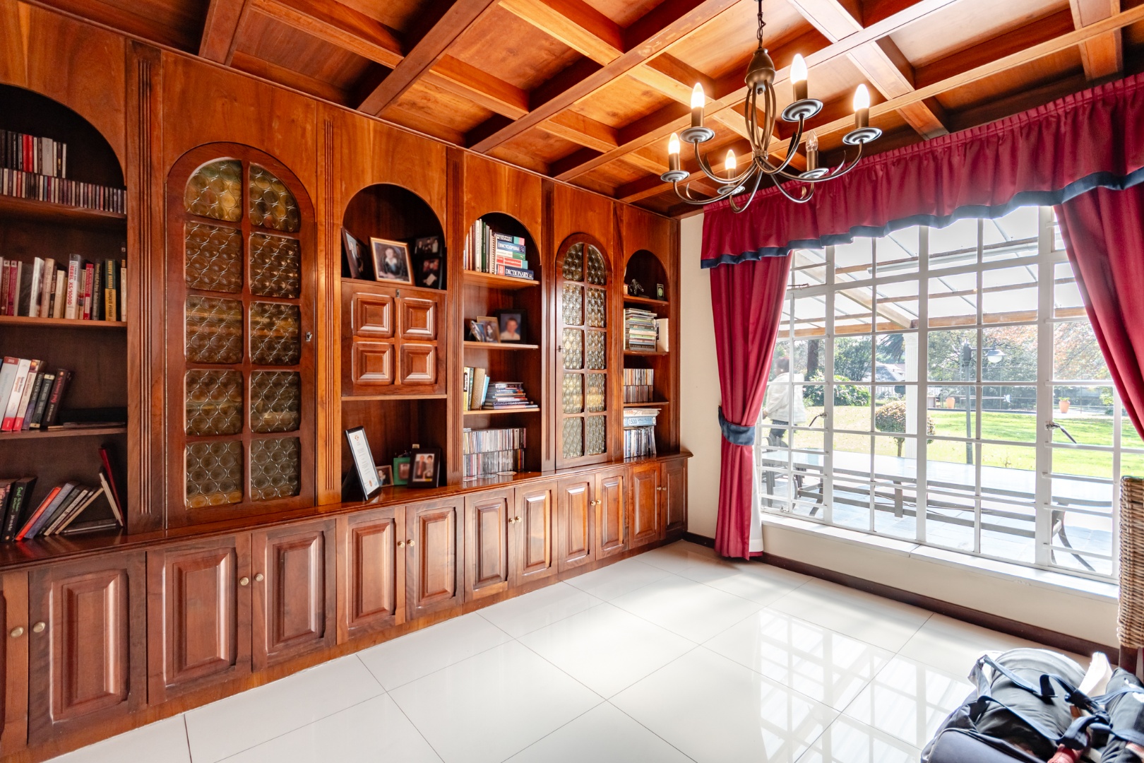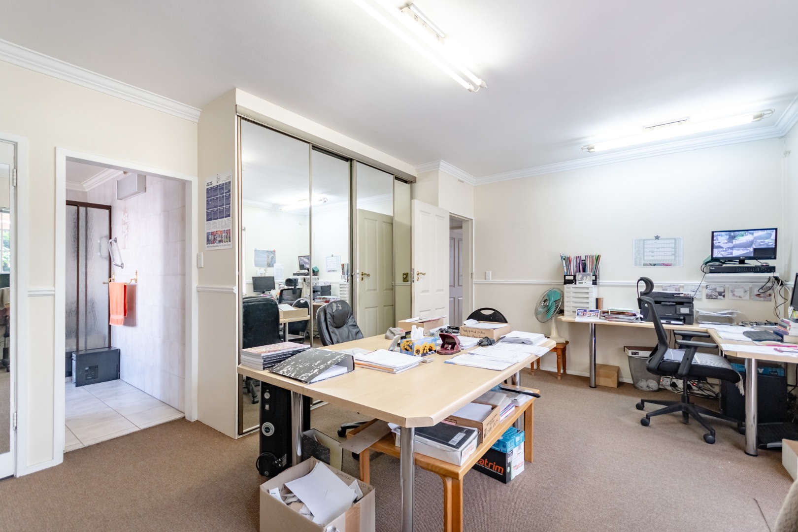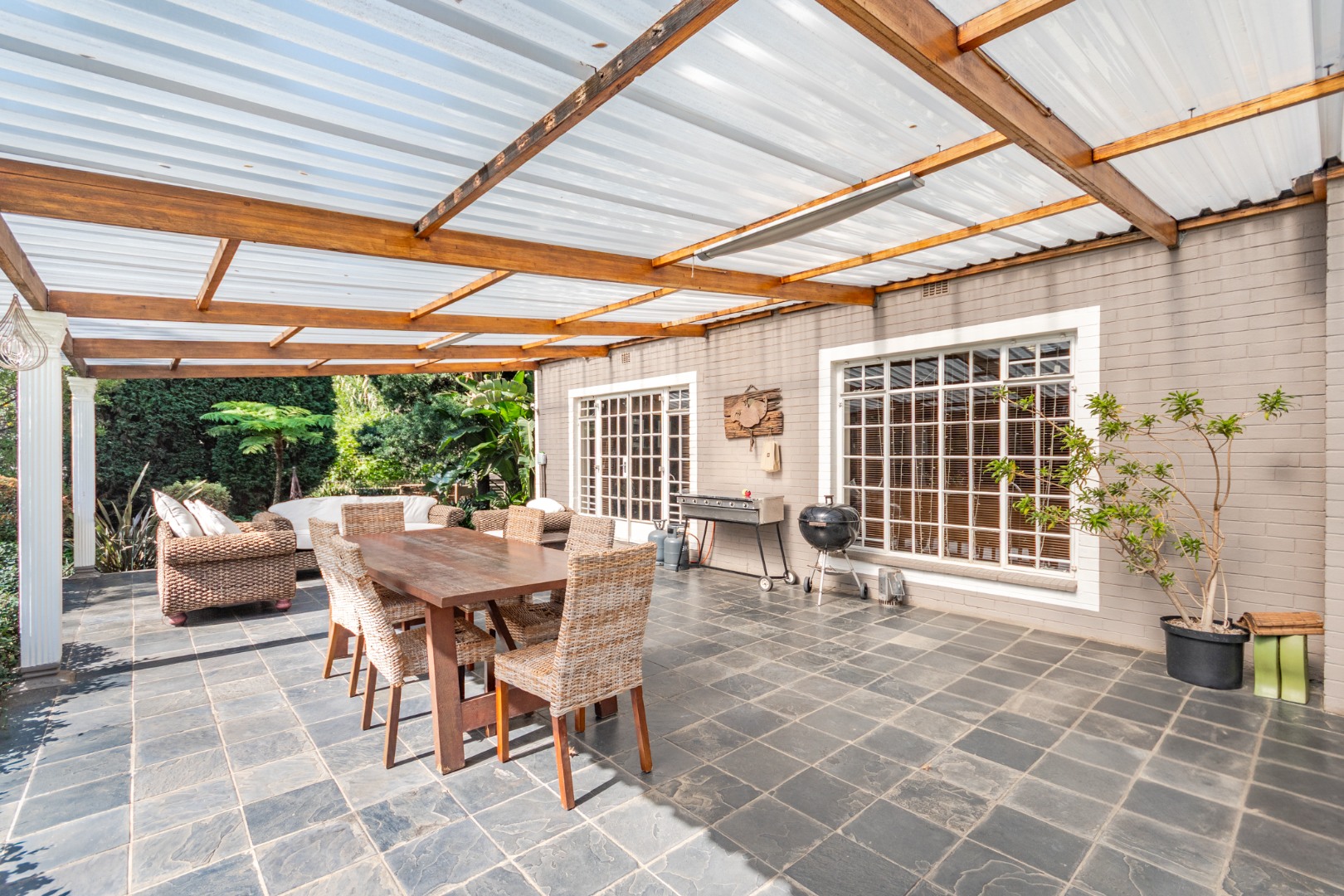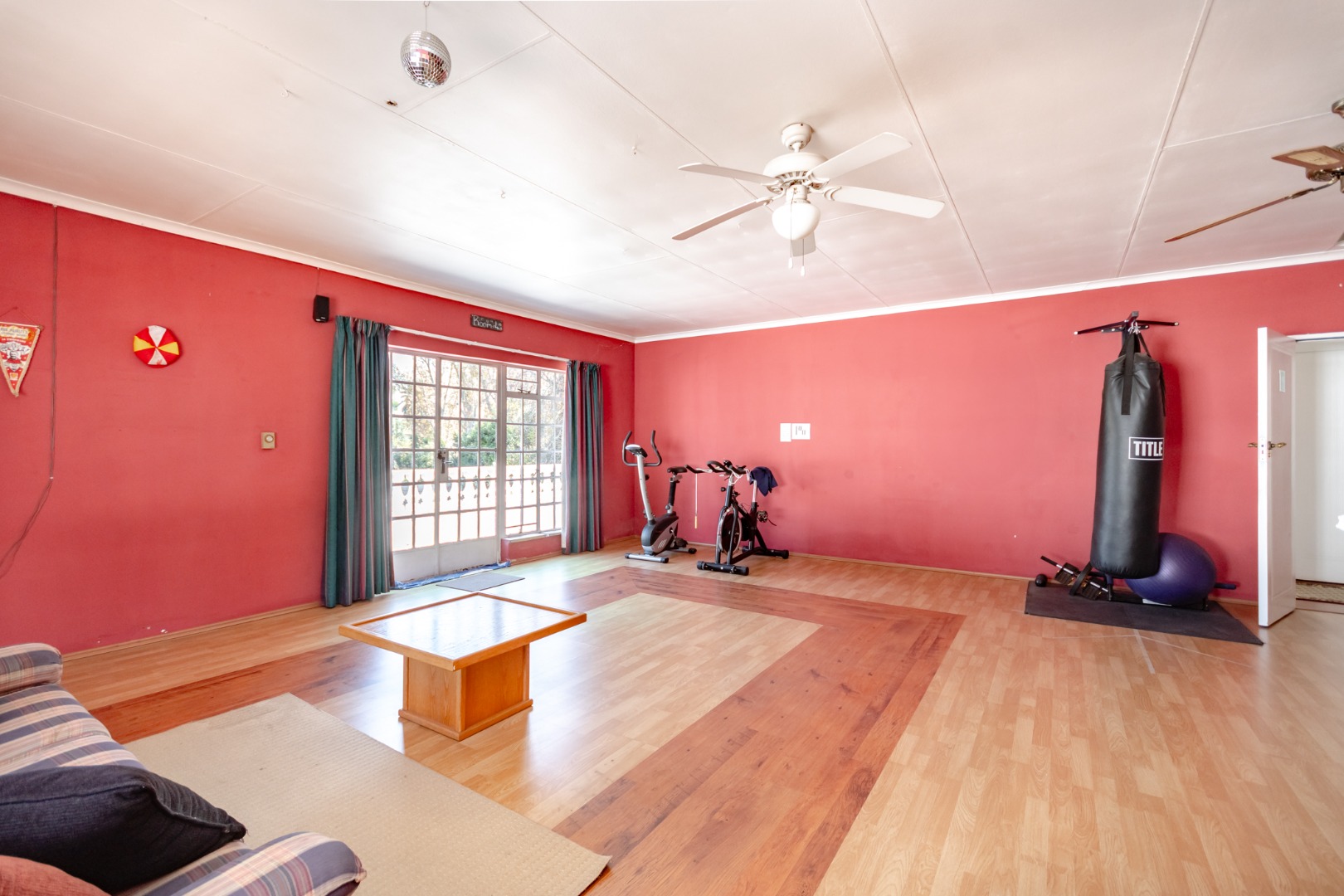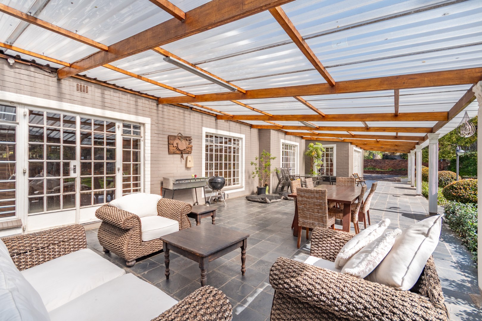 Discover this expansive two-story residence nestled on a generous 7000 sqm erf in the established suburban area of Lambton, Germiston. Presenting a classic design, the property boasts a well-maintained exterior with a shaded ground-floor veranda and inviting upstairs balconies, all set amidst lush, mature landscaping that ensures privacy and aesthetic appeal. The large, green lawn and garden create a serene outdoor environment, perfect for relaxation and family activities. Step inside to find multiple reception areas designed for both formal entertaining and comfortable family living. The interior features bright, clean tiled flooring throughout, complemented by elegant ceiling molding and decorative light fixtures. A formal dining room, spacious living areas, and a dedicated family TV room provide versatile spaces. The home also includes a sophisticated study or library, complete with extensive custom-built wooden cabinetry and an ornate coffered ceiling, offering an ideal space for work or quiet contemplation. A notable highlight is the custom-built wooden bar, perfect for hosting guests. Accommodation comprises six generously sized bedrooms and four bathrooms, providing ample space for a large family or guests. Practical amenities include three garages and six additional parking spaces, ensuring convenience for multiple vehicles. The property further enhances a desirable lifestyle with a private swimming pool and a dedicated gym, catering to health and wellness needs. Outdoor living is a key feature, with the large garden and scenic views. The property benefits from a borehole, contributing to water resilience, and is totally walled for enhanced security. This substantial home offers a blend of traditional charm and spacious living in a sought-after location. Lambton, Germiston, offers a well-connected suburban lifestyle with convenient access to local amenities and transport routes. It provides a peaceful residential setting while remaining close to urban conveniences.