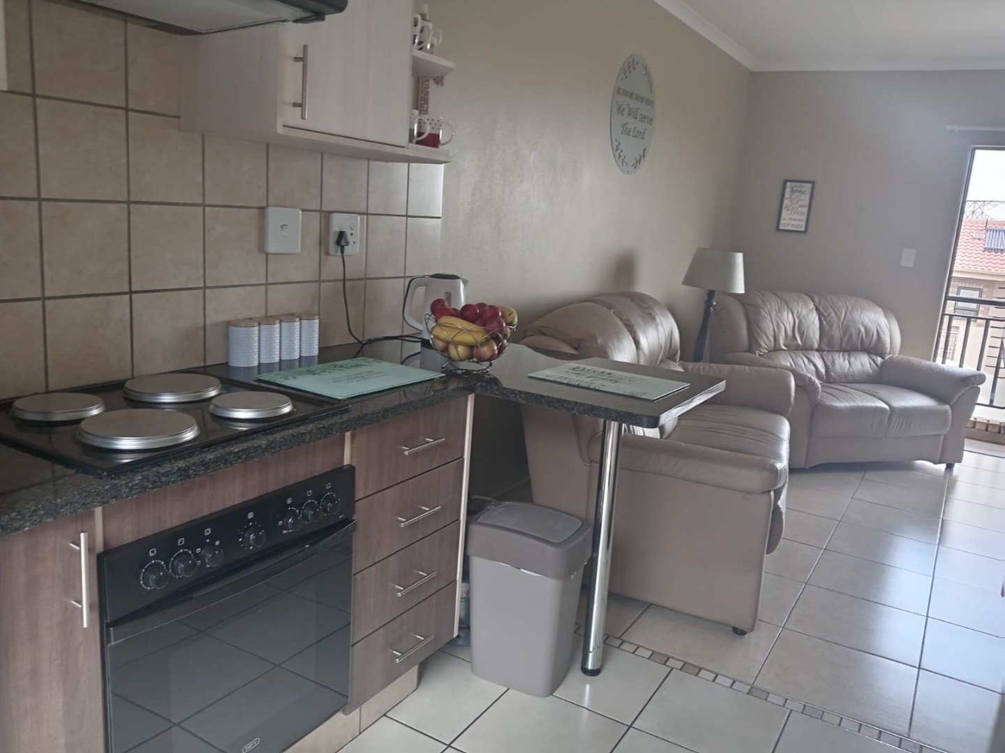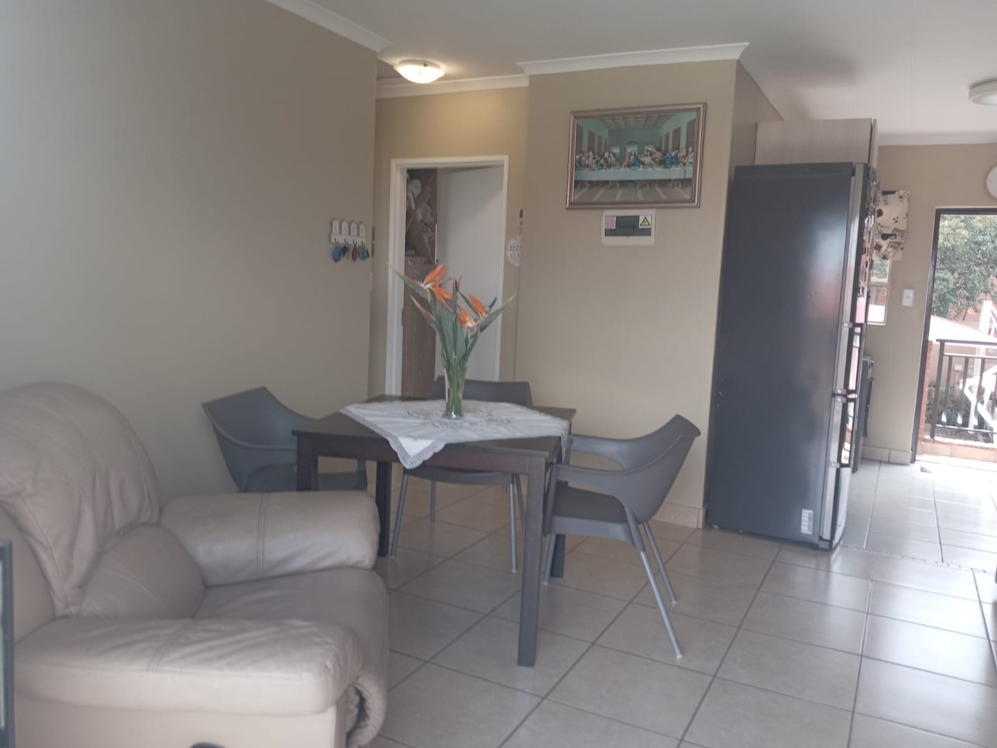 Rose Valley is secured with electric fencing and is fully walled. The remote control entrance gate opens onto paving and the carports, a tandem parking for two smaller cars is exclusive use for this apartment. Personal security for the apartment is catered for with a Maxidor security gate and burglar bars on opening windows.