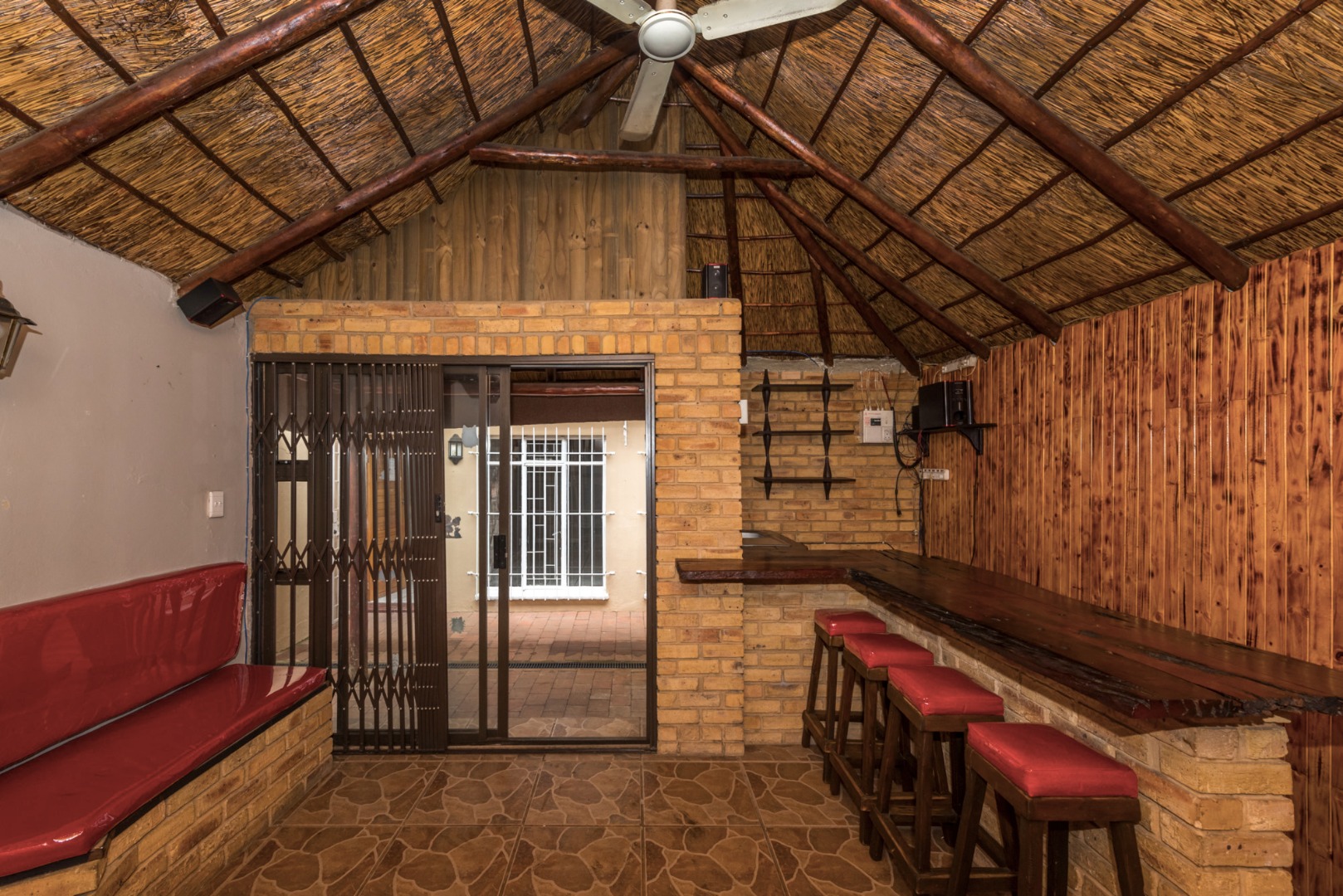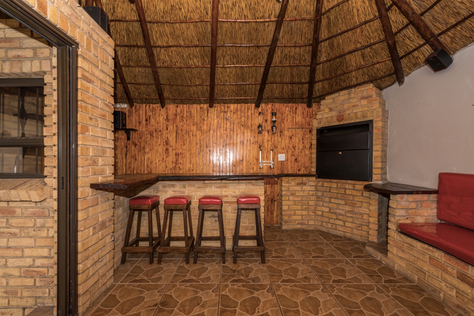 Spoil your guests with this bonus Lapa - Entertainment area, with Bar, 6 bar stools, fitted built-in seating with storage compartments plus a built-in-braai and more. Sliding Aluminum Glass door and Trellidor security gate. (Valued at about R250,000)