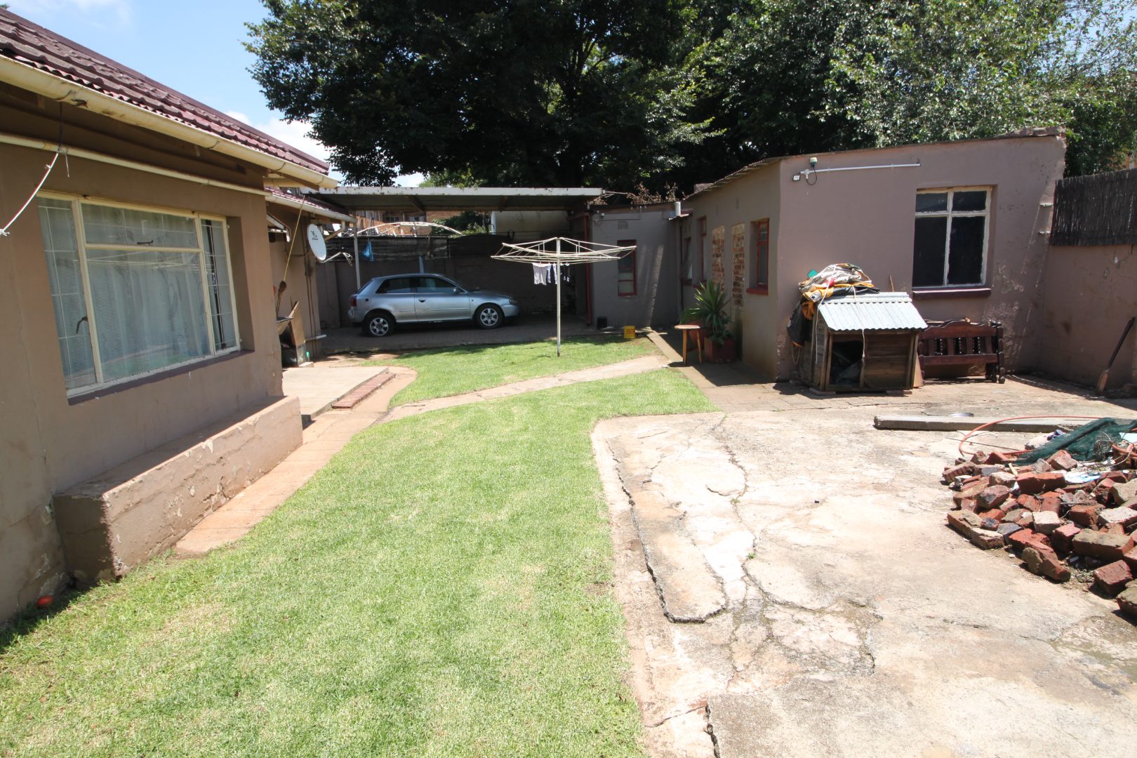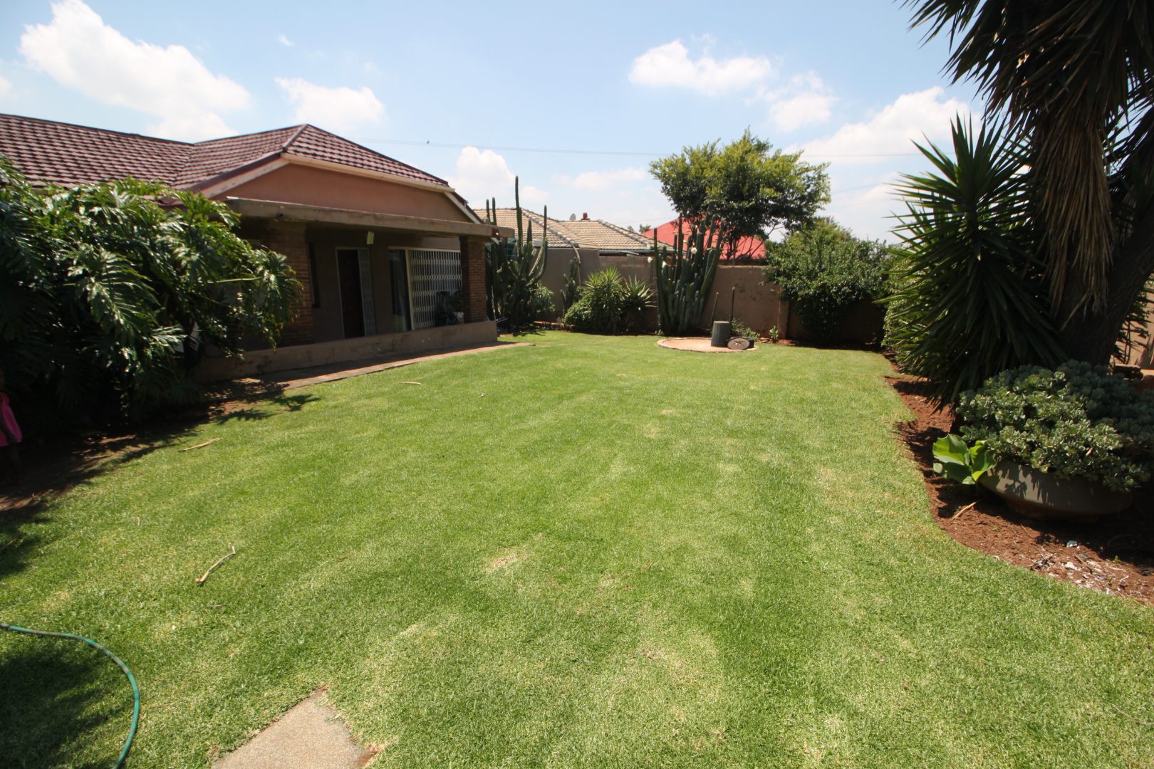 Discover this charming single-story home located in the established suburb of Primrose, Germiston. Presenting a welcoming kerb appeal, the property features a classic red tiled roof, a well-maintained green lawn, and mature trees that provide both shade and privacy. A covered front porch offers a pleasant outdoor space, while visible security gates and perimeter fencing ensure peace of mind. The interior offers a functional layout, including one lounge and a practical kitchen. The kitchen is equipped with grey cabinetry, dark granite-look countertops, and tiled walls and floor, providing ample storage and natural light from a large window. While ready for immediate use, it offers an excellent opportunity for modern updates to enhance its aesthetic and integrate appliances. The lounge features durable tiled flooring, a ceiling fan, and a decorative fireplace, awaiting your personal touch. This residence comprises four comfortable bedrooms and two bathrooms. Each bedroom is fitted with extensive built-in wardrobes, offering practical storage solutions, and includes a ceiling fan for climate control. The hard flooring throughout the bedrooms adds to their functionality, inviting a refresh to align with contemporary tastes. Set on a generous 656 sqm erf, the outdoor space is a highlight, boasting a large, well-manicured lawn and diverse landscaping. Extensive brick paving provides three dedicated parking spaces, ensuring convenience. Enhanced security features, including window bars, security gates, an access gate, and an ADT alarm system, contribute to a secure living environment. Key Features: * 4 Bedrooms, 2 Bathrooms * 1 Lounge, 1 Kitchen * 656 sqm Erf Size * 3 Parking Spaces * Established Garden with Mature Trees * Enhanced Security Features * Tiled Flooring Throughout * Built-in Wardrobes