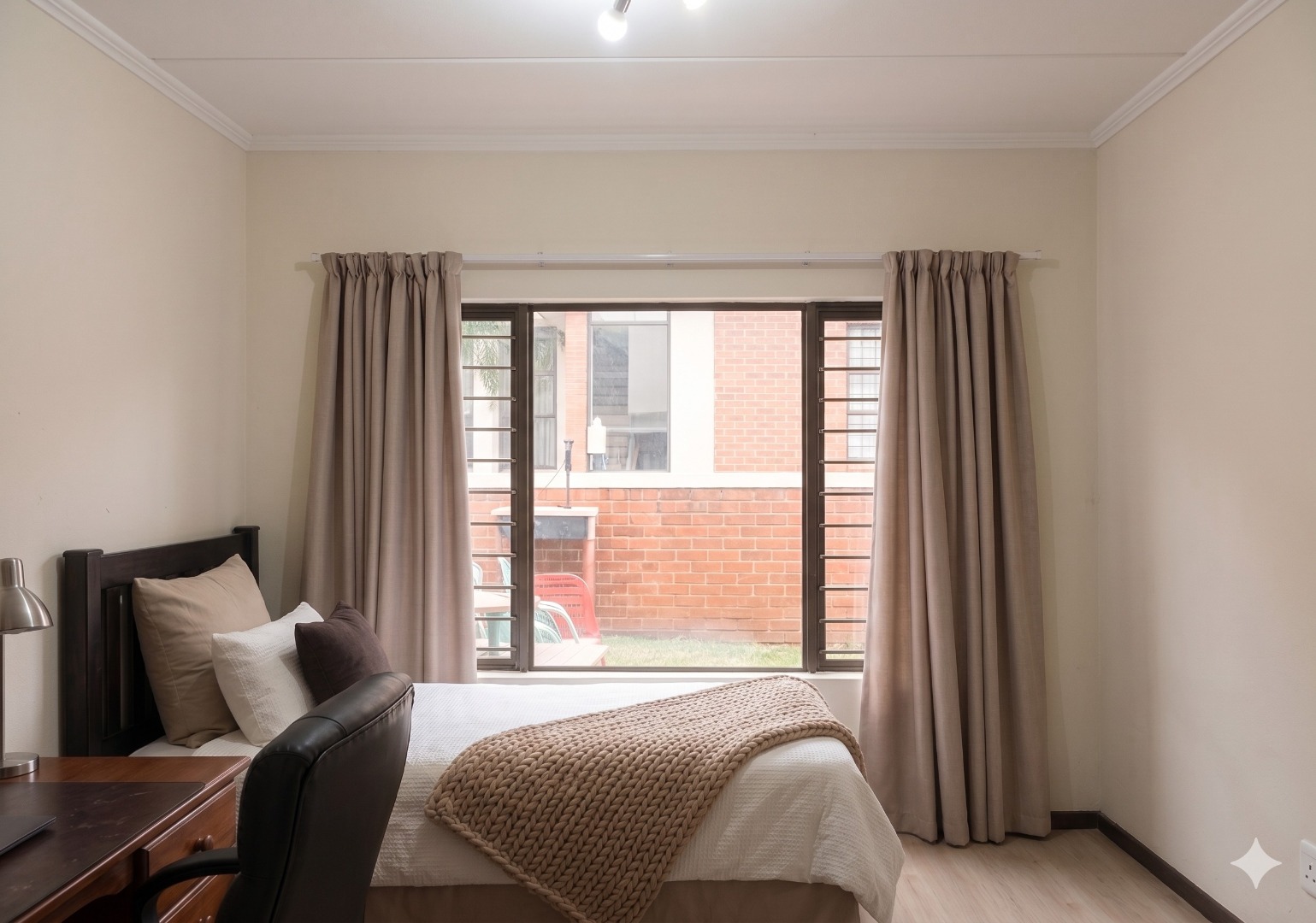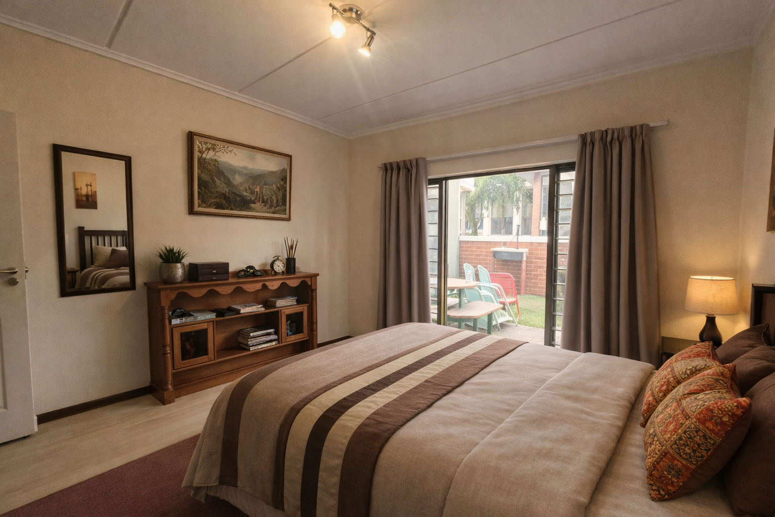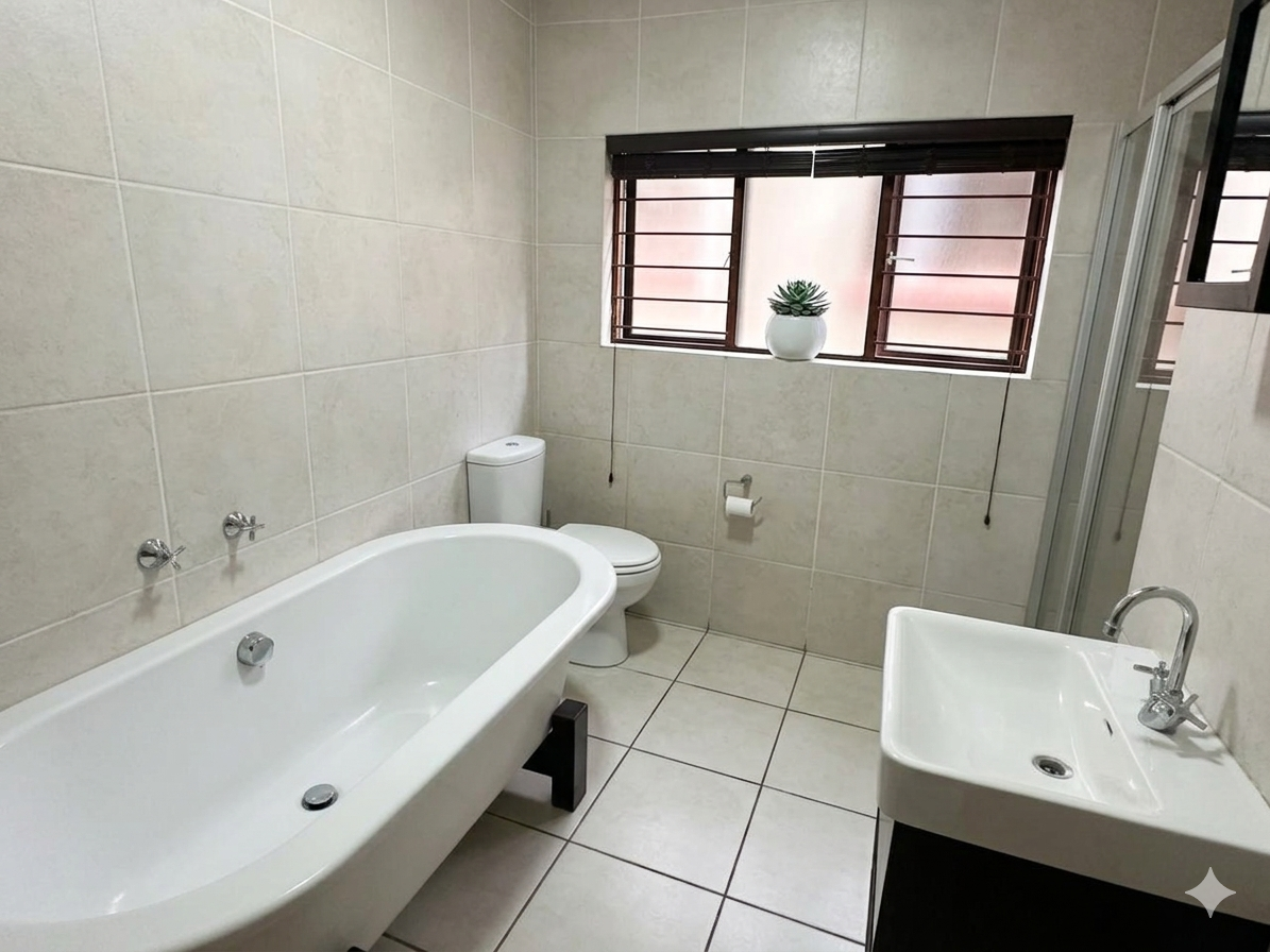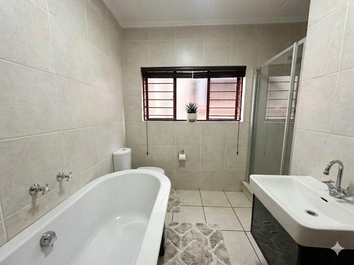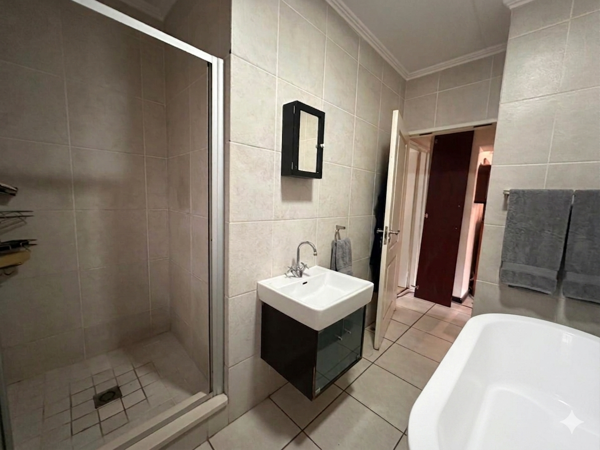 The layout is clean and practical. An open-plan living area flows directly onto a covered patio with a built-in braai, extending into a private garden that gives you that “house feel” without the upkeep. It’s the kind of space that works just as well for pets as it does for relaxed weekends or everyday living.