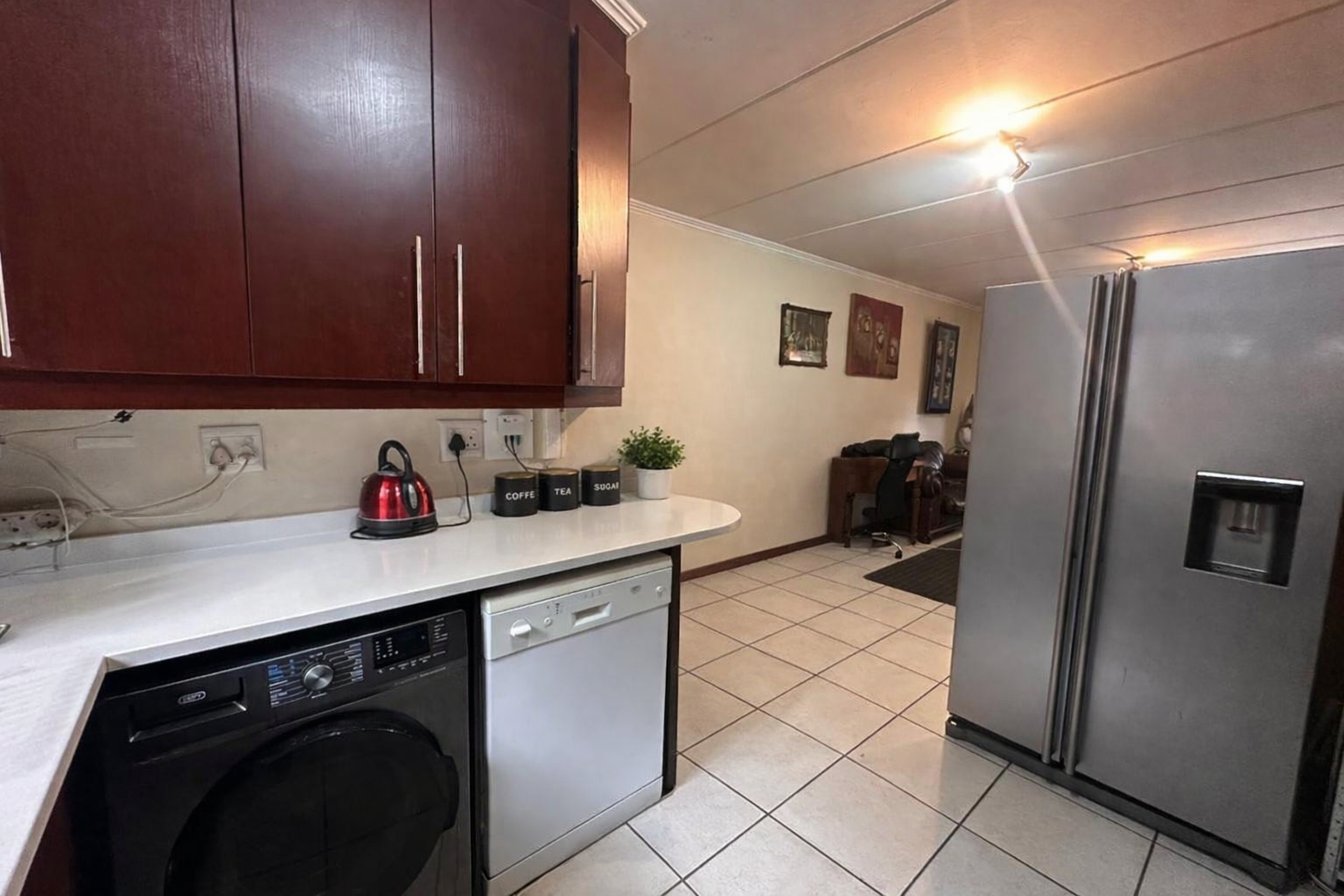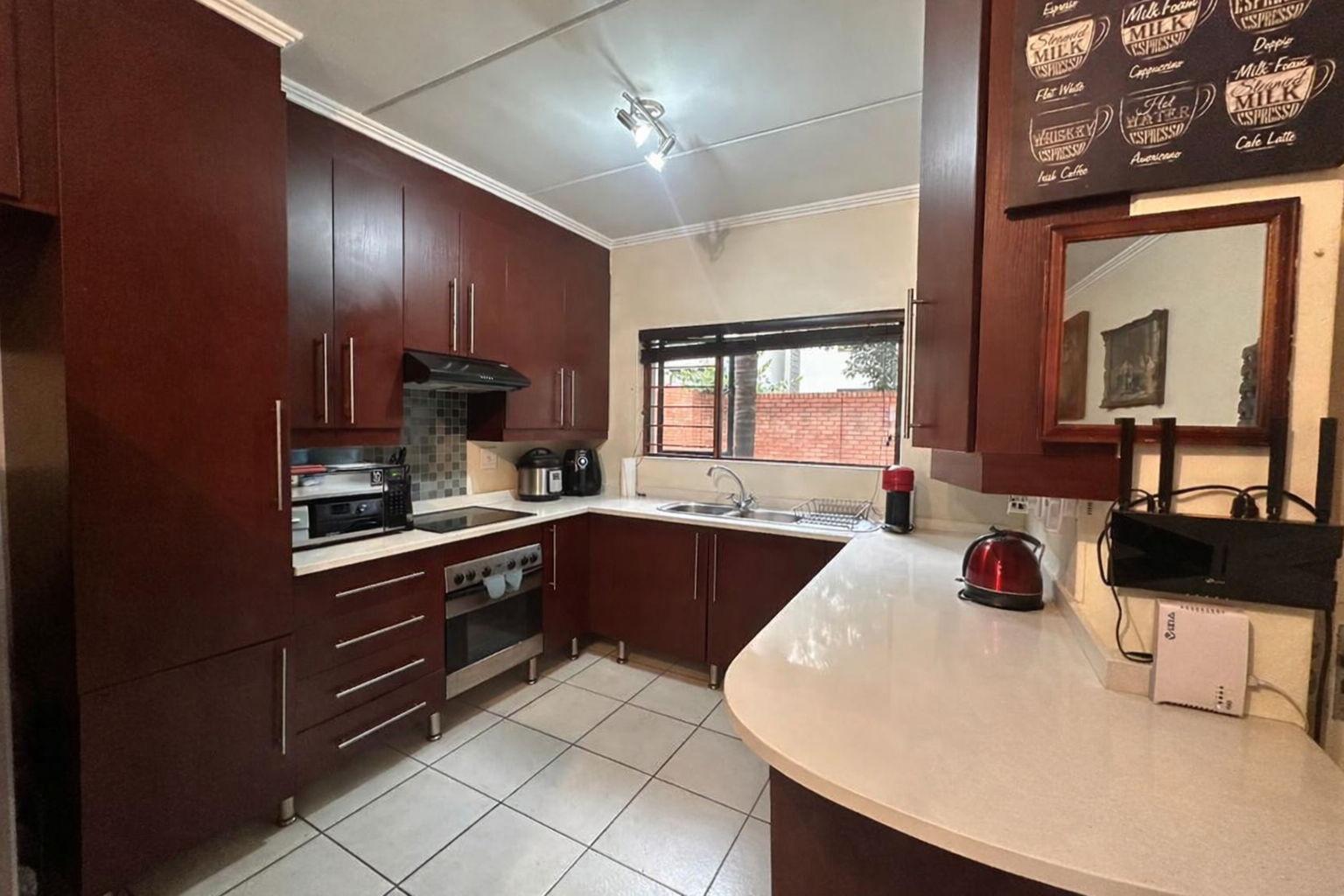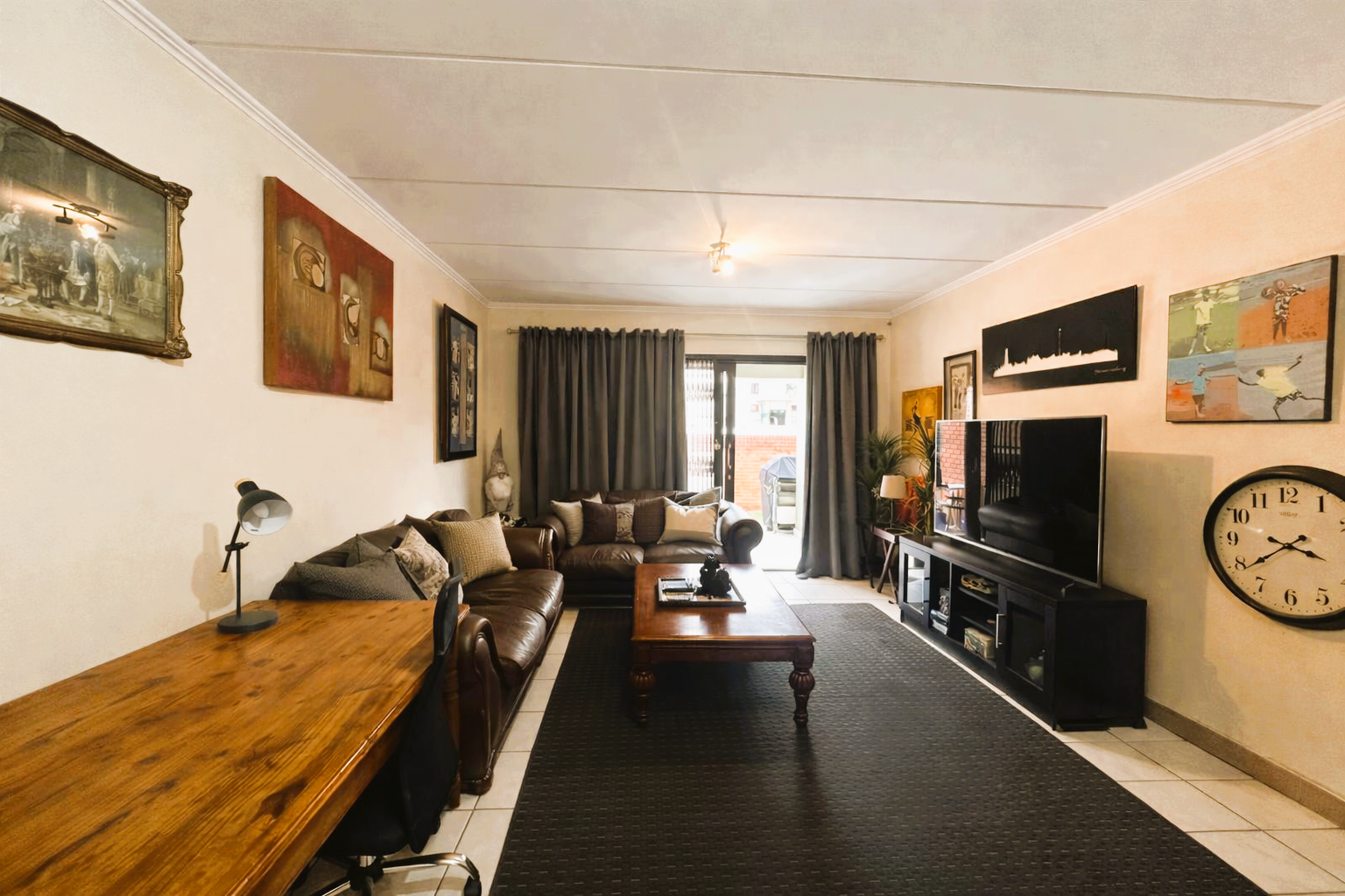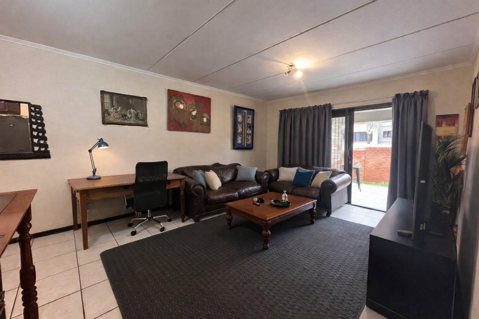 The layout is clean and practical. An open-plan living area flows directly onto a covered patio with a built-in braai, extending into a private garden that gives you that “house feel” without the upkeep. It’s the kind of space that works just as well for pets as it does for relaxed weekends or everyday living.