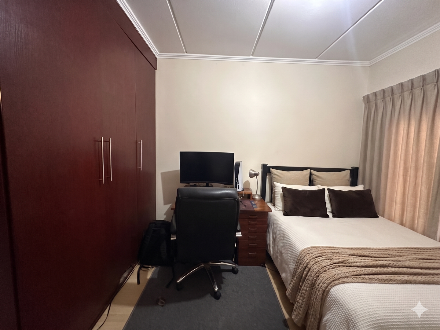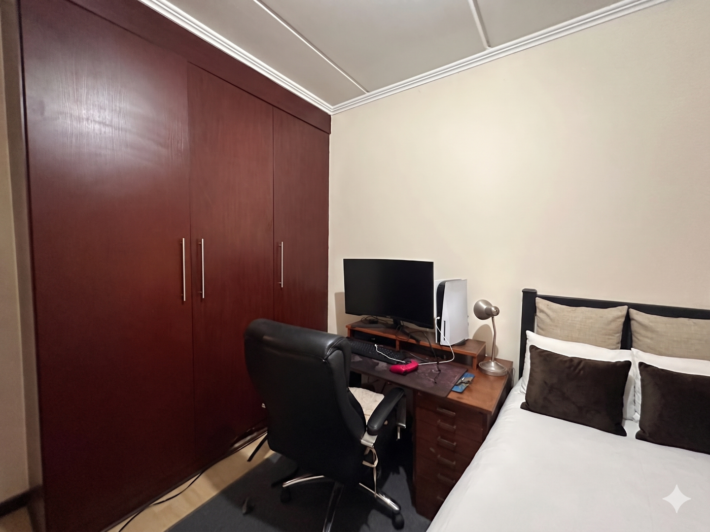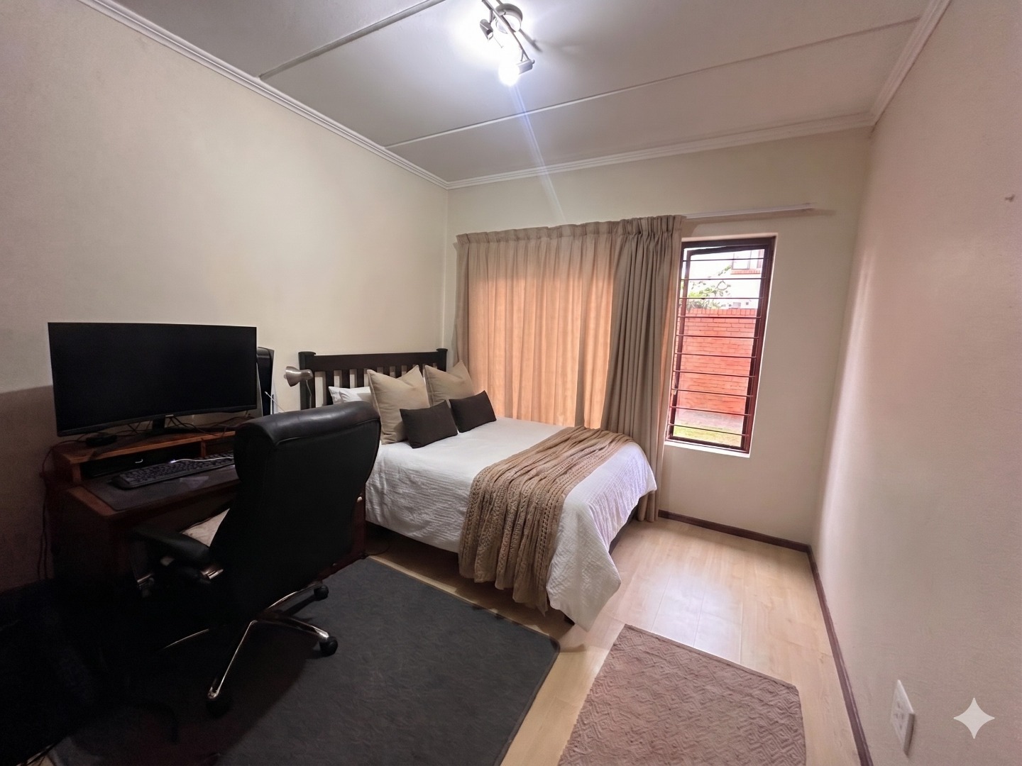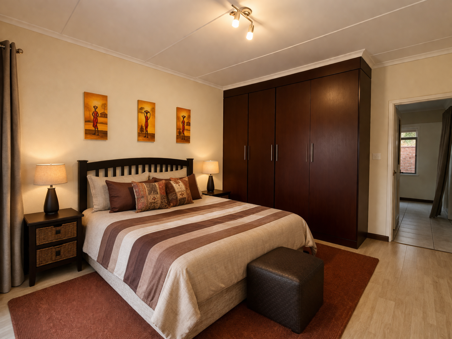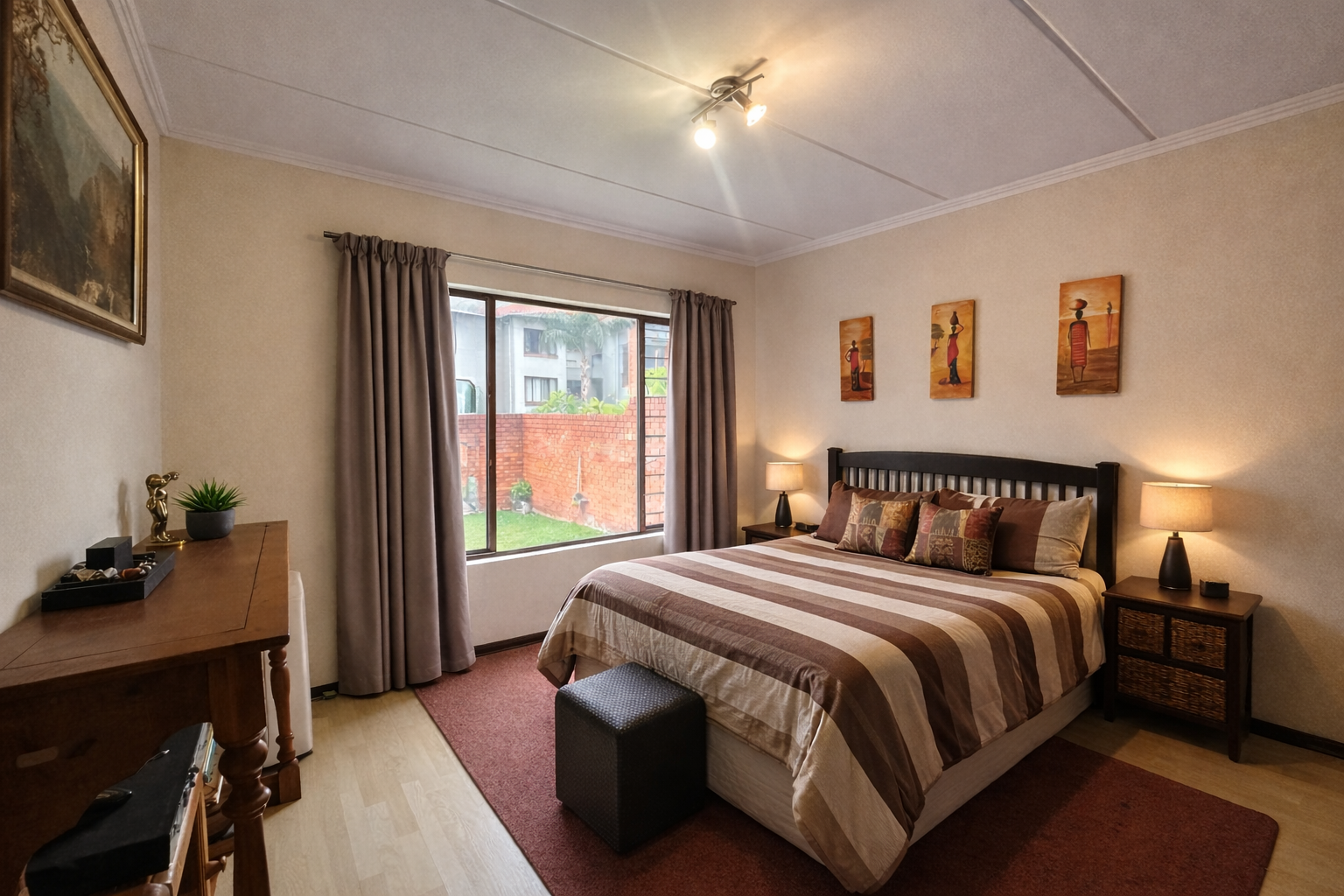 - Wooden floors in bedrooms, tiled living areas