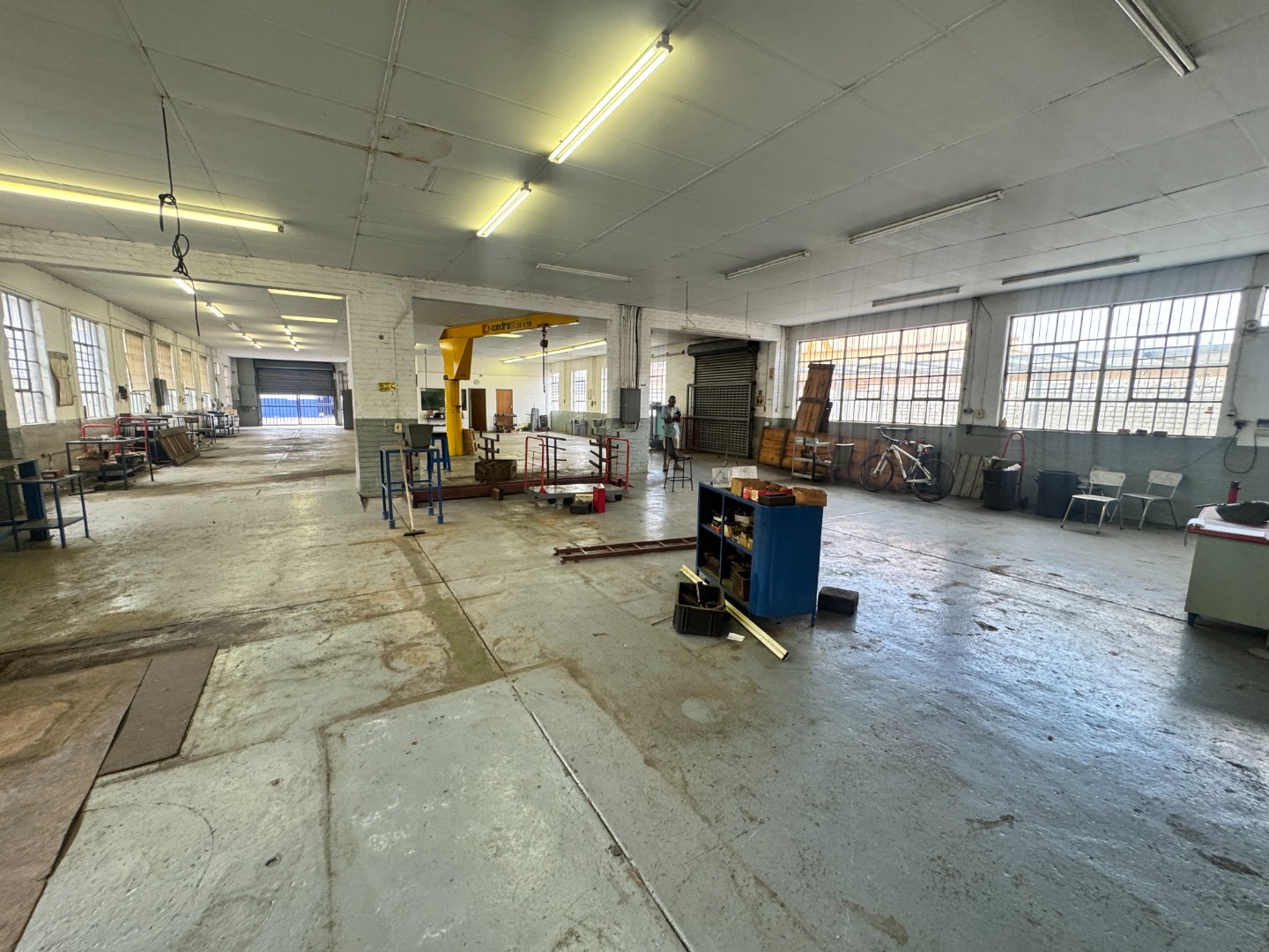 Positioned within a secure industrial area, this well-maintained warehouse offers excellent functionality for manufacturing, fabrication, storage, or logistics operations.