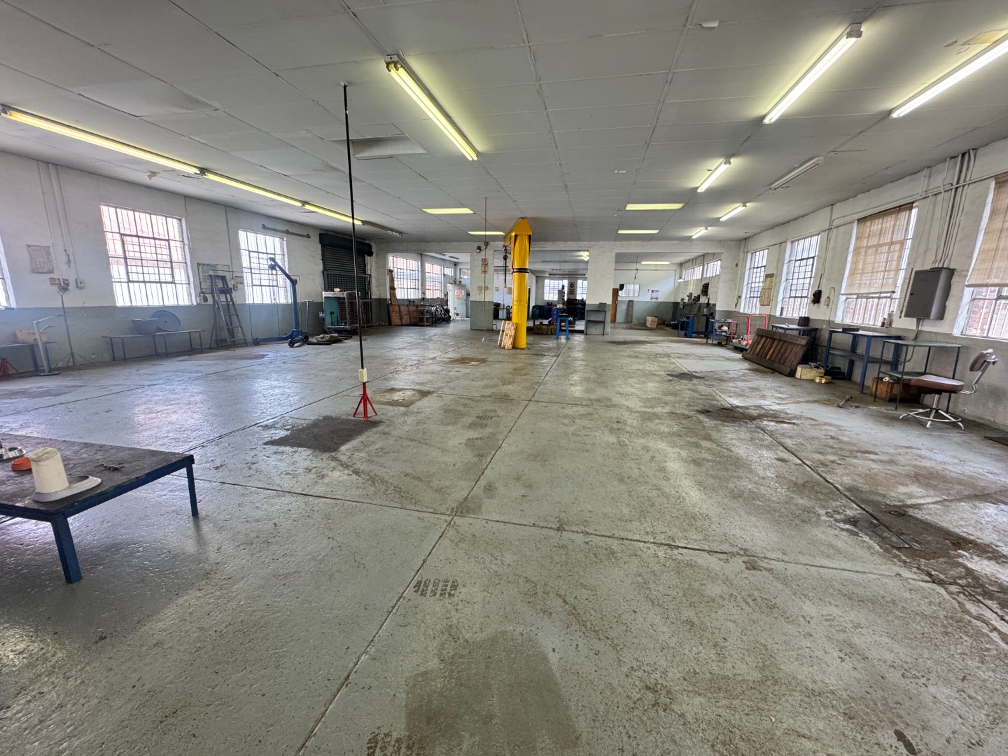 Positioned within a secure industrial area, this well-maintained warehouse offers excellent functionality for manufacturing, fabrication, storage, or logistics operations.