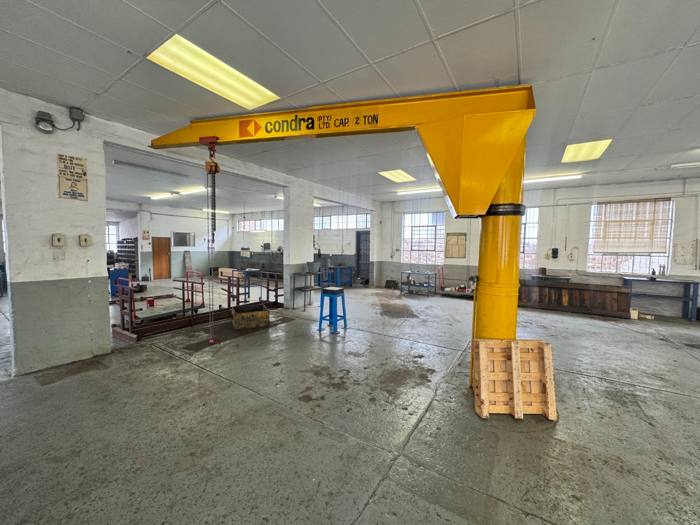 Ideal for businesses requiring lifting capability, secure access, and integrated office space within a controlled industrial setting.