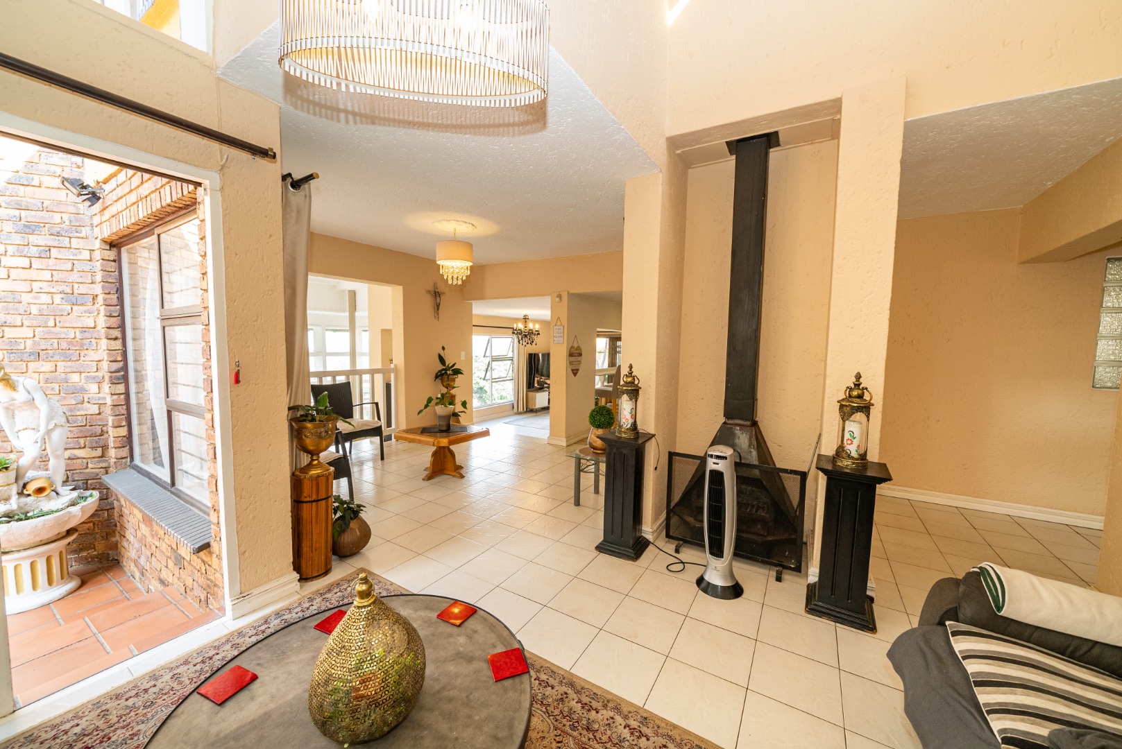 Step inside to discover an expansive open-plan layout, where two elegant lounges and a dedicated dining area create an ideal setting for both grand entertaining and intimate family moments. The gourmet kitchen, complete with a pantry, is a culinary haven, while a dedicated study offers a quiet space for reflection or work. Enjoy the warmth of a charming fireplace and the convenience of a guest toilet and an inviting entrance hall. The property further boasts a dedicated family TV room and a reception area, ensuring ample space for every occasion.
