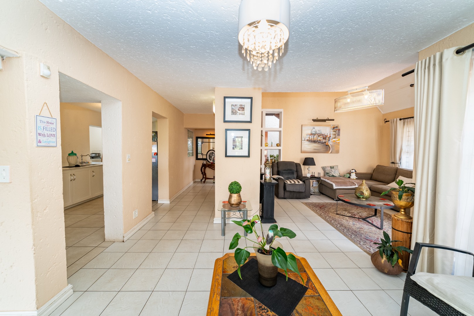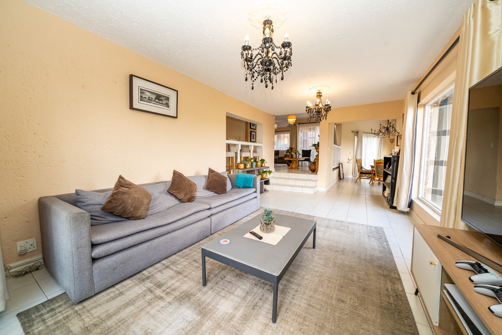 Step inside to discover an expansive open-plan layout, where two elegant lounges and a dedicated dining area create an ideal setting for both grand entertaining and intimate family moments. The gourmet kitchen, complete with a pantry, is a culinary haven, while a dedicated study offers a quiet space for reflection or work. Enjoy the warmth of a charming fireplace and the convenience of a guest toilet and an inviting entrance hall. The property further boasts a dedicated family TV room and a reception area, ensuring ample space for every occasion.