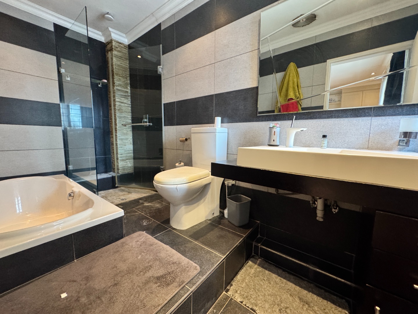 On arrival, you’re welcomed by a beautifully landscaped front garden complete with a tranquil water feature, immediately setting a calm and elegant tone. Step into the modern entrance hall that leads into a tiled lounge opening onto the front garden ideal for relaxed living. The adjoining dining area flows seamlessly to a low-maintenance private backyard, perfect for easy entertaining. A stylish guest toilet is conveniently located downstairs.